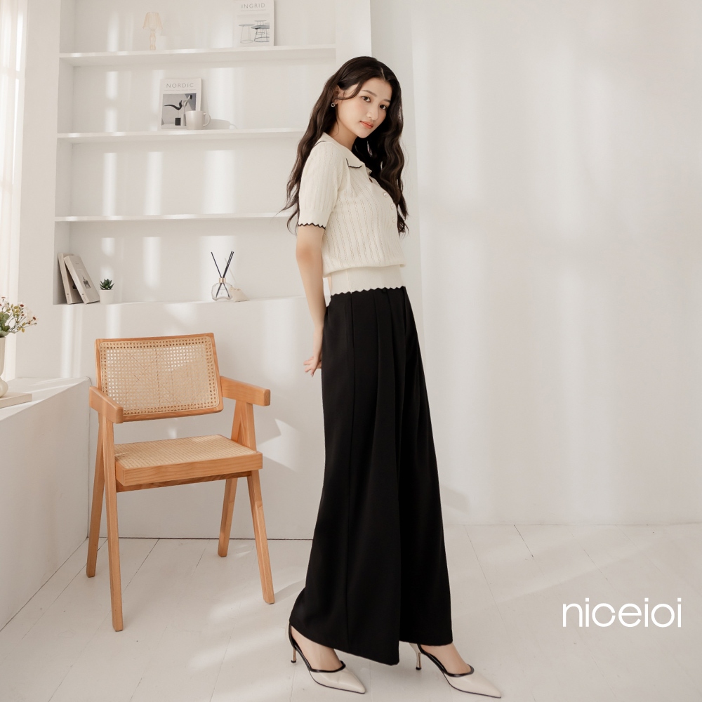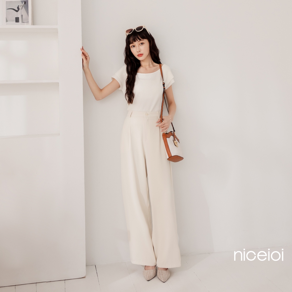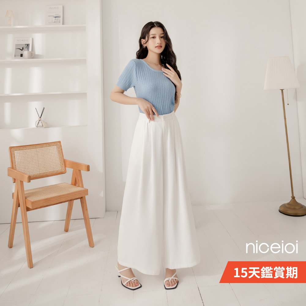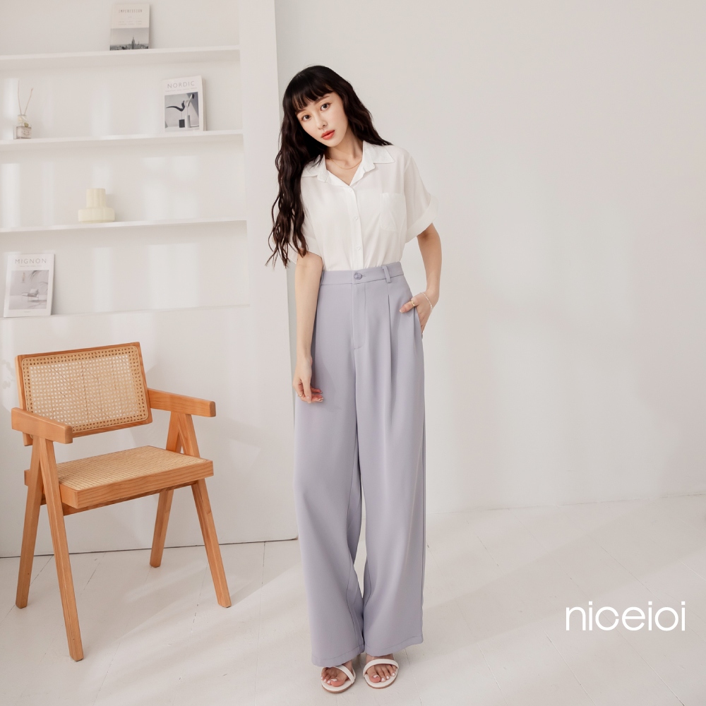 niceioi【特惠】個性雙打褶修身斜紋寬褲 (共2色) 女裝黑,M|黑,L|黑,XL|白,S|白,M|白,L|白,XL|黑,SPantsniceioi 官方旗艦店
