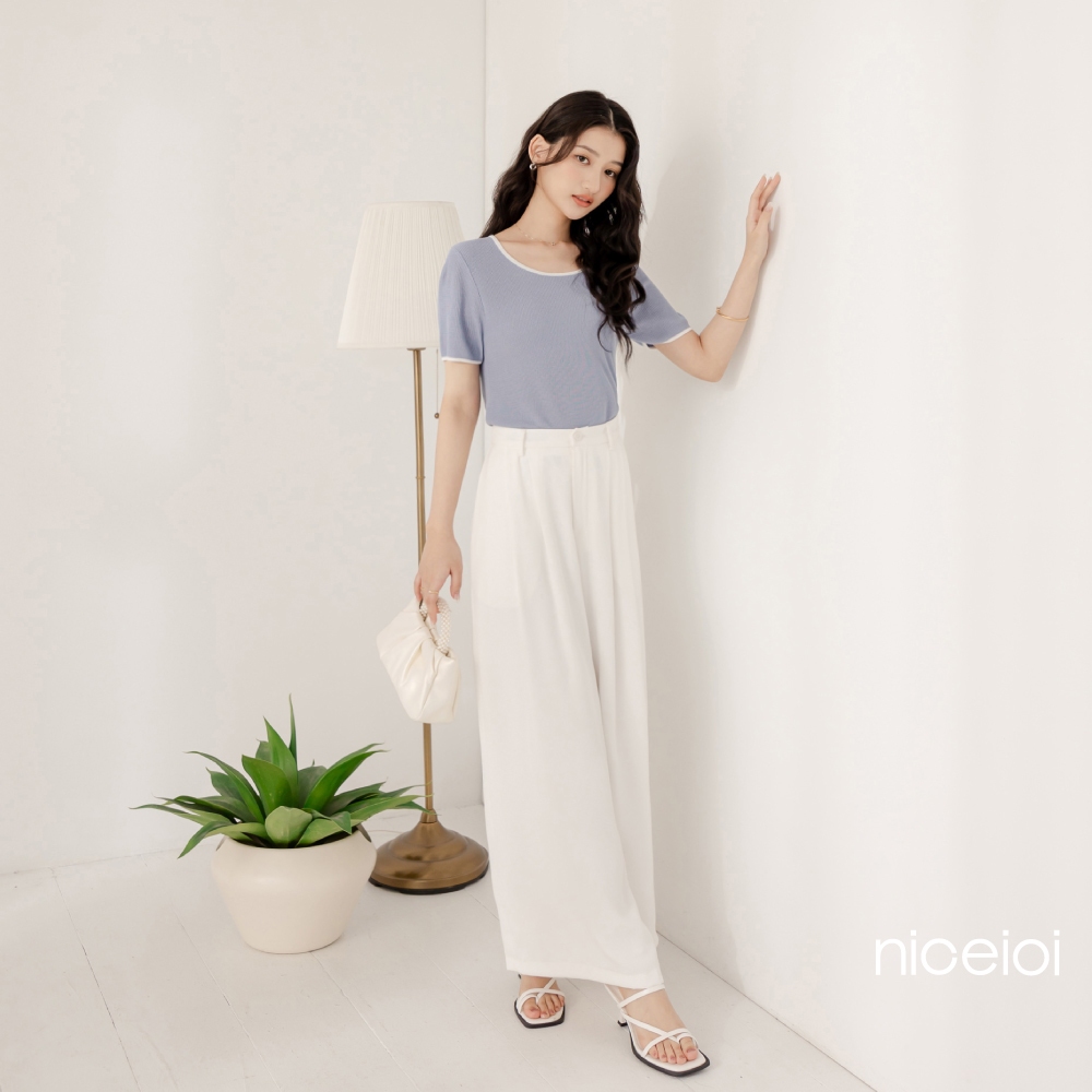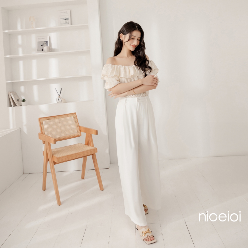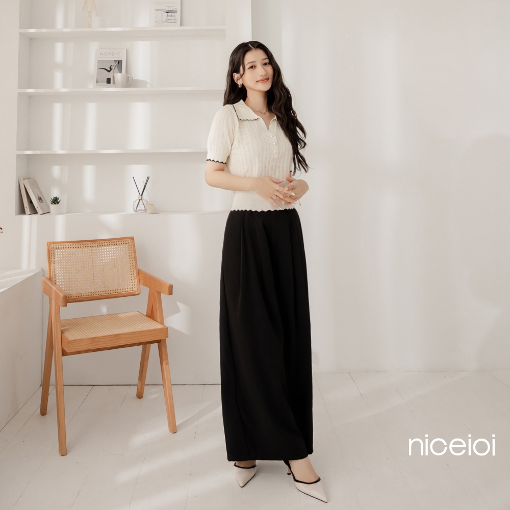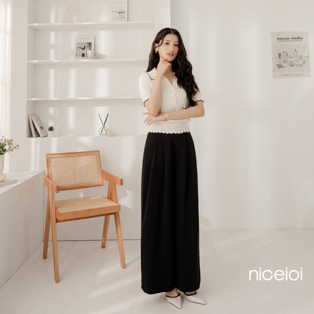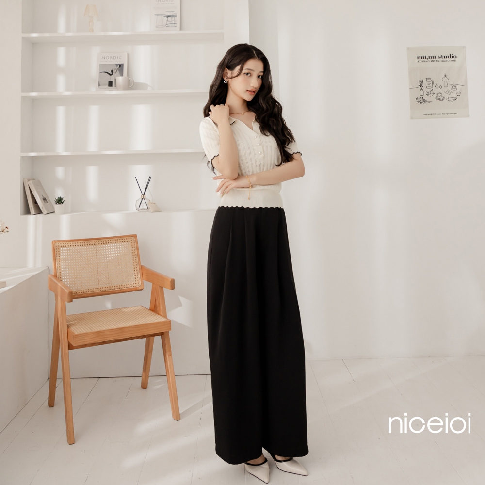 niceioi【特惠】個性雙打褶修身斜紋寬褲 (共2色) 女裝黑,M|黑,L|黑,XL|白,S|白,M|白,L|白,XL|黑,SPantsniceioi 官方旗艦店