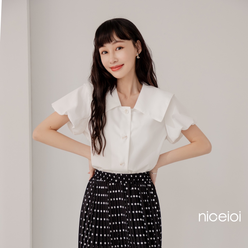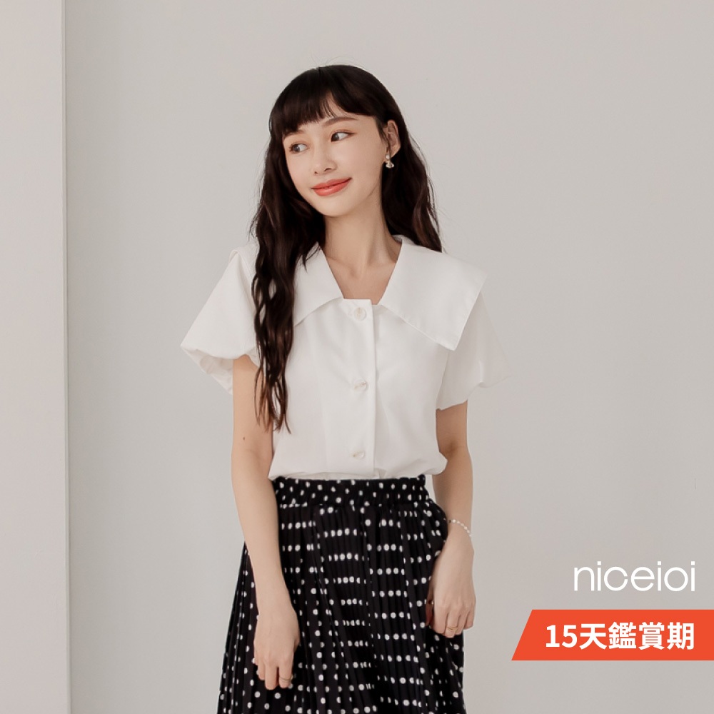 niceioi【特惠】學院風翻領蓬袖排釦襯衫 女裝白,S|白,M|白,L|白,XLShirts & Blousesniceioi 官方旗艦店