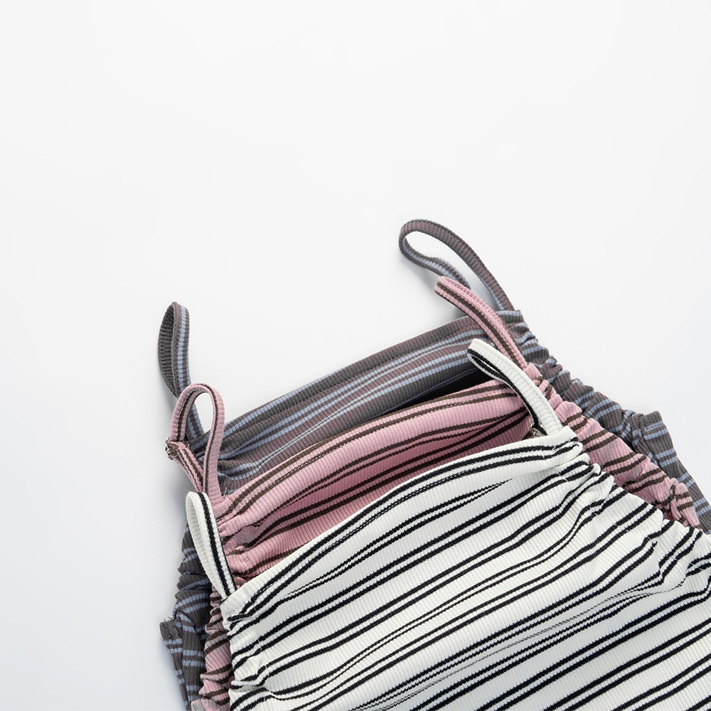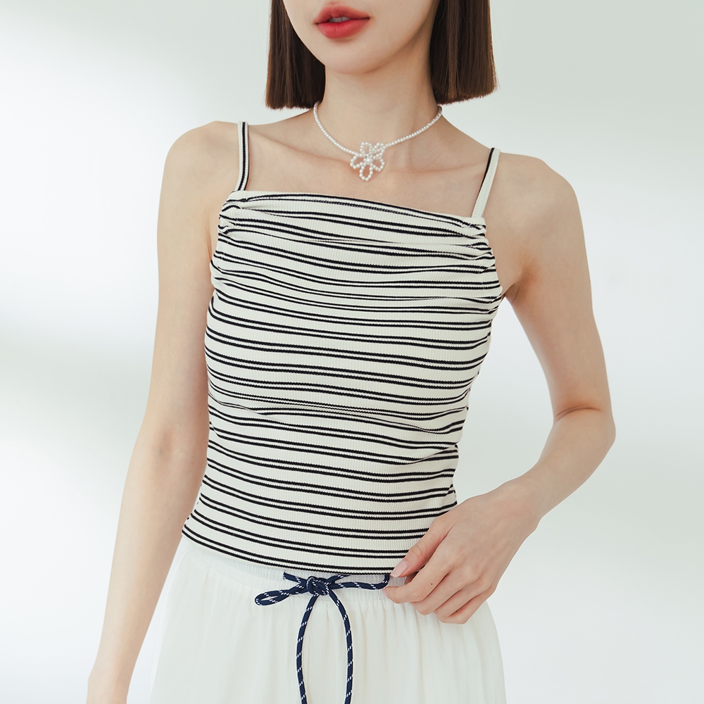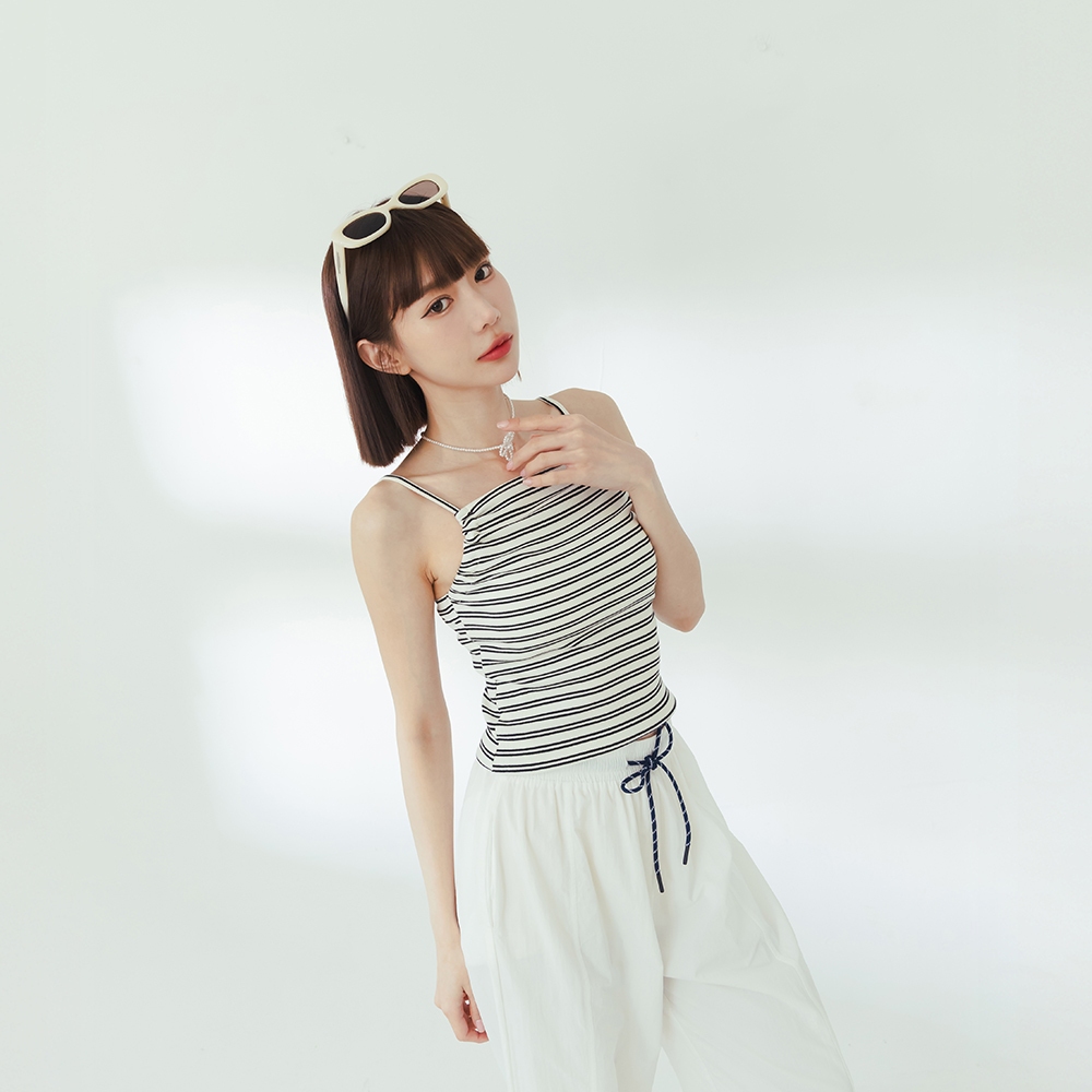 QUEENSHOP_ S 女裝 經典條紋抓皺設計細肩背心 三色售 現+預 【01098907】白|粉|灰藍Tanks & CamisolesQUEENSHOP