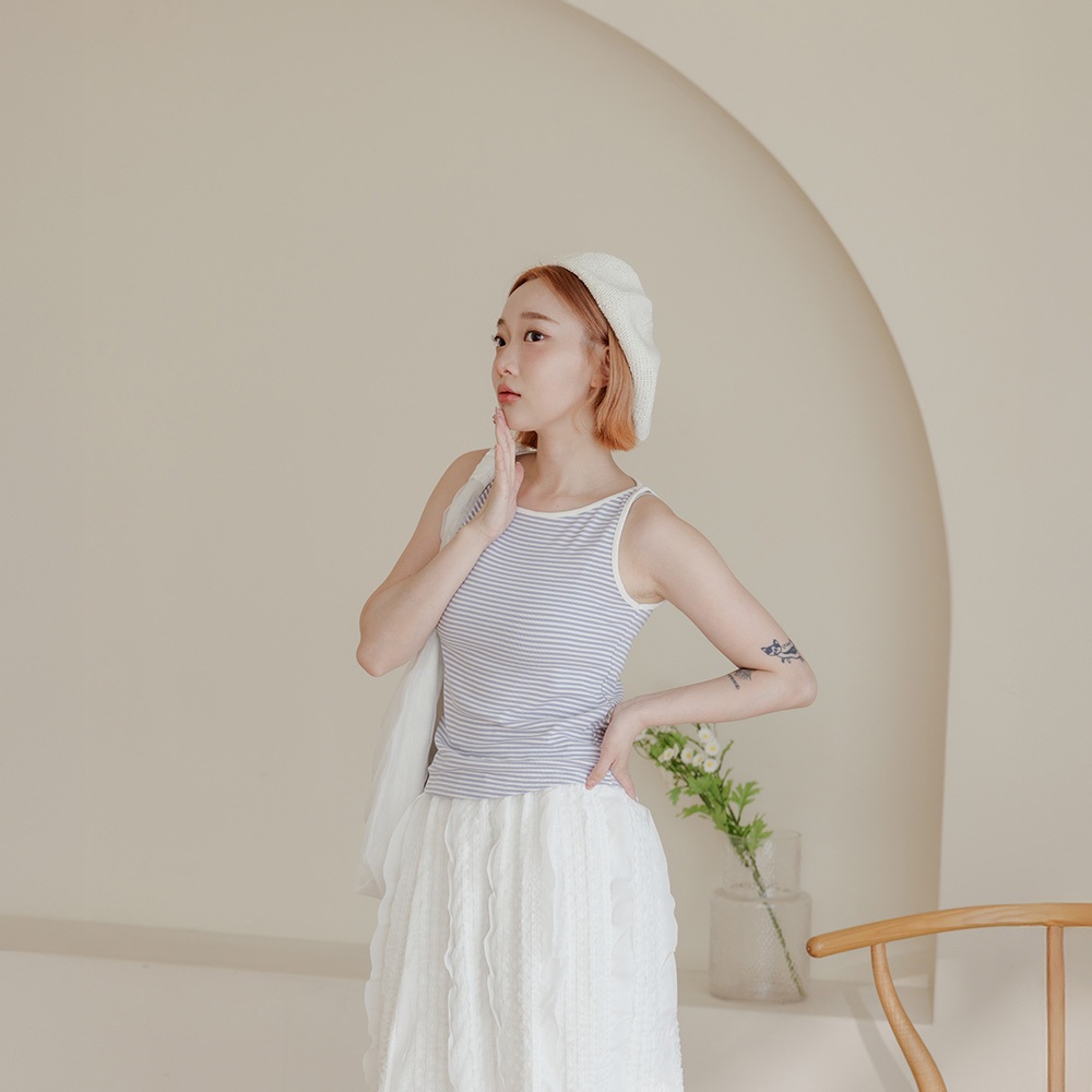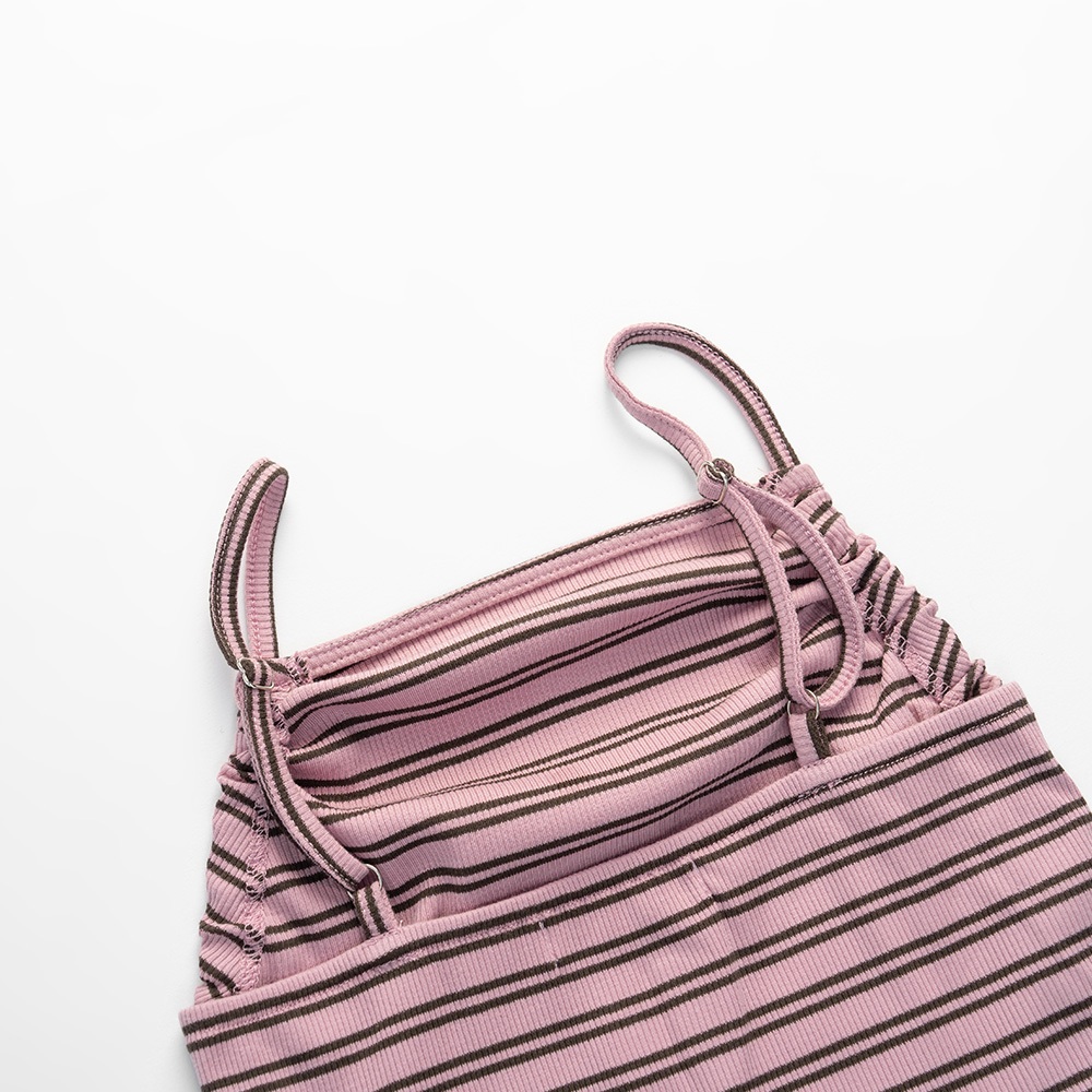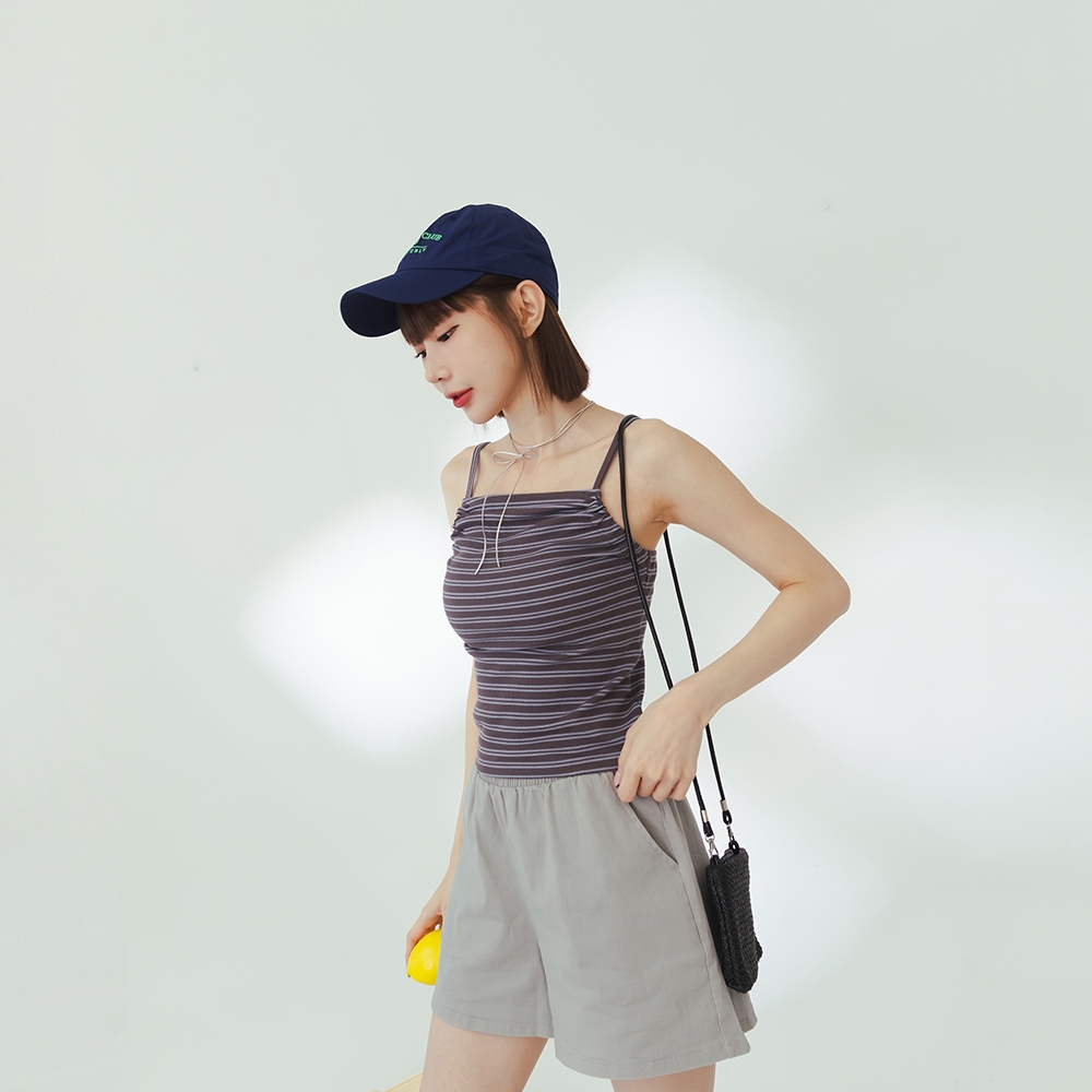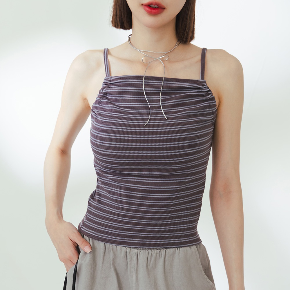 QUEENSHOP_ S 女裝 經典條紋抓皺設計細肩背心 三色售 現+預 【01098907】白|粉|灰藍Tanks & CamisolesQUEENSHOP
