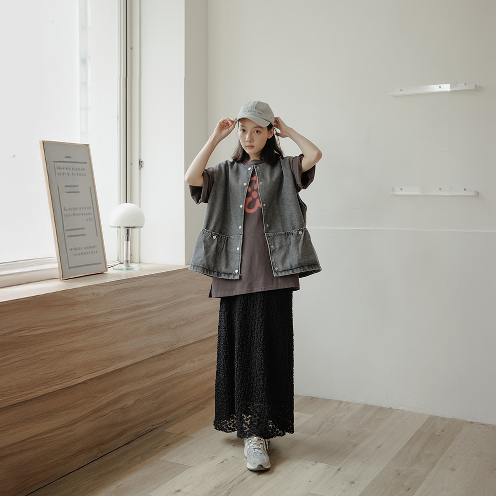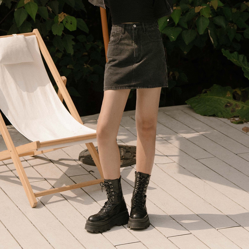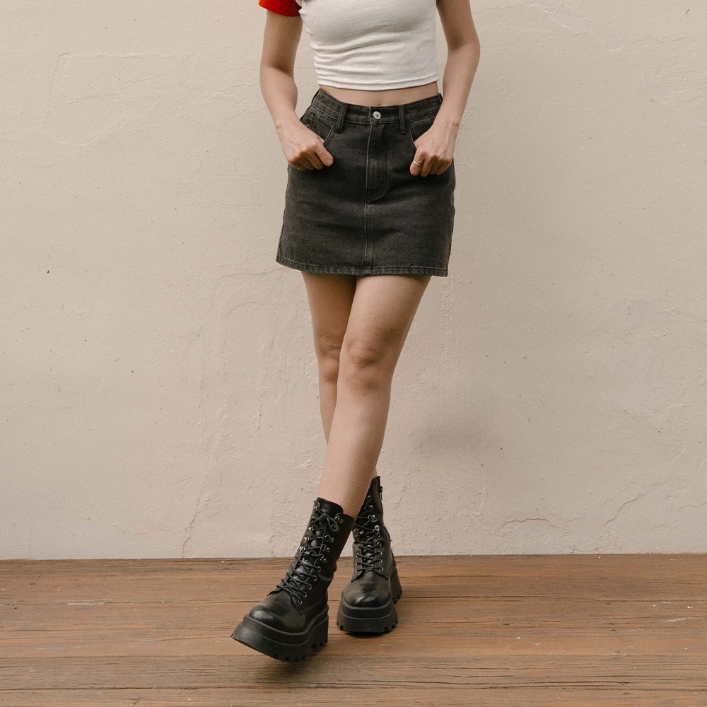 QUEENSHOP_ S 品子聯名 後口袋刷破設計牛仔短裙 S/M/L +預 【03010912】S|M|LQUEENSHOP