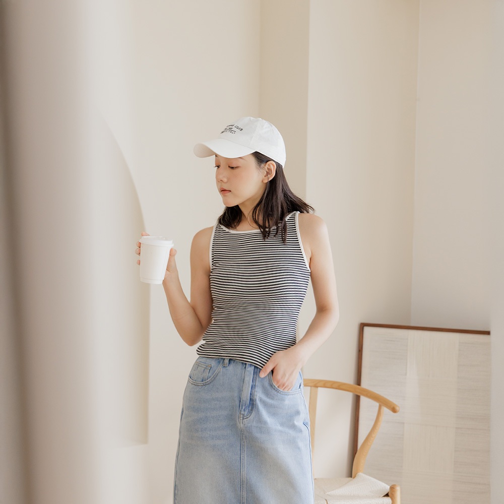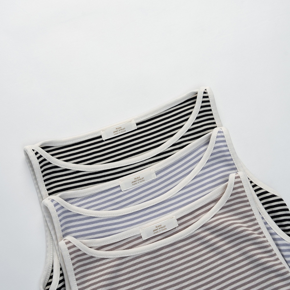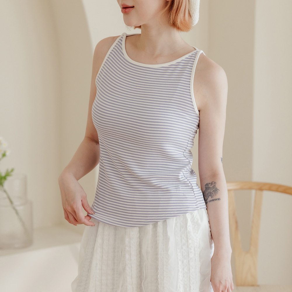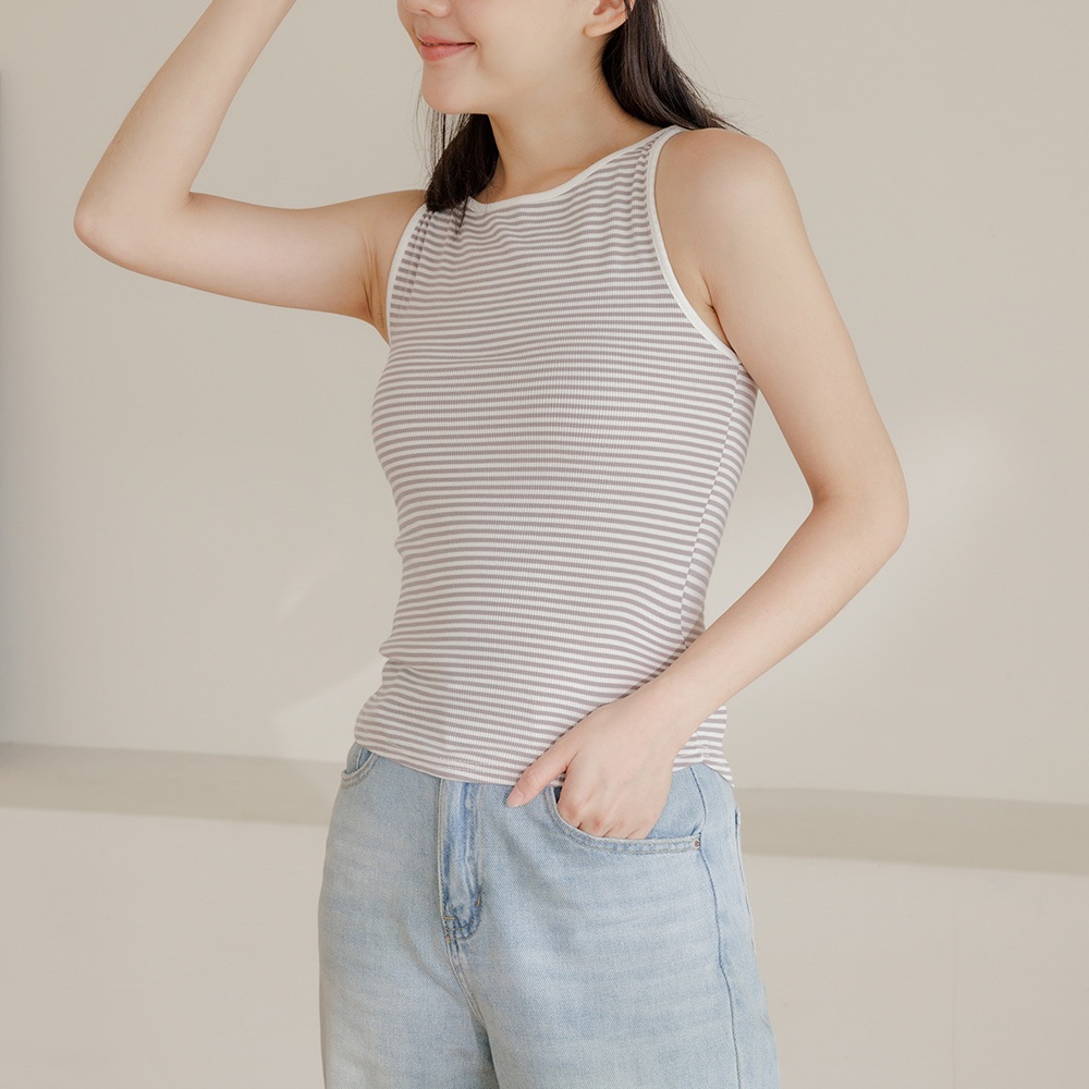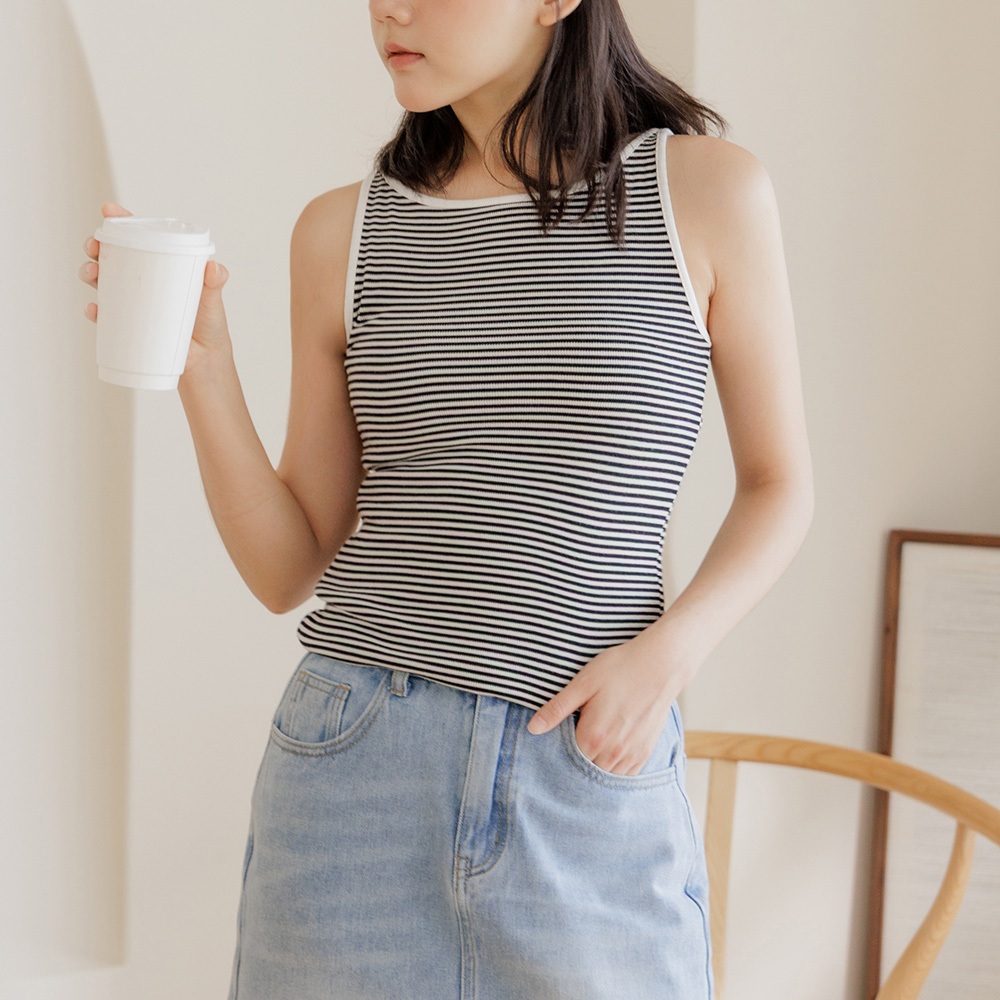 QUEENSHOP_ S 女裝 經典撞色條紋削肩背心 三色售 現+預 【01150467】黑|杏|水藍Tanks & CamisolesQUEENSHOP