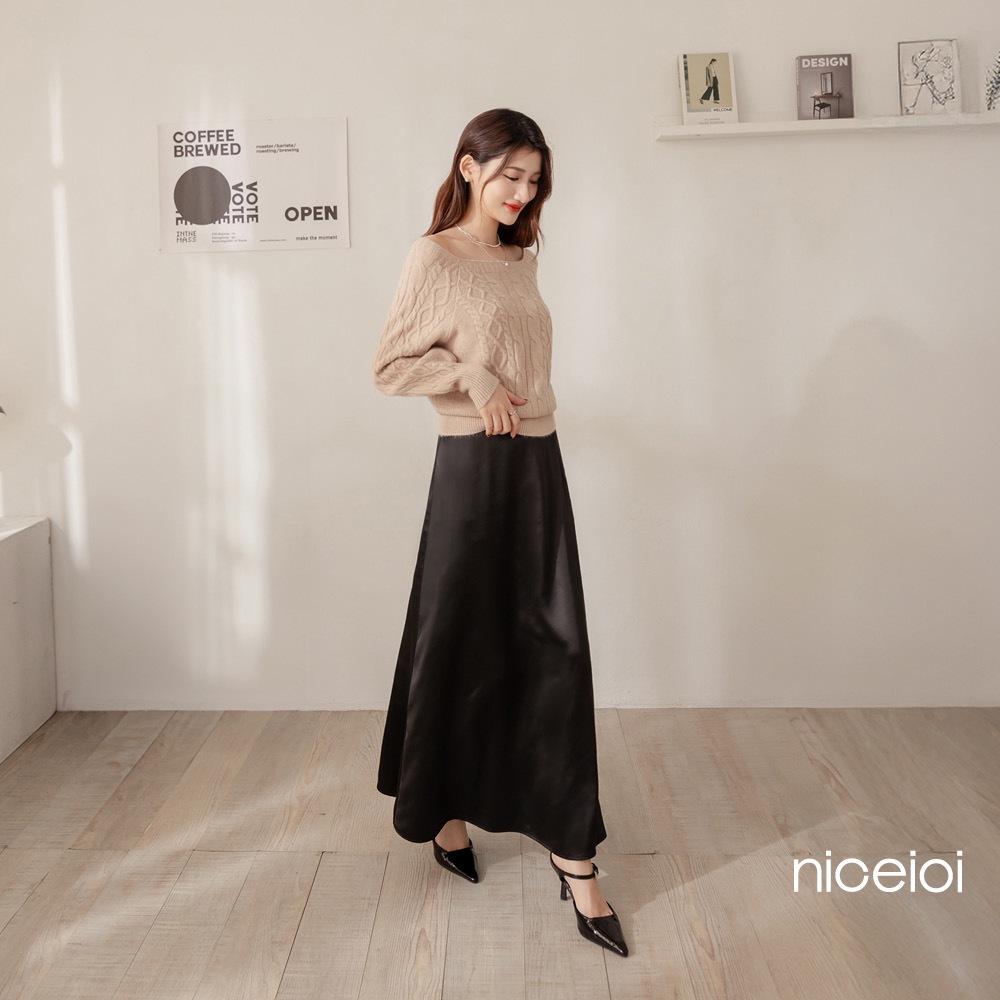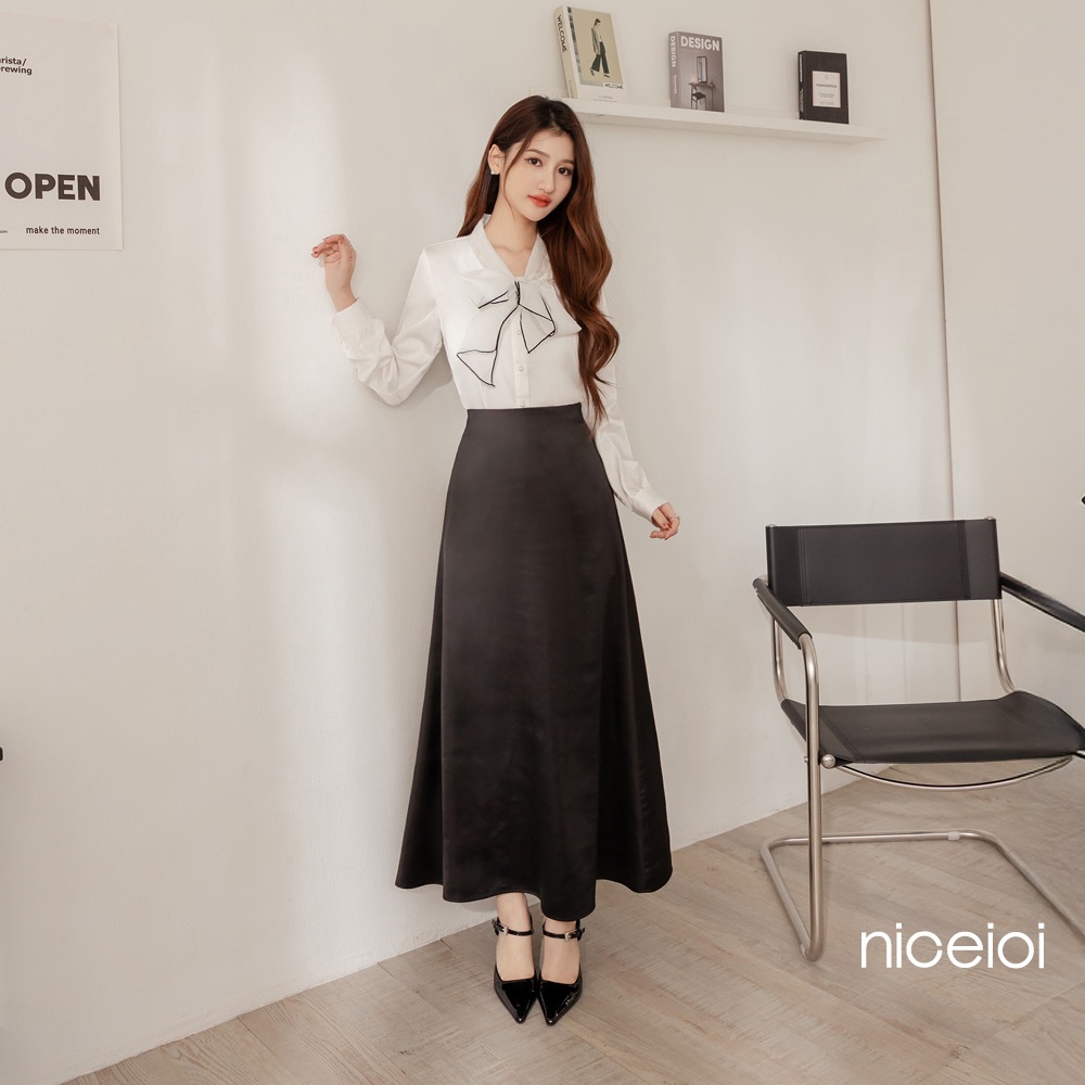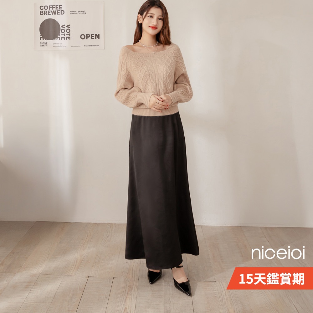 niceioi【特惠】日暮光影緞面傘襬長裙 女裝黑,S|黑,M|黑,L|黑,XLniceioi 官方旗艦店