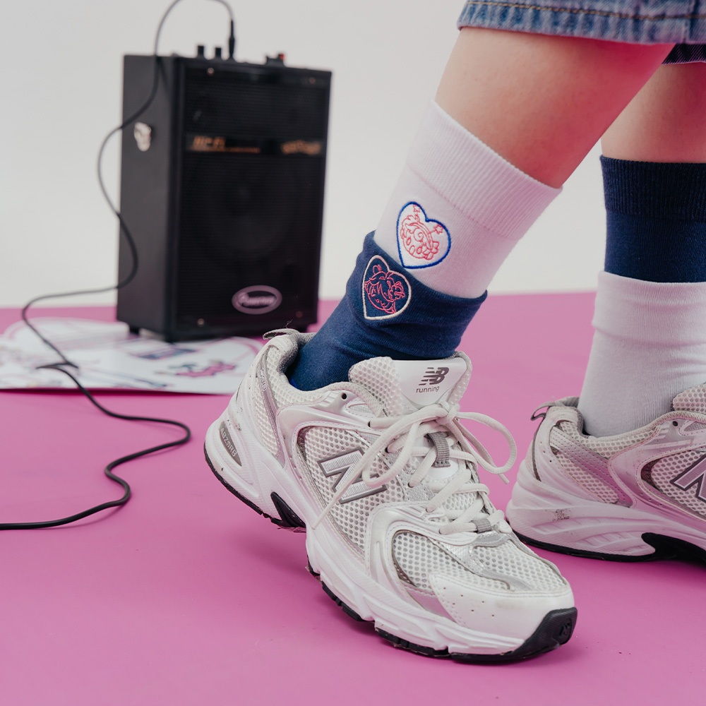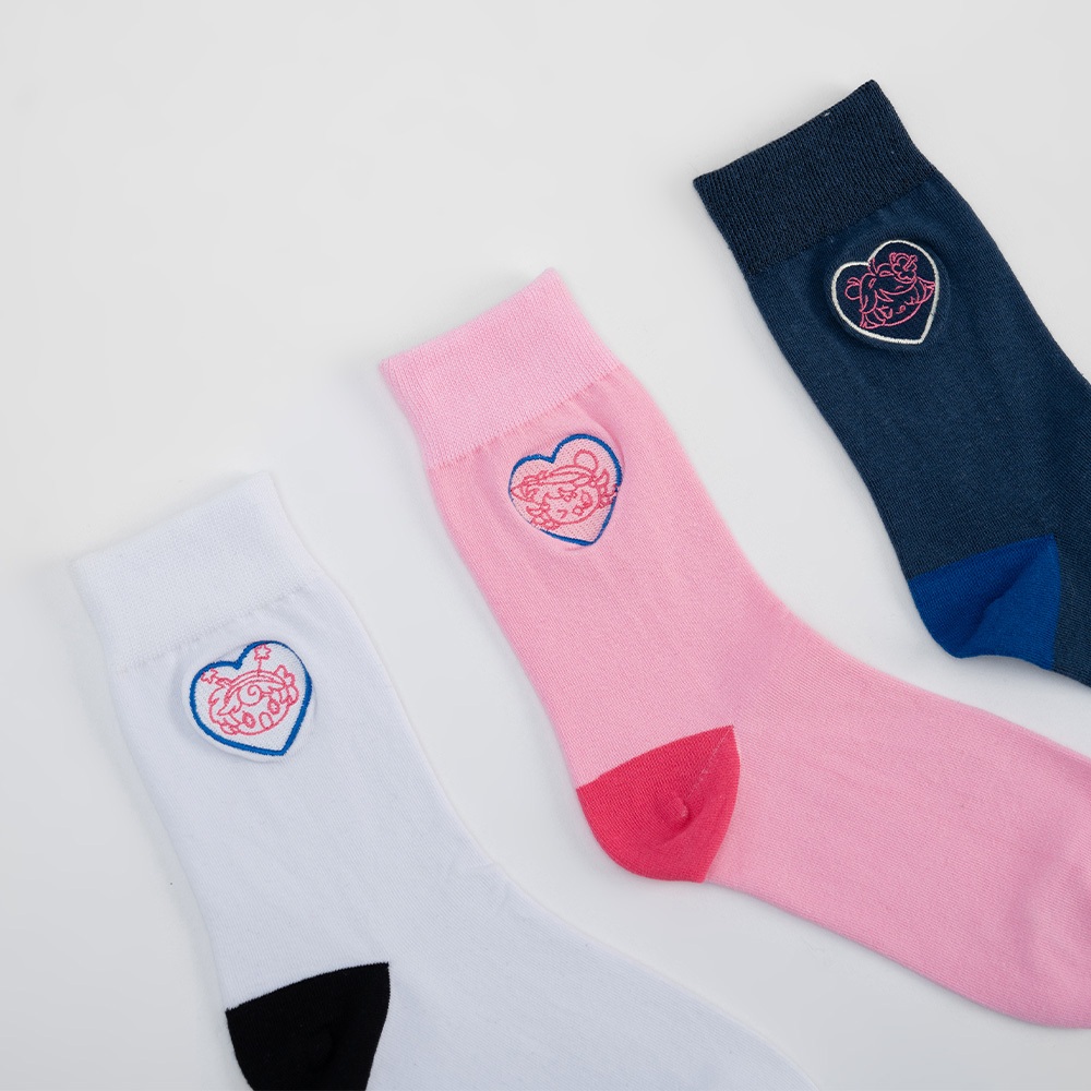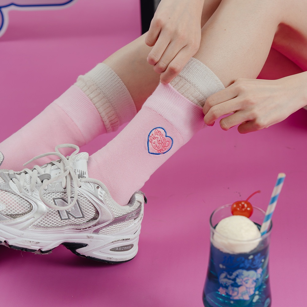 QUEENSHOP_ S 女裝 MIT 寬片片 撞色繡花設計中筒襪 三色售 現+預 【07110574】白|藍|粉紅SocksQUEENSHOP