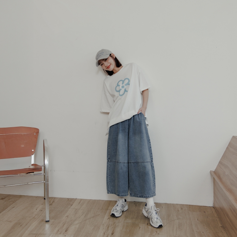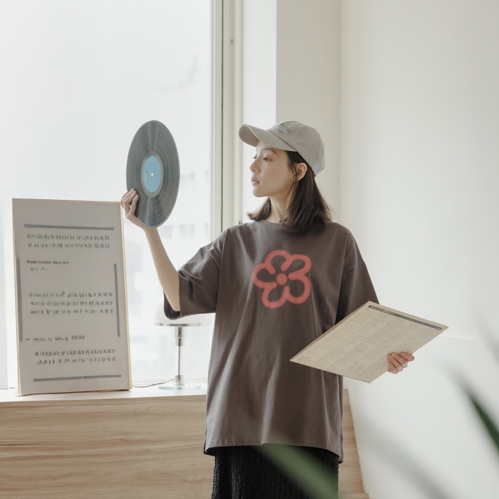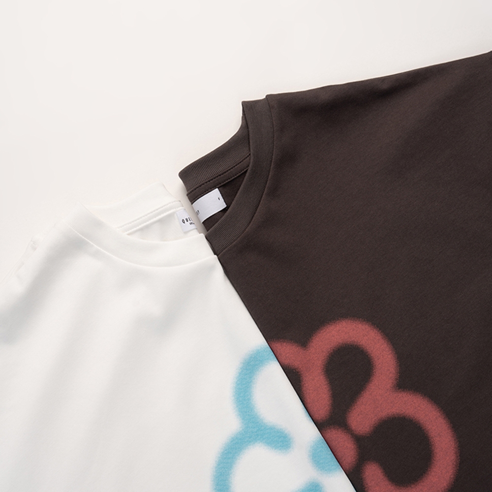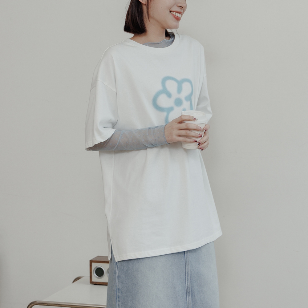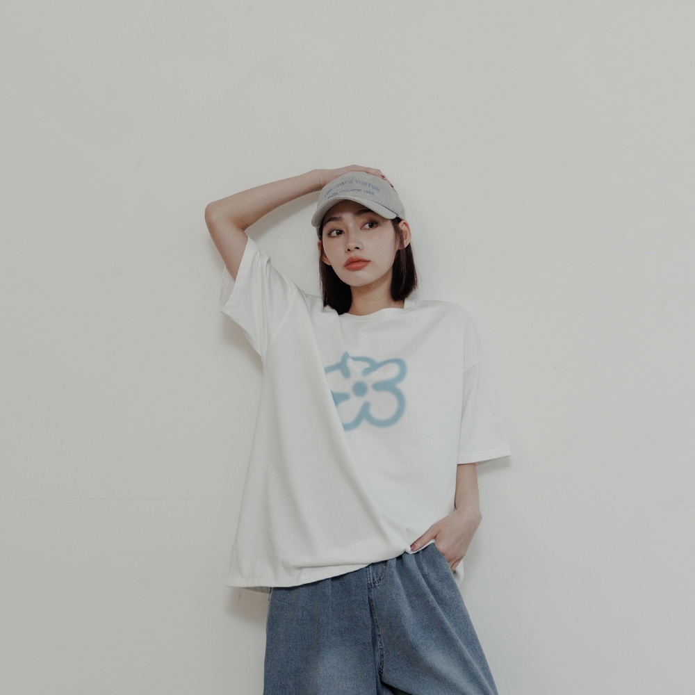 QUEENSHOP_ S 女裝 噴漆花花印圖寬版短袖上衣 兩色售 現+預 【01190232】灰|白T-shirtsQUEENSHOP