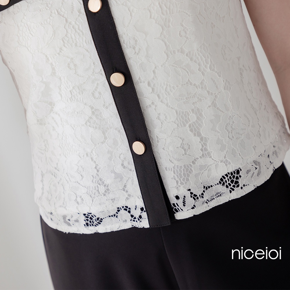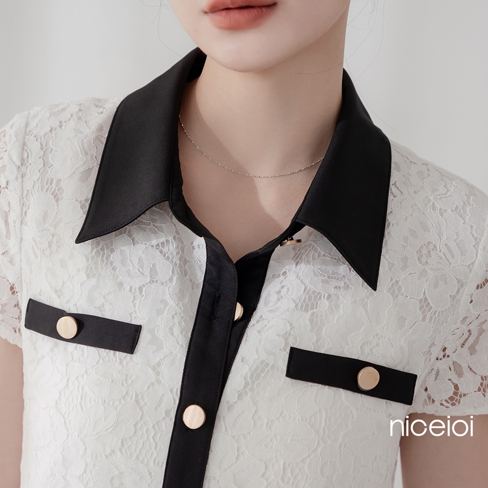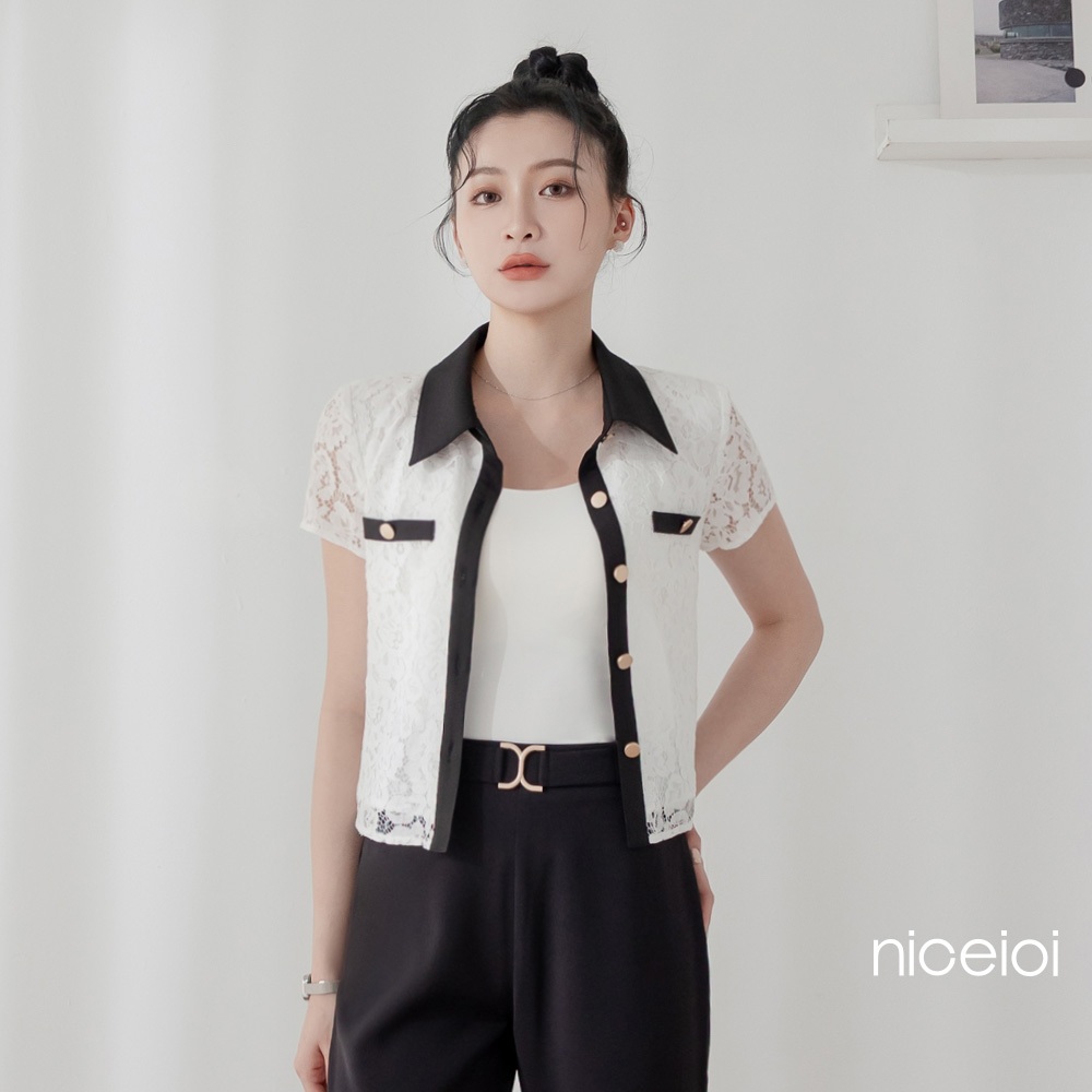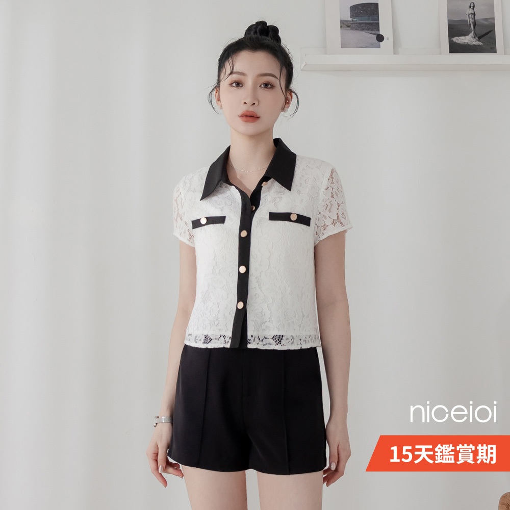 niceioi 法式淑女撞色鏤空蕾絲雕花微短版襯衫上衣 女裝白,S|白,M|白,L|白,XLShirts & Blousesniceioi 官方旗艦店