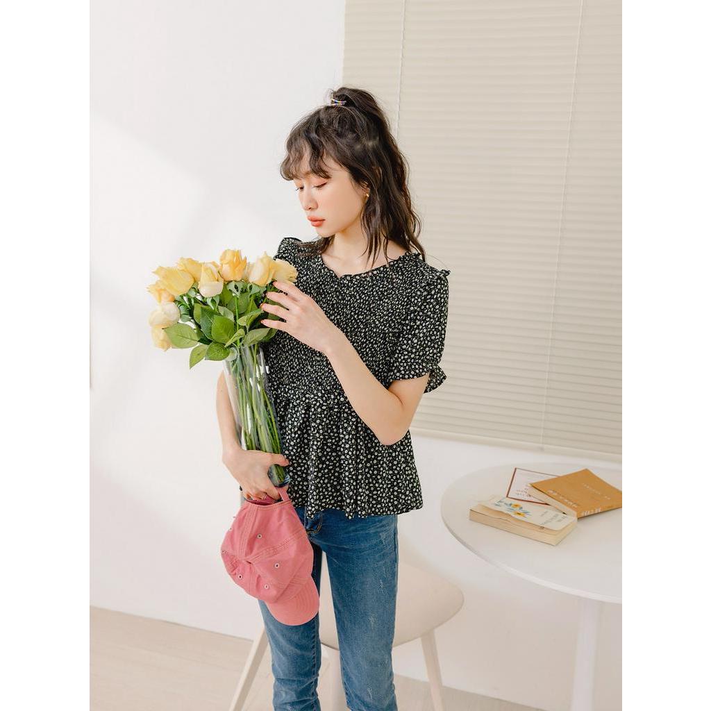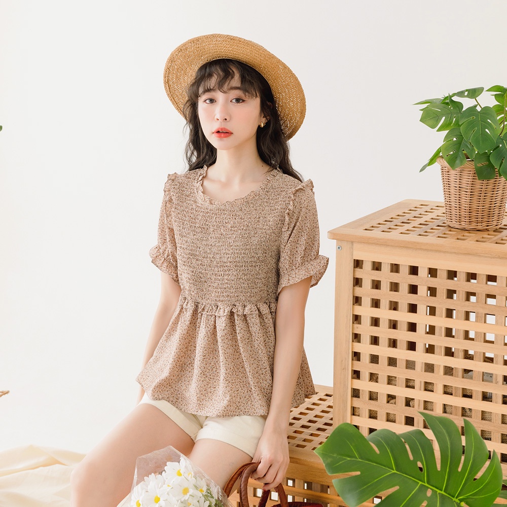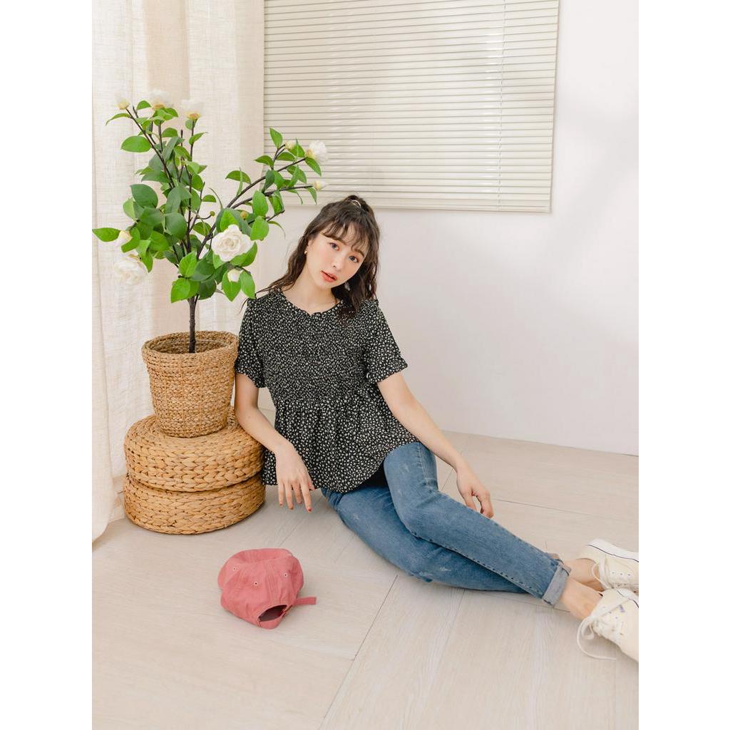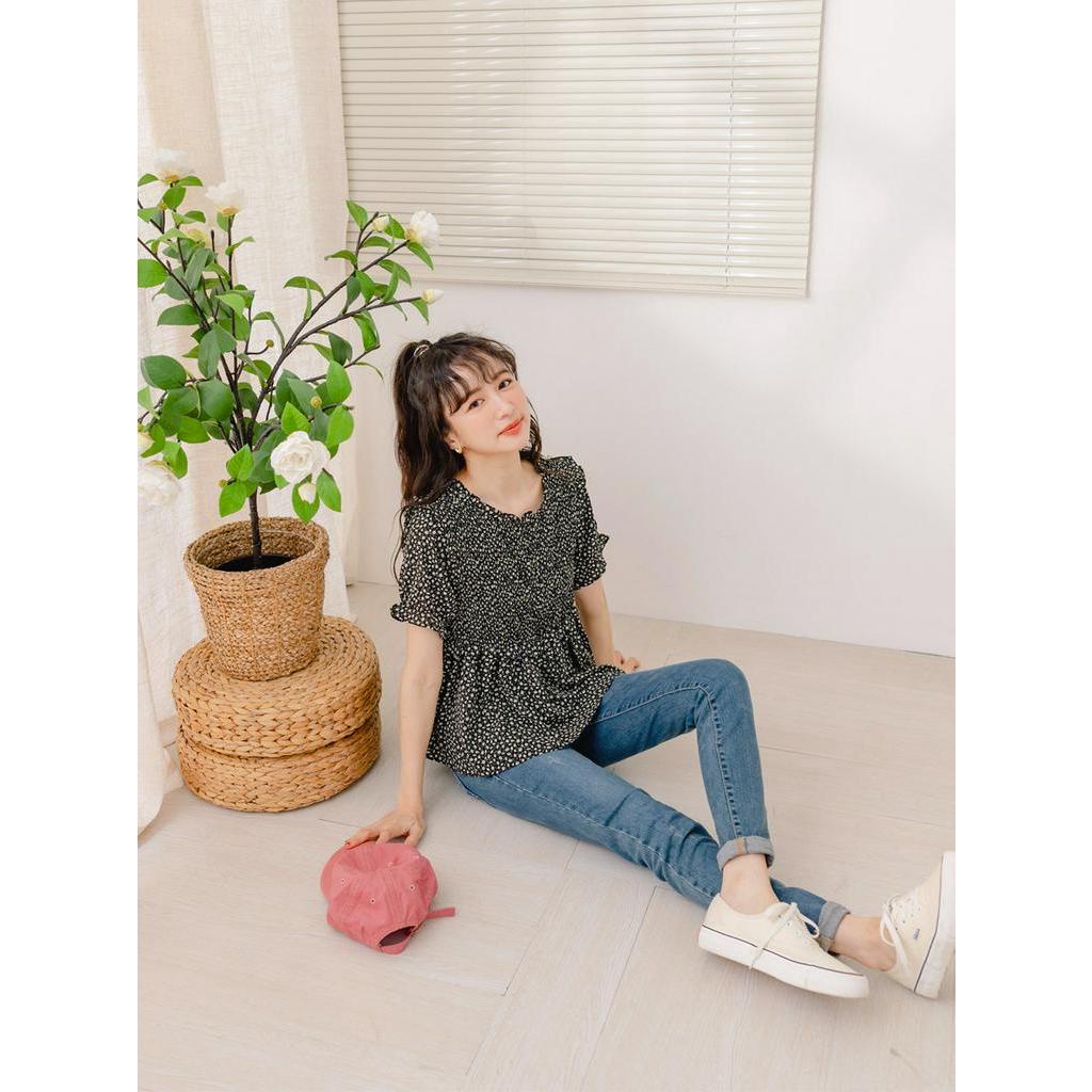OB嚴選 碎花荷葉造型收腰傘襬拋袖上衣 《AB18295》大尺碼/現貨/女裝卡其,XL|卡其,2L|卡其,3L|黑,M|黑,L|黑,XL|卡其,S|卡其,L|黑,2L|黑,3L|卡其,M|黑,ST-shirtsOB嚴選官方旗艦店