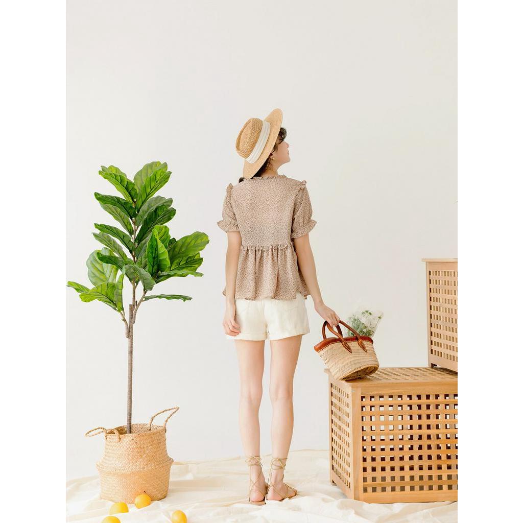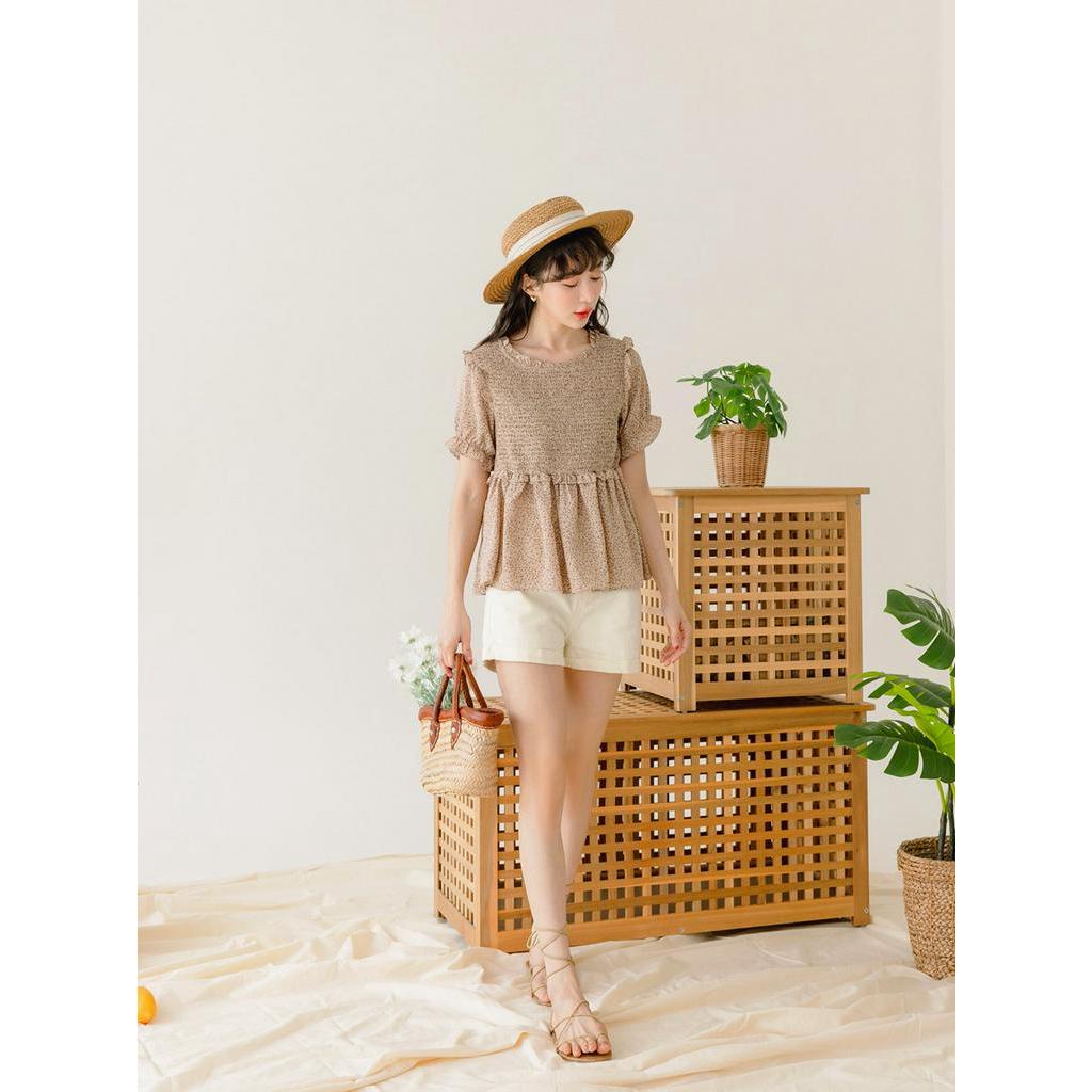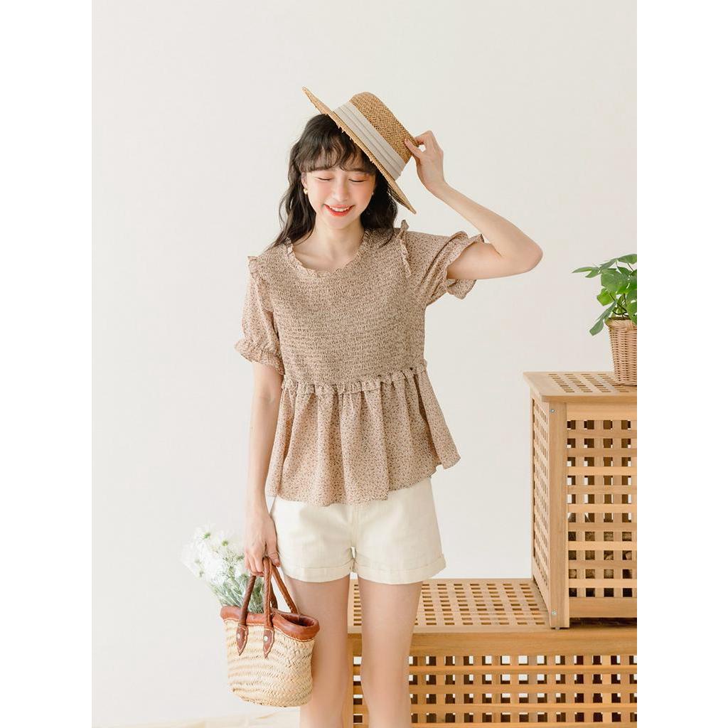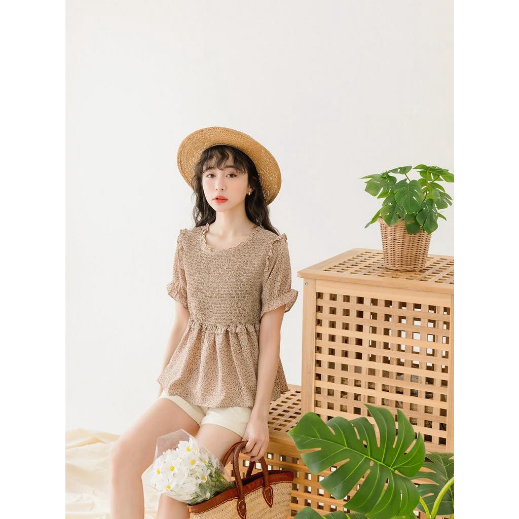 OB嚴選 碎花荷葉造型收腰傘襬拋袖上衣 《AB18295》大尺碼/現貨/女裝卡其,XL|卡其,2L|卡其,3L|黑,M|黑,L|黑,XL|卡其,S|卡其,L|黑,2L|黑,3L|卡其,M|黑,ST-shirtsOB嚴選官方旗艦店