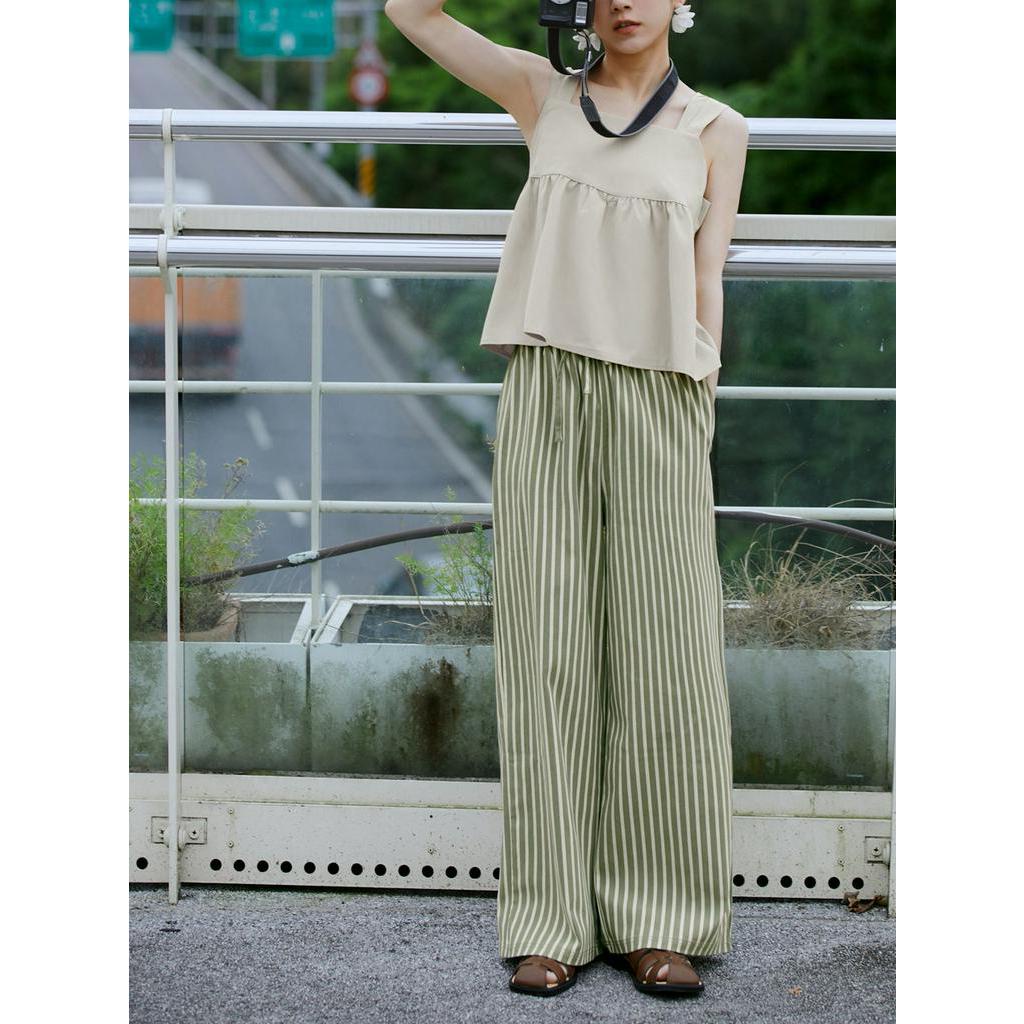 OB嚴選 條紋側口袋彈力鬆緊腰抽繩綁帶寬褲 《KG1585》日系/大尺碼/現貨/女裝灰綠,3L|卡其杏,L|卡其杏,3L|灰綠,M|灰綠,L|卡其杏,S|卡其杏,M|卡其杏,XL|卡其杏,2L|灰綠,S|灰綠,XL|灰綠,2LPantsOB嚴選官方旗艦店