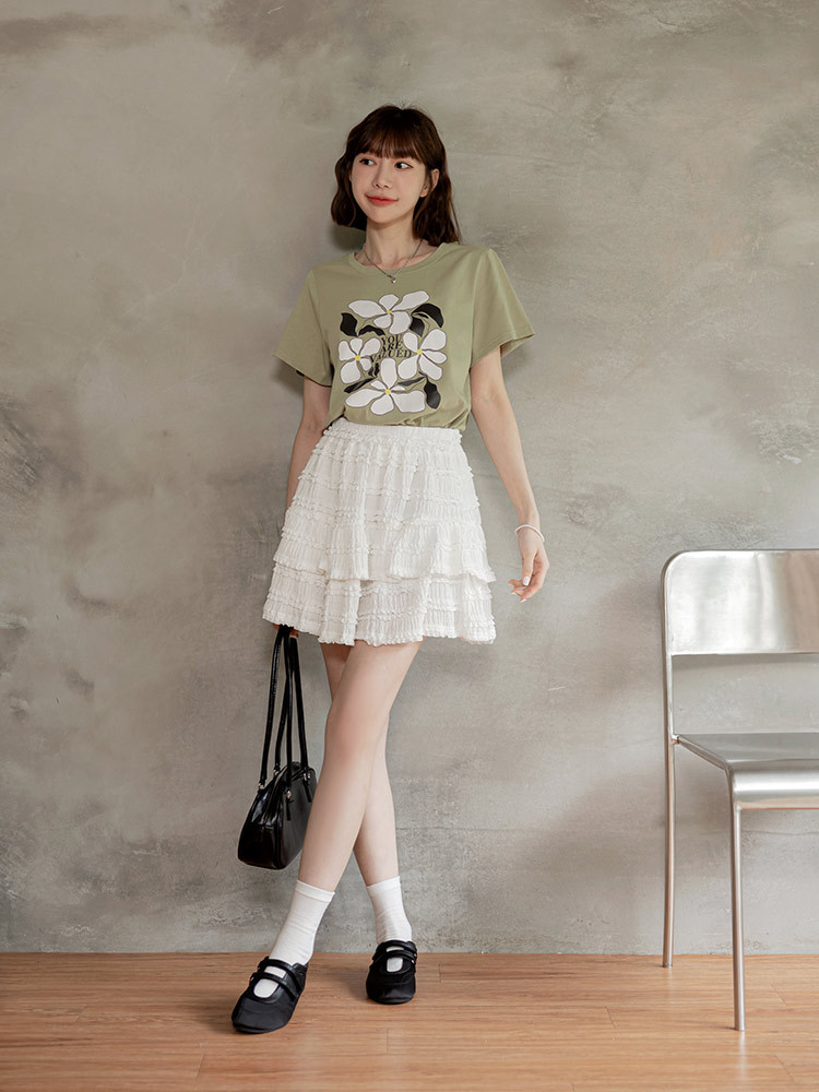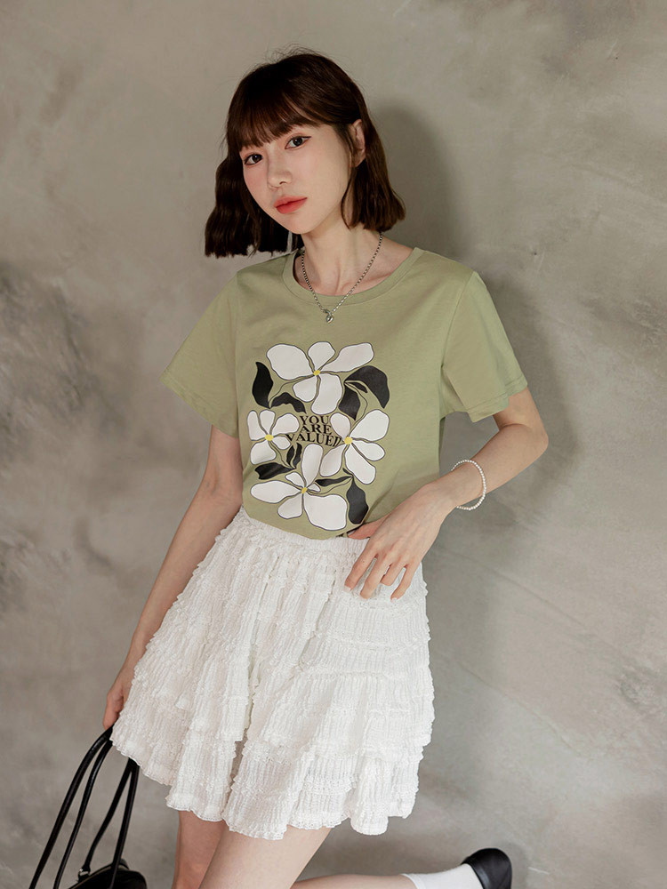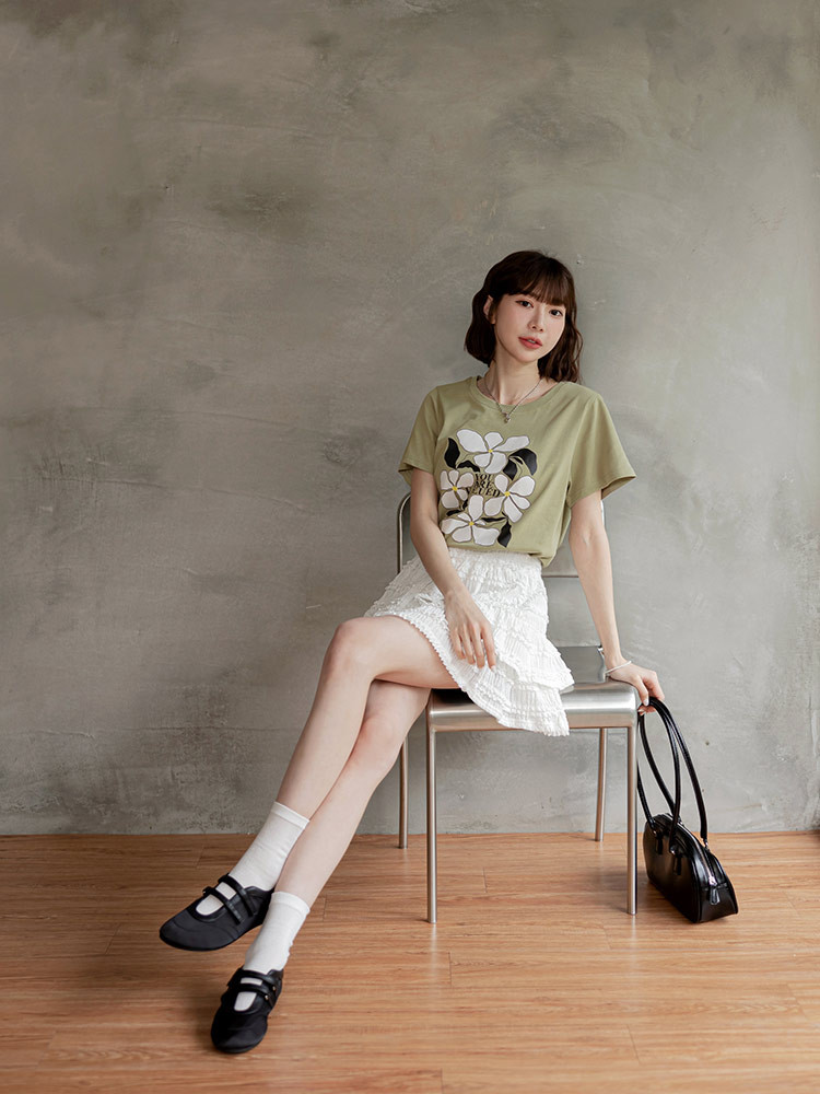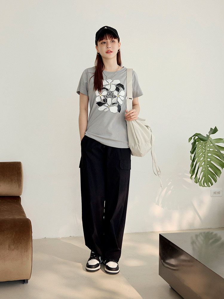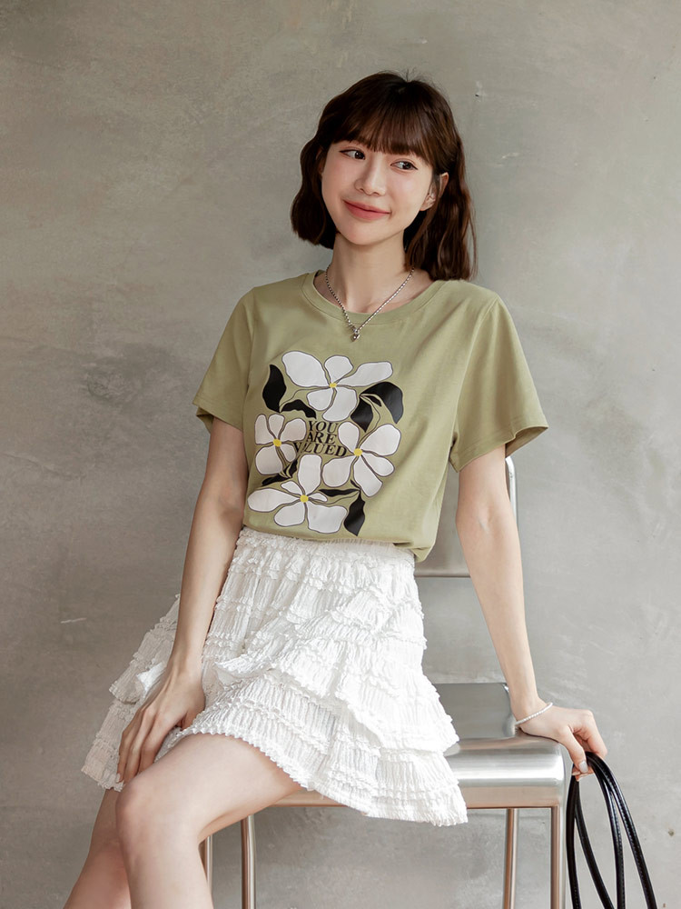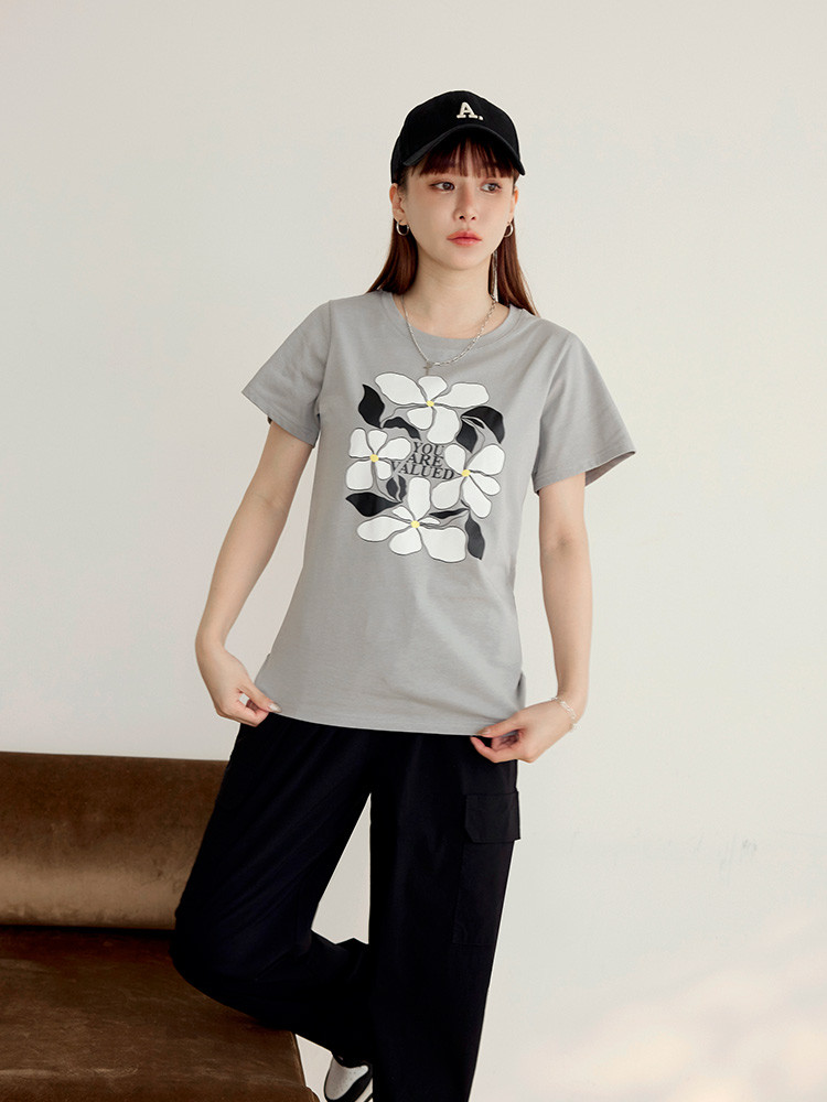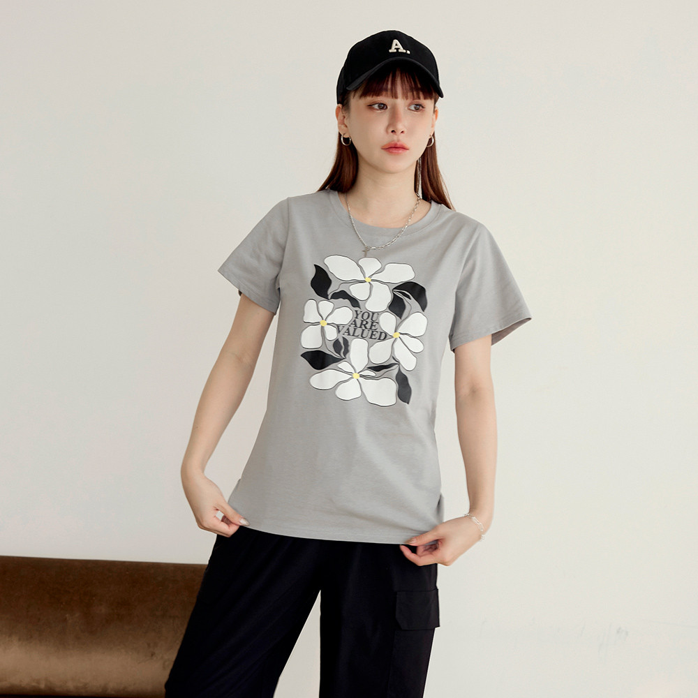 OB嚴選 純棉質感花朵印花短袖上衣 《AB20399》灰,S|灰,M|灰,L|灰,XL|灰,2L|灰,3L|軍綠,S|軍綠,M|軍綠,L|軍綠,XL|軍綠,2L|軍綠,3LT-shirtsOB嚴選官方旗艦店