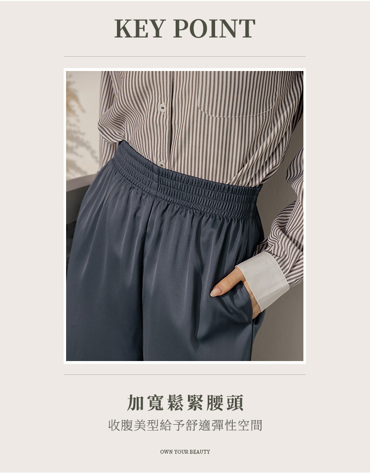 OB嚴選 微光澤鬆緊寬腰頭寬褲 《BA7631》大尺碼/女裝/現貨灰藍,S|灰藍,M|灰藍,L|灰藍,XL|灰藍,2L|灰藍,3L|軍綠,S|軍綠,M|軍綠,L|軍綠,XL|軍綠,2L|軍綠,3LPantsOB嚴選官方旗艦店