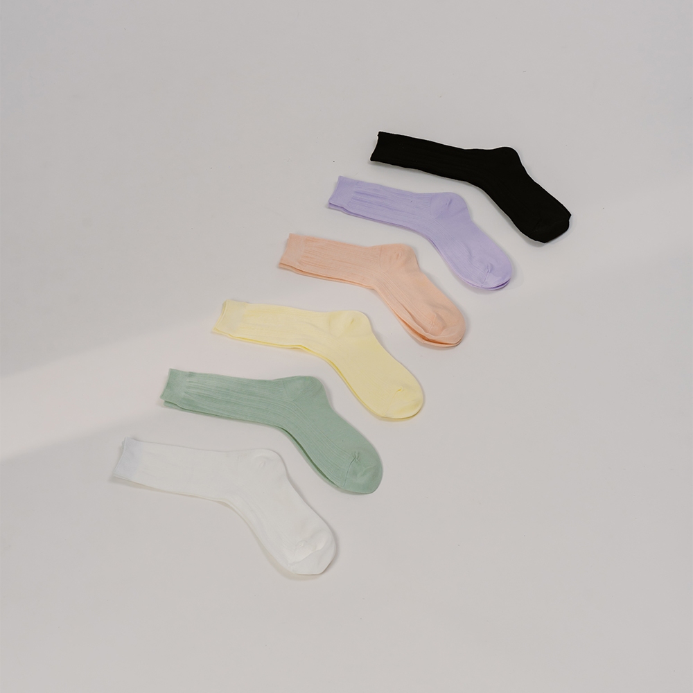 QUEENSHOP_ S 女裝 正韓 素面馬卡龍坑條中高筒襪 六色售 現+預 【07110546】黑|白|粉|黃|綠|紫SocksQUEENSHOP
