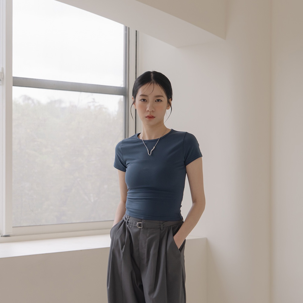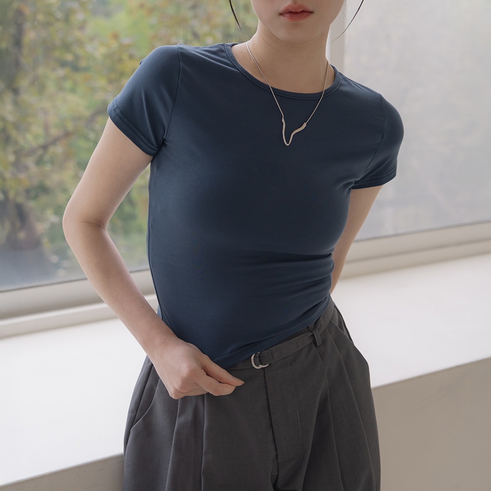 QUEENSHOP_ S 女裝 短袖 基本素面合身圓領純棉上衣-藍 S/M 現+預 【01098816】藍S|藍MT-shirtsQUEENSHOP