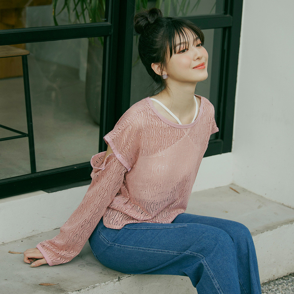 OB嚴選 可拆袖洞洞幾何鏤空多穿上衣 《AB19691》日系/大尺碼/現貨/女裝灰粉,S|灰粉,M|灰粉,L|灰粉,XL|灰粉,2L|灰粉,3L|米黃,S|米黃,M|米黃,L|米黃,XL|米黃,2L|米黃,3LOthersOB嚴選官方旗艦店