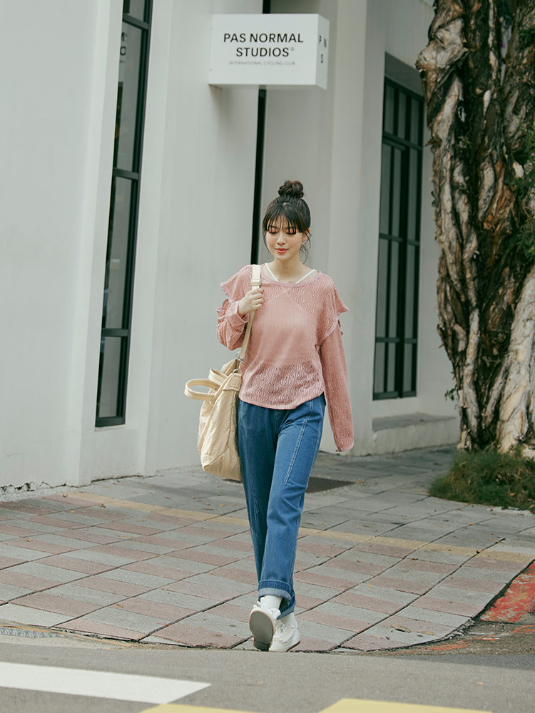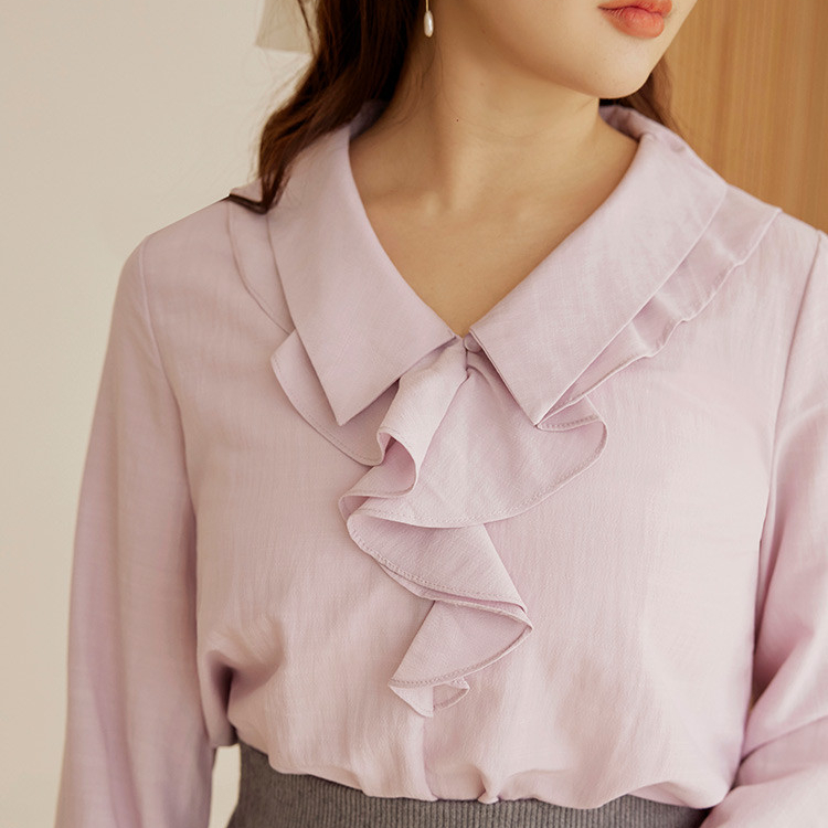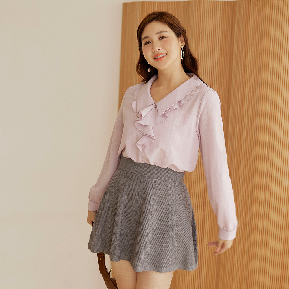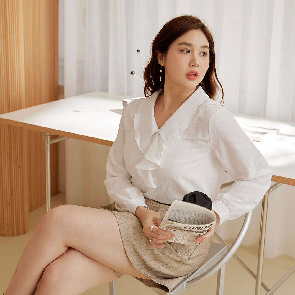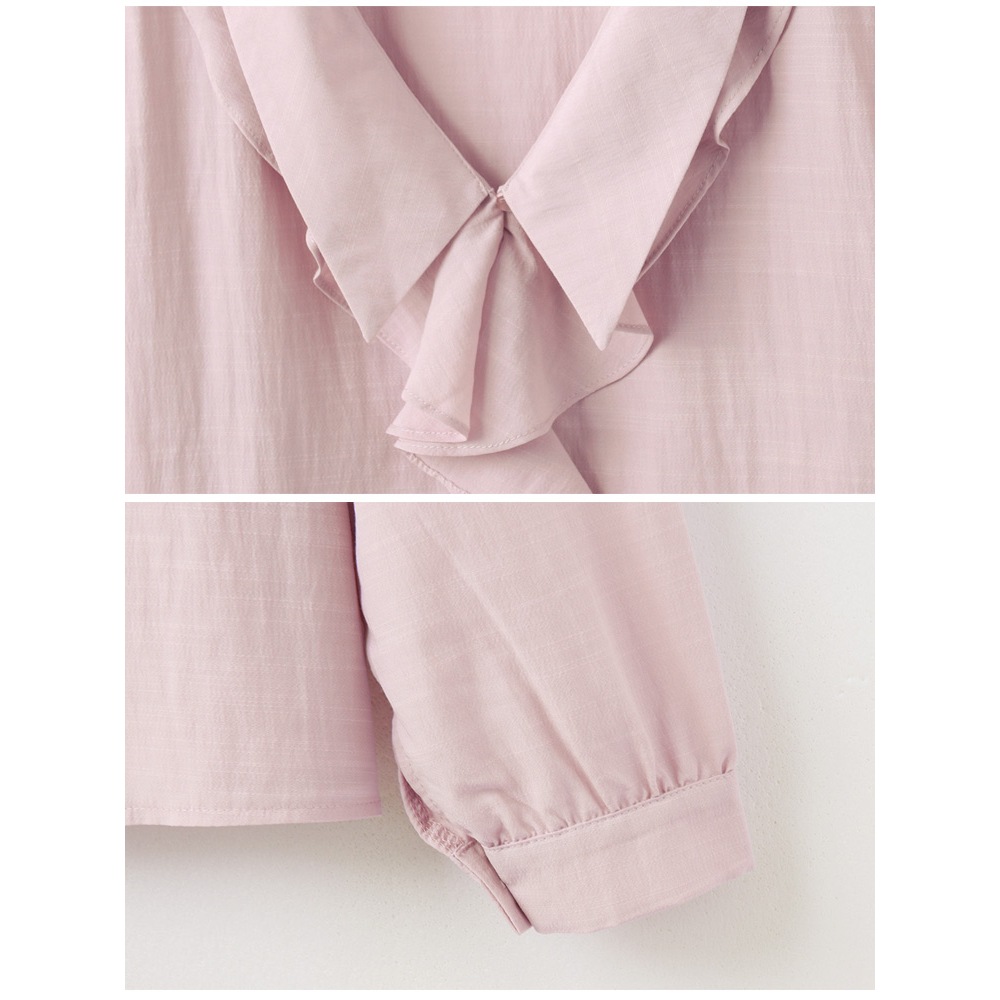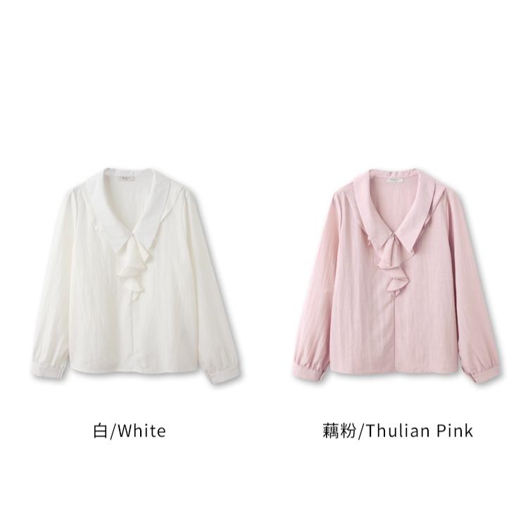 OB嚴選 雲朵自訂款-V字翻領荷葉造型長袖上衣 《AB19746》大尺碼/女裝/現貨白,XL|白,2L|白,3L|藕粉,XL|藕粉,2L|藕粉,3LShirts & BlousesOB嚴選官方旗艦店