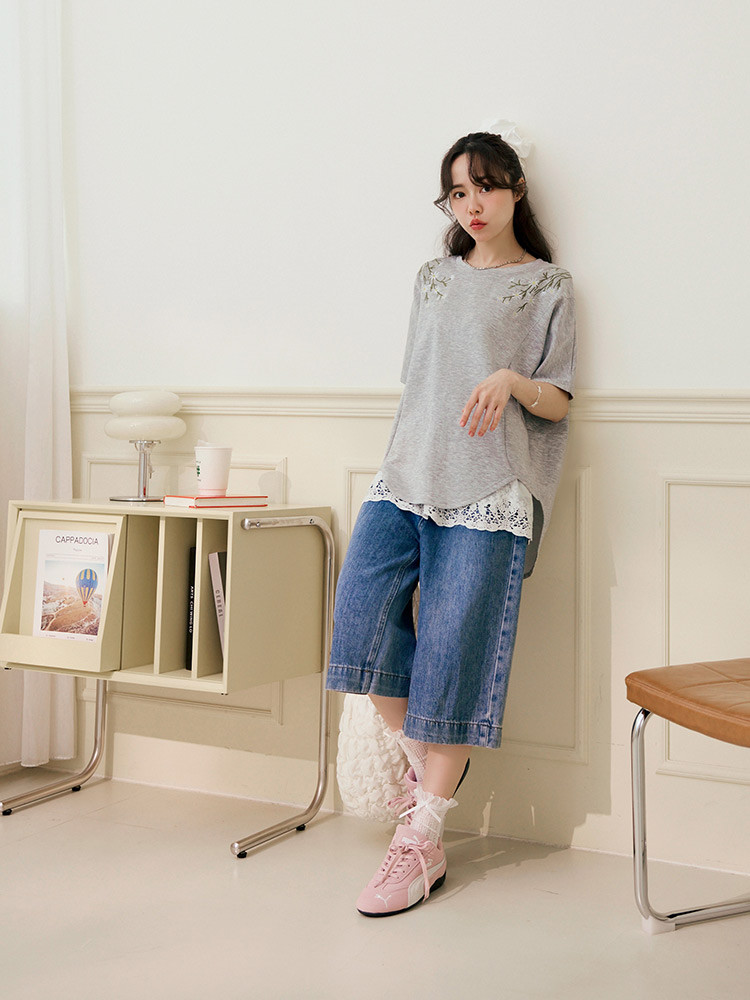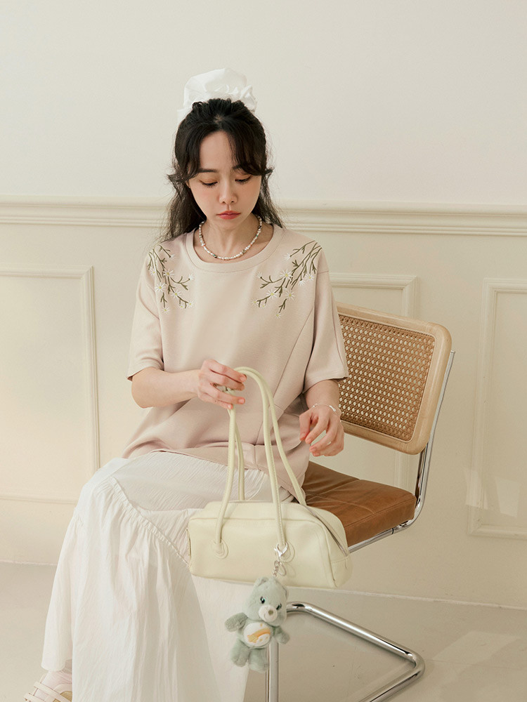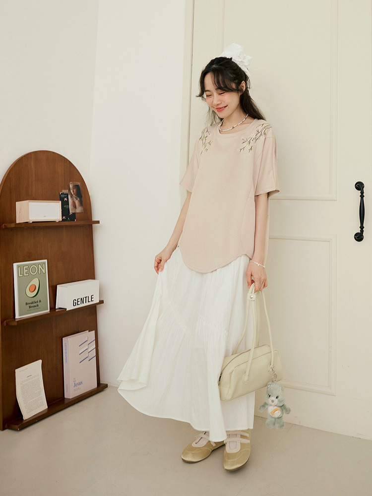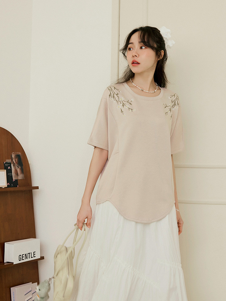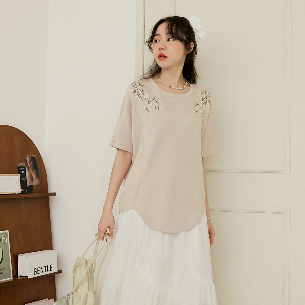 OB嚴選 輕柔空氣棉花朵刺繡寬鬆長版上衣 《AB20538》奶茶,F|奶茶,XL|奶茶,2L|奶茶,3L|奶茶,4L|灰,F|灰,XL|灰,2L|灰,3L|灰,4LT-shirtsOB嚴選官方旗艦店