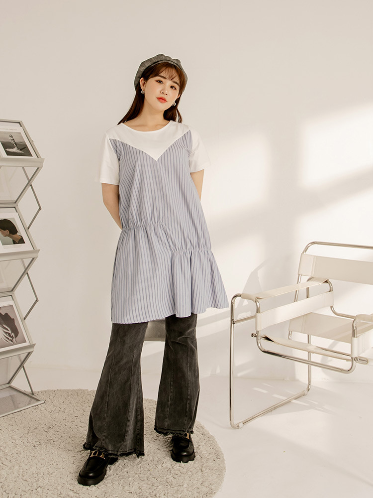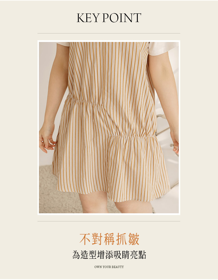 OB嚴選 雲朵自訂款-V字拼接條紋不對稱抓皺洋裝 《DA10175》大尺碼/女裝/現貨灰藍,XL|灰藍,2L|灰藍,3L|卡其,XL|卡其,2L|卡其,3LOB嚴選官方旗艦店