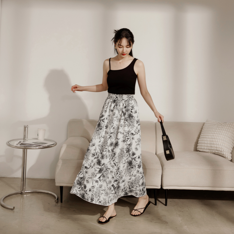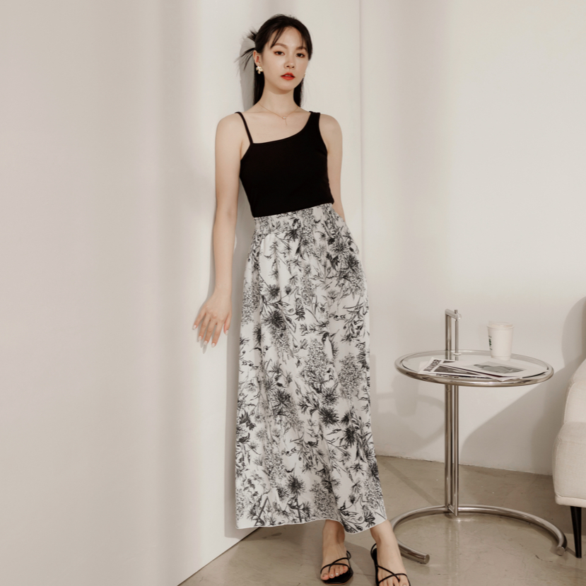 OB嚴選 印花雪紡腰鬆緊A字傘襬長裙 《CA2963》大尺碼/女裝/現貨黑,S|黑,M|黑,L|黑,XL|黑,2L|黑,3L|白,S|白,M|白,L|白,XL|白,2L|白,3LOB嚴選官方旗艦店