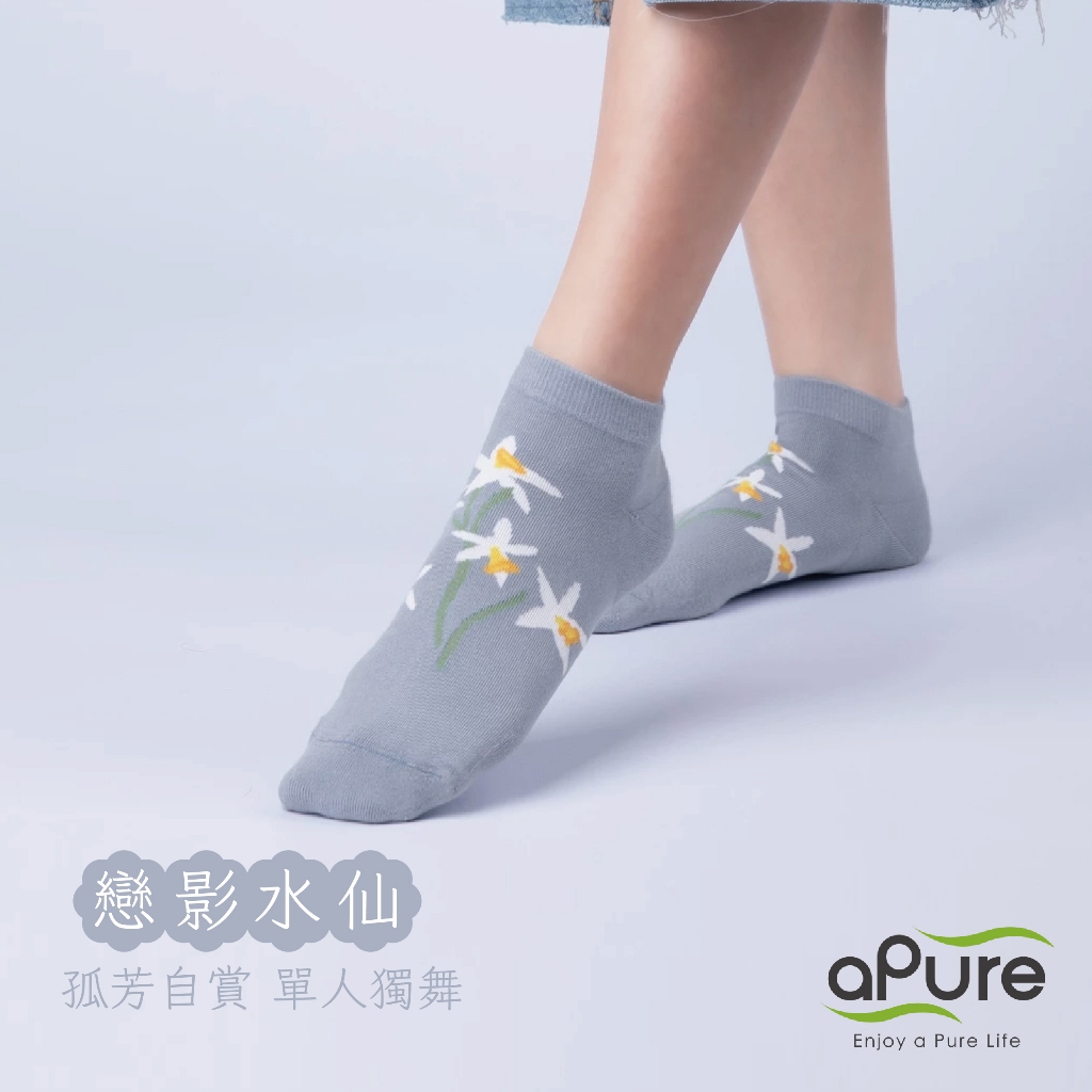【aPure】除臭襪-戀影水仙(孤芳自賞)-船型櫻粉,M 22-25cm|翡藍,M 22-25cm|藍灰,M 22-25cmSocksPureSocks 機能性纖維領導品牌– enjoy a Pure life