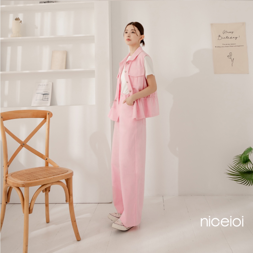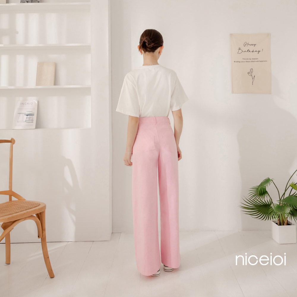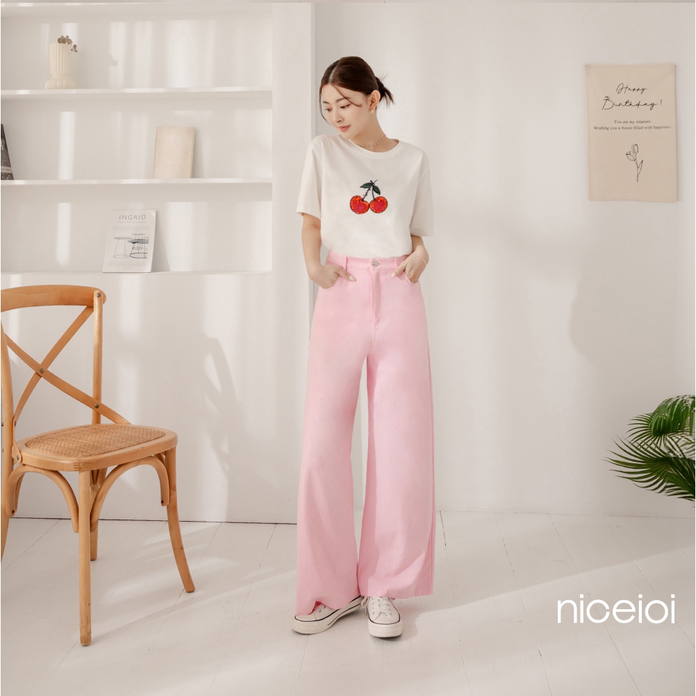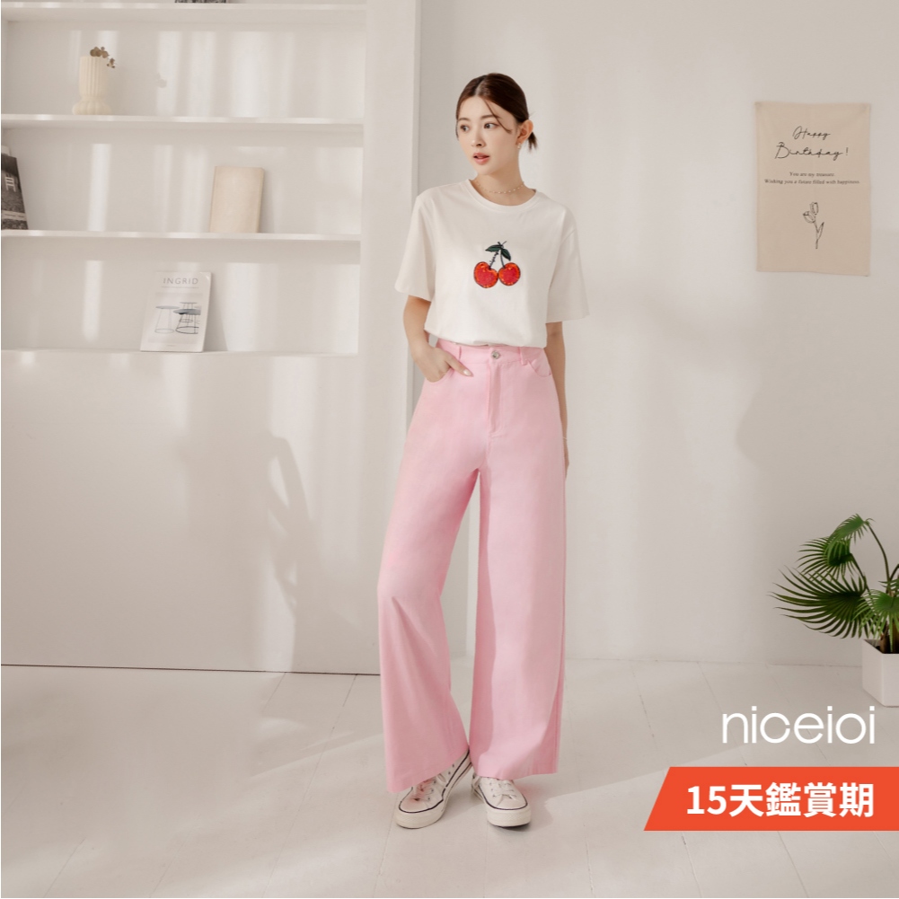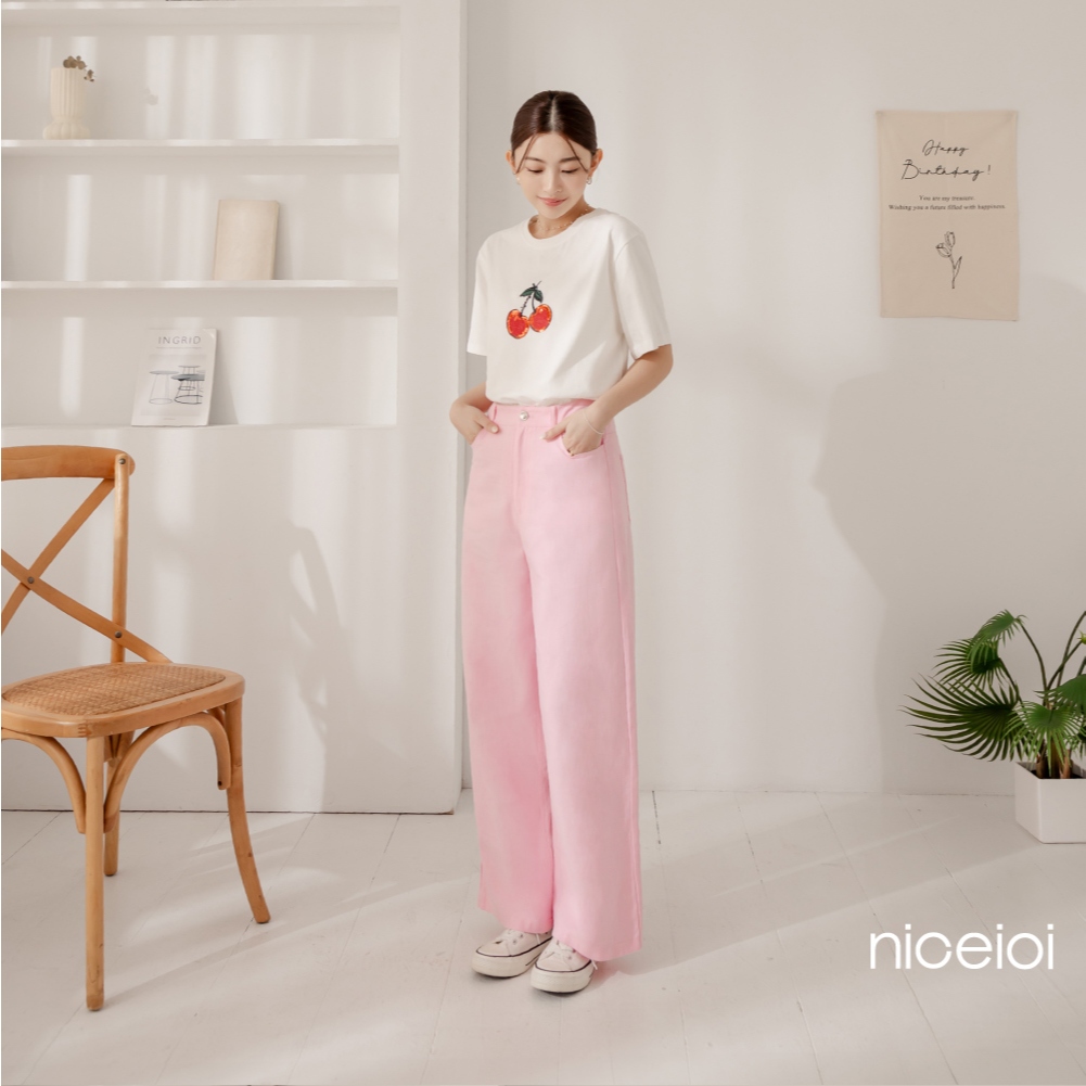niceioi【特惠】柔美銀釦十字紋純棉寬褲 女裝粉,L|粉,S|粉,MPantsniceioi 官方旗艦店