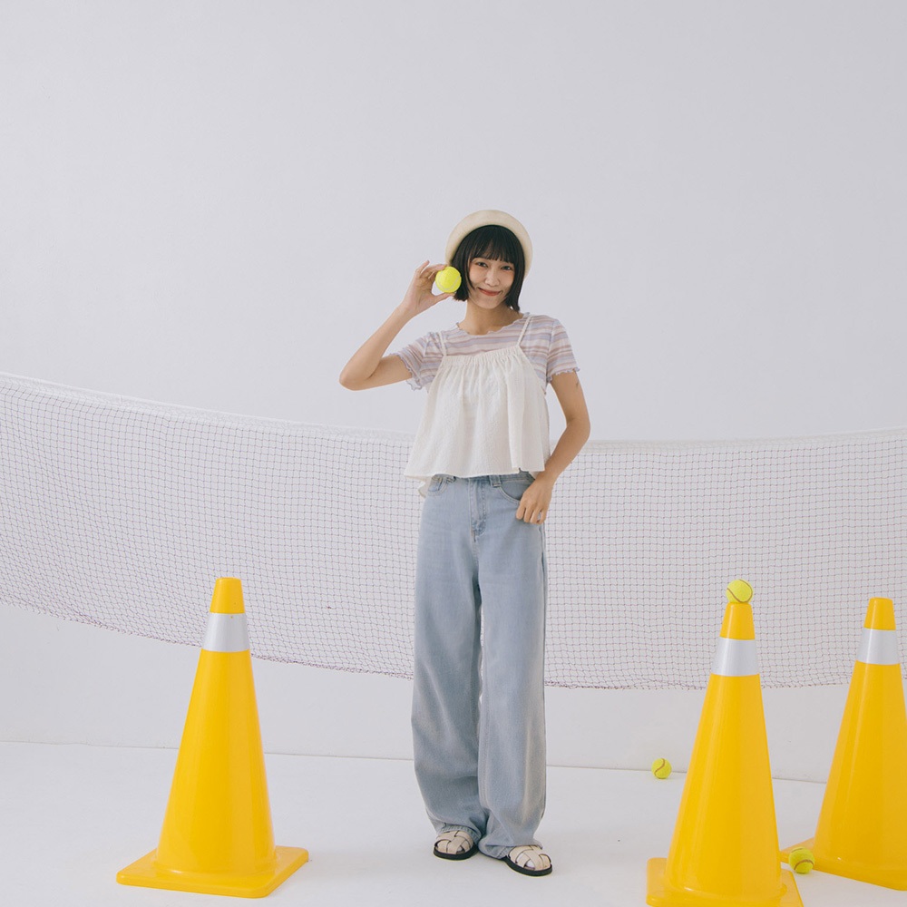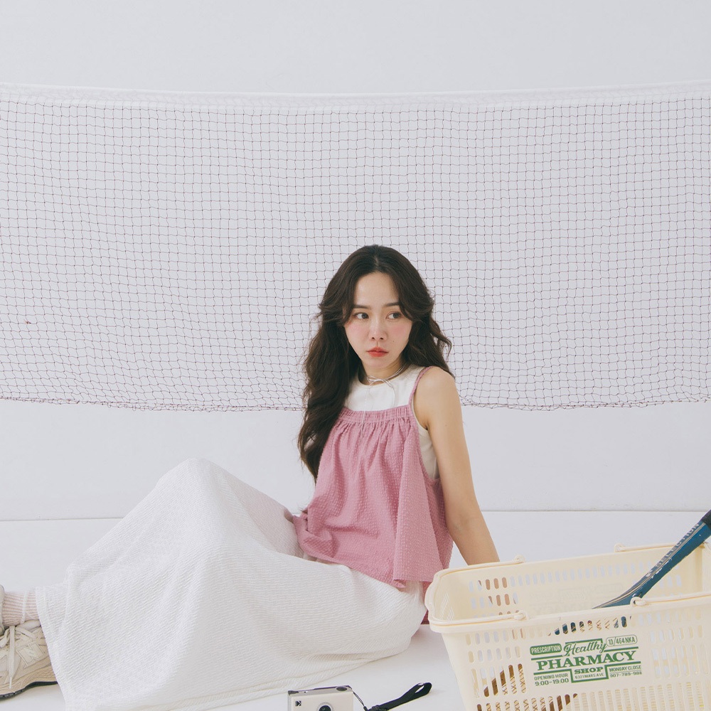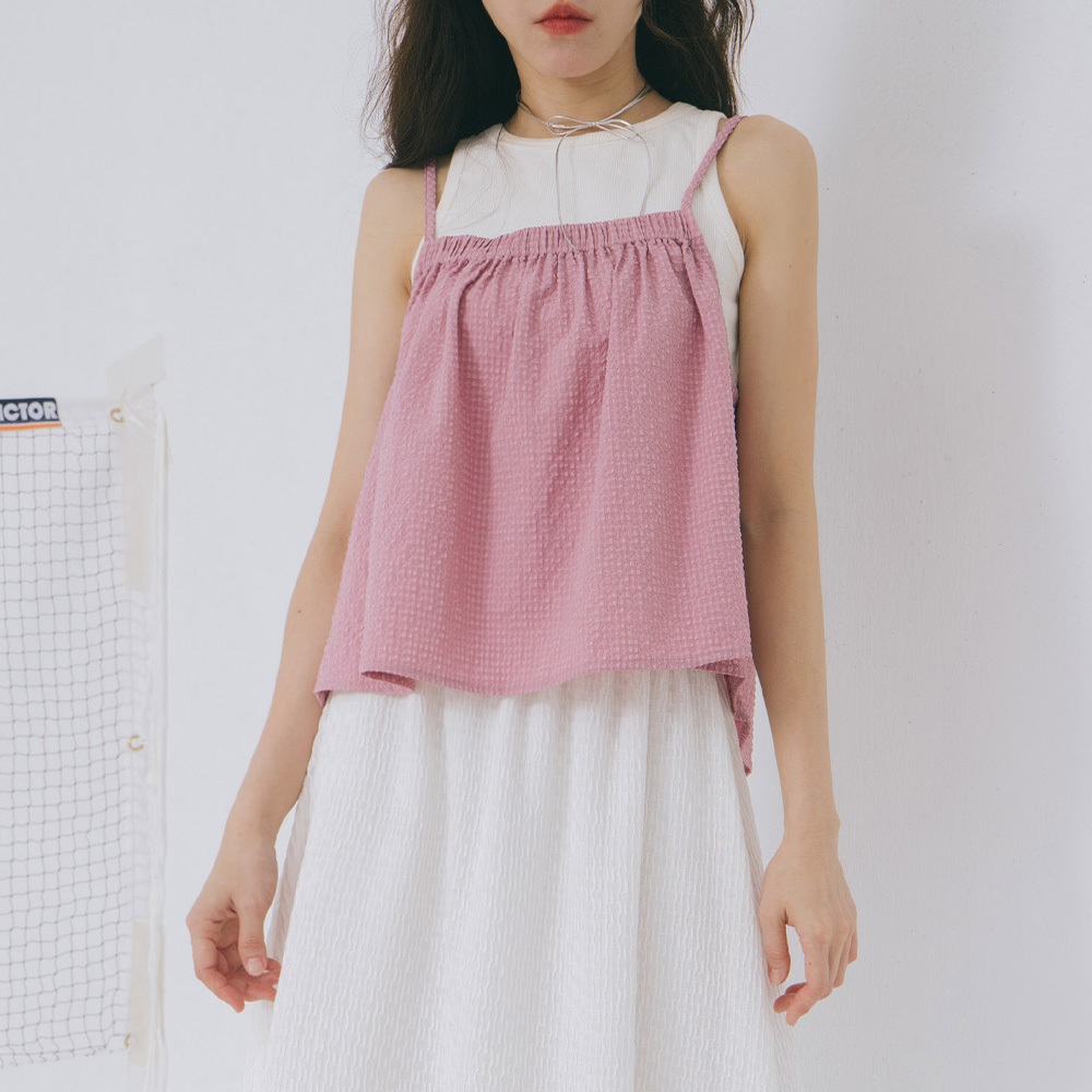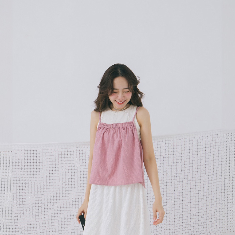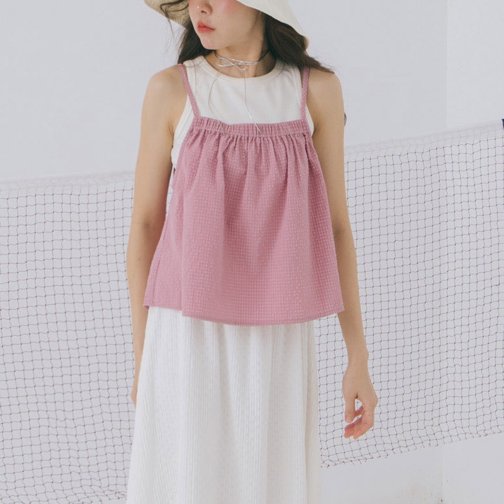 QUEENSHOP_ S 女裝 立體格紋紋理細肩傘擺背心 兩色售 現+預 【01099053】粉|米白Tanks & CamisolesQUEENSHOP