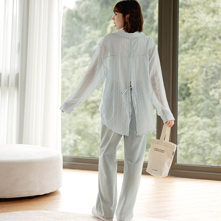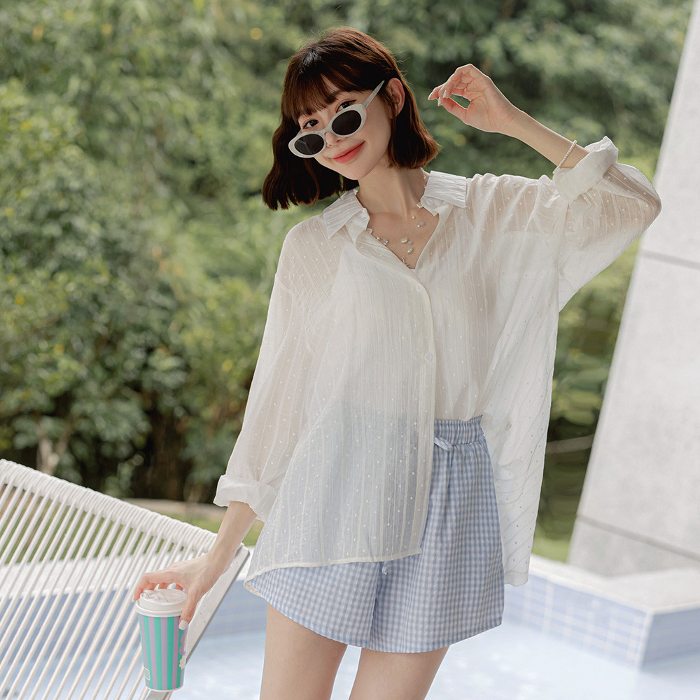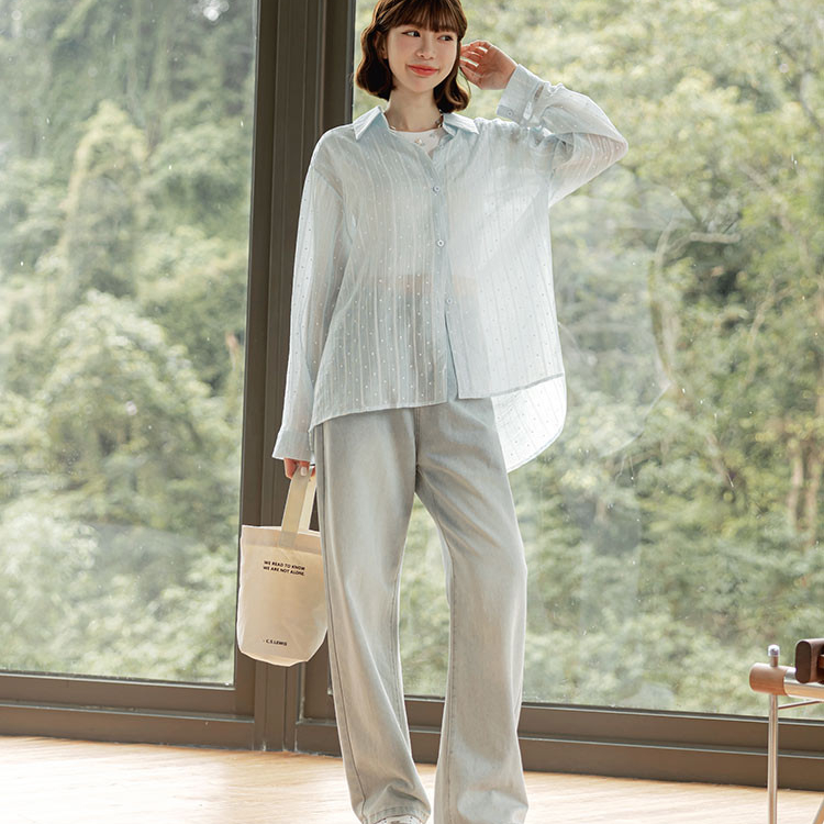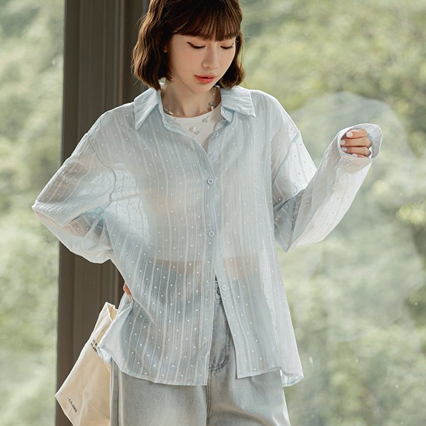 OB嚴選 微透膚點點織紋後開衩綁帶寬版襯衫罩衫 《AB20482》大尺碼/女裝/現貨白,F|白,XL|白,3L|淺水藍,F|淺水藍,XL|淺水藍,3LShirts & BlousesOB嚴選官方旗艦店