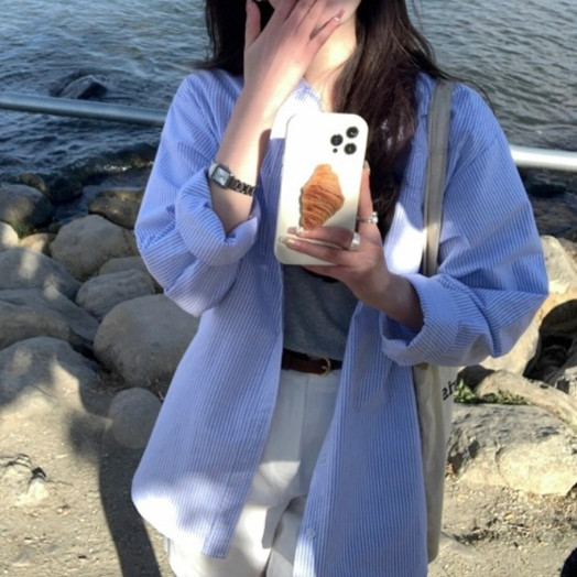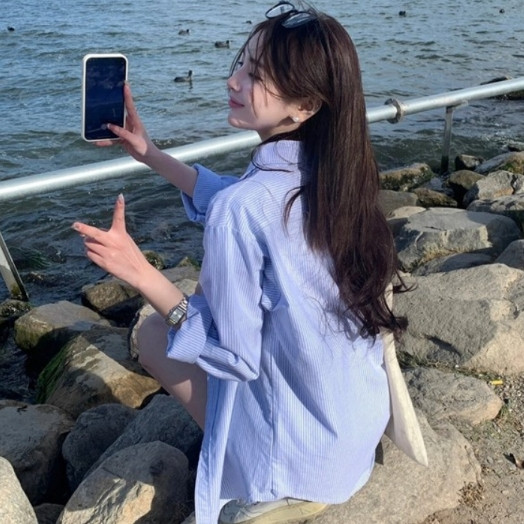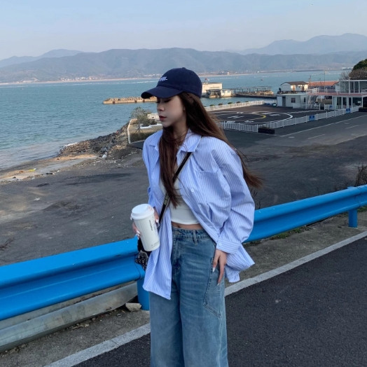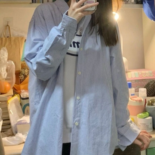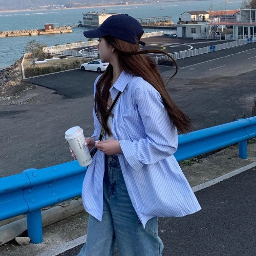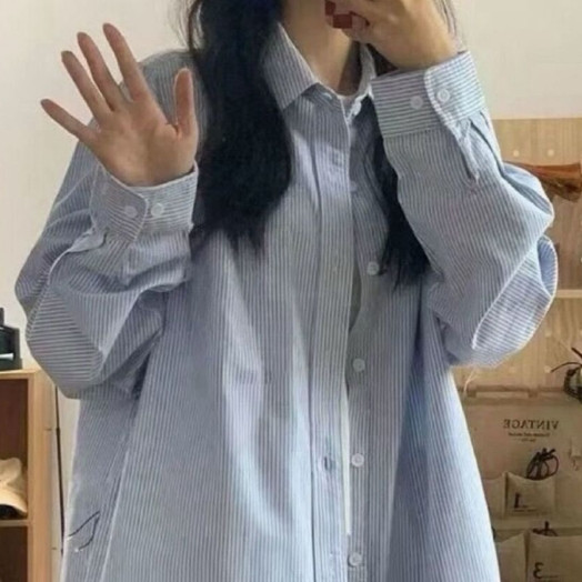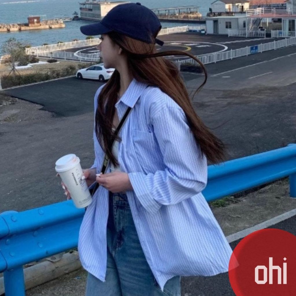 【ohi】條紋襯衫上衣外套 寬鬆設計感 長袖襯衫 學院風襯衫女 女生襯衫 襯衣 襯衫 上衣 女裝 GSN2361圖片色,M|圖片色,L|圖片色,XL|圖片色,2XLShirts & BlousesOHI衣著
