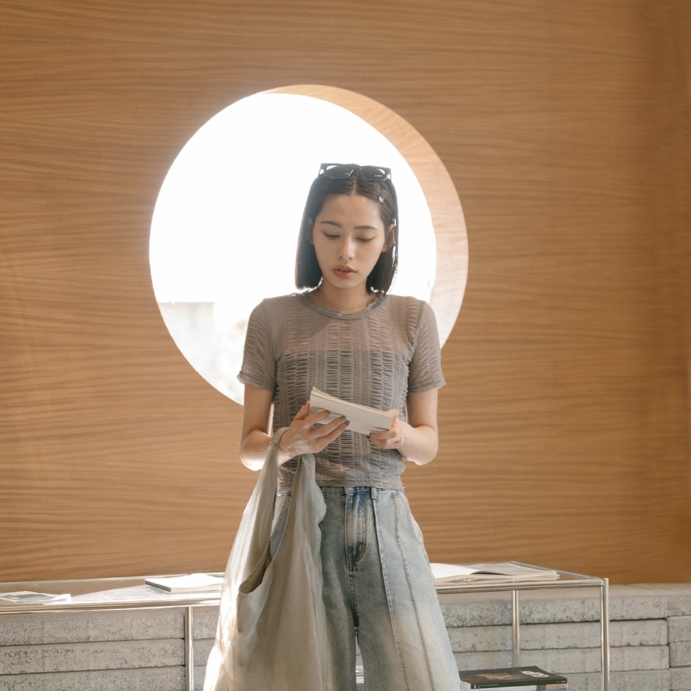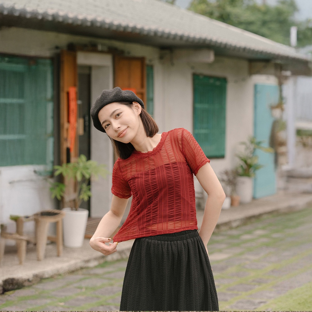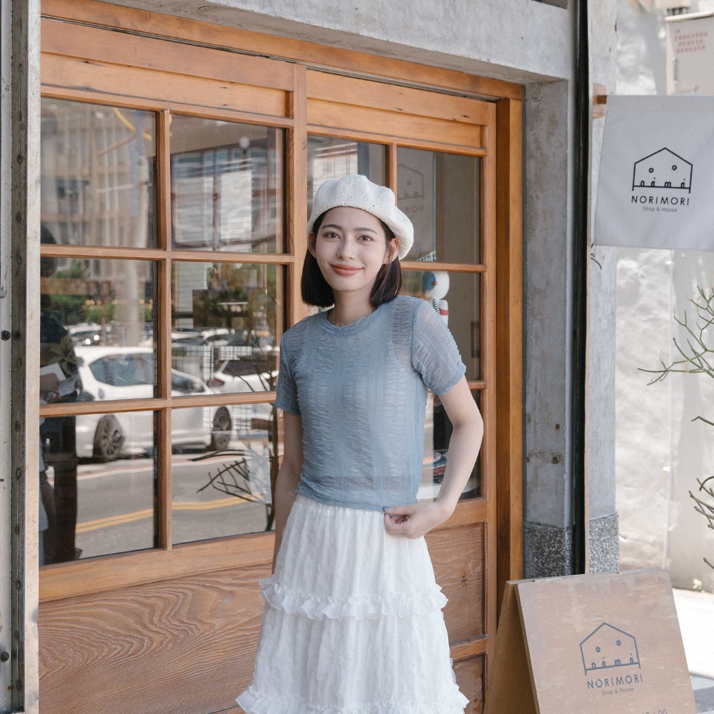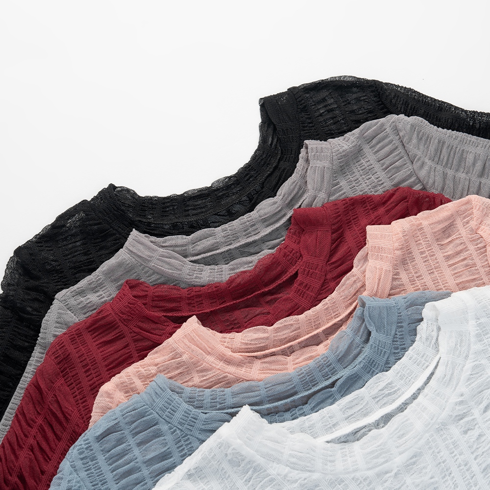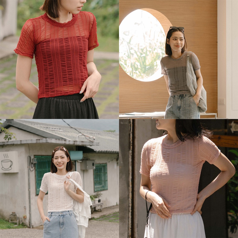 QUEENSHOP_ S 女裝 多色皺皺透膚網紗短袖上衣 六色售 現+預 【01098782】黑|灰|白|粉|藍|酒紅OthersQUEENSHOP