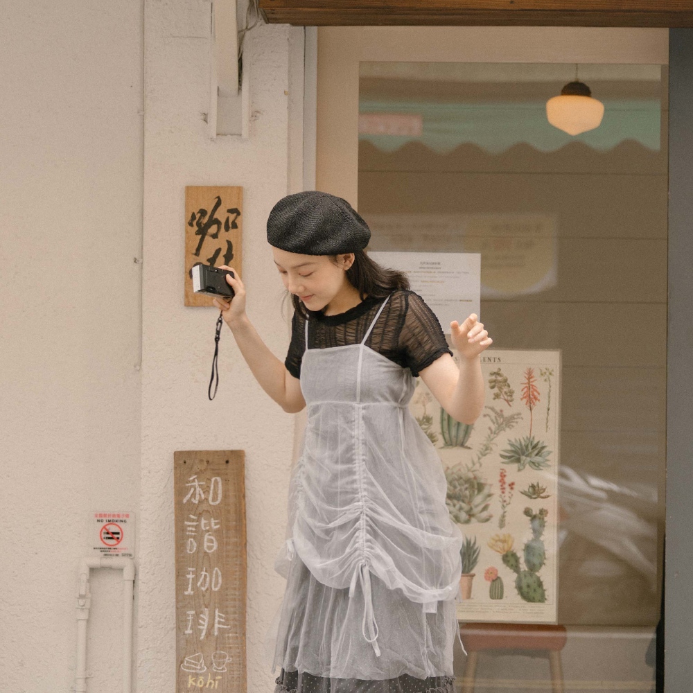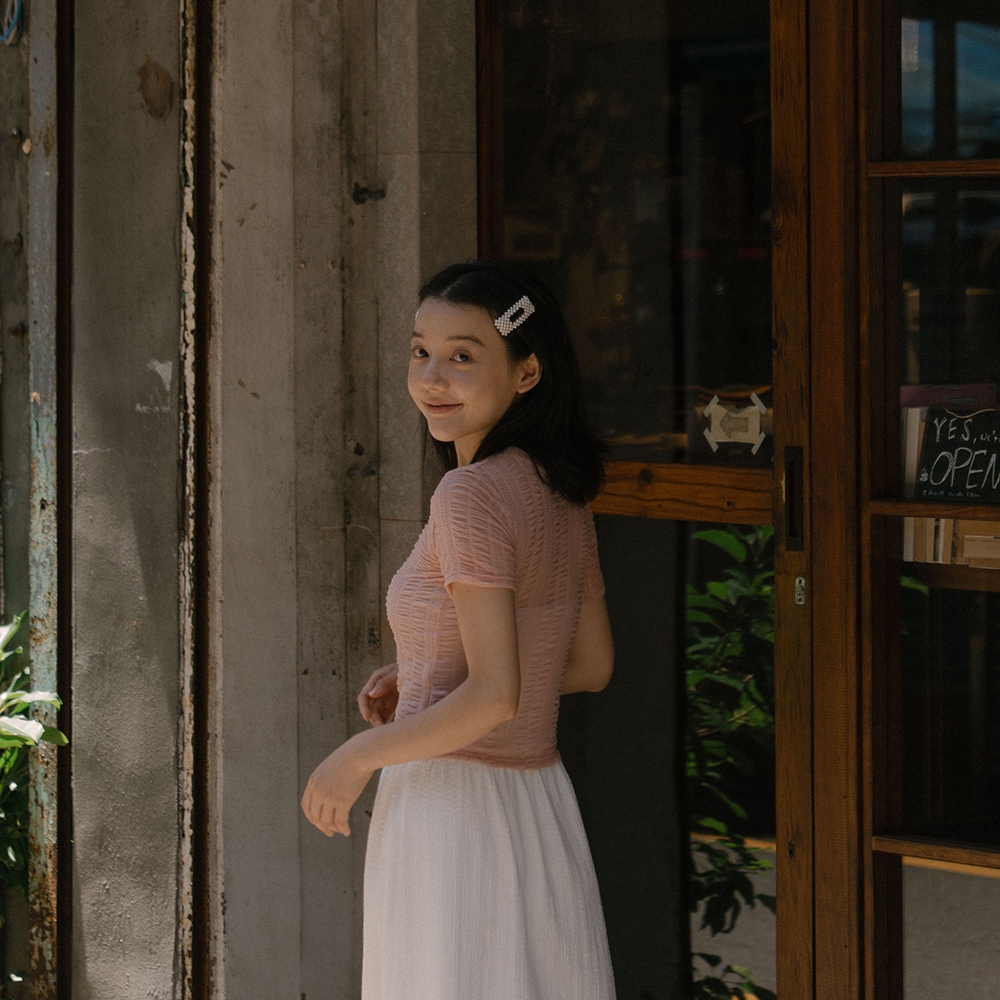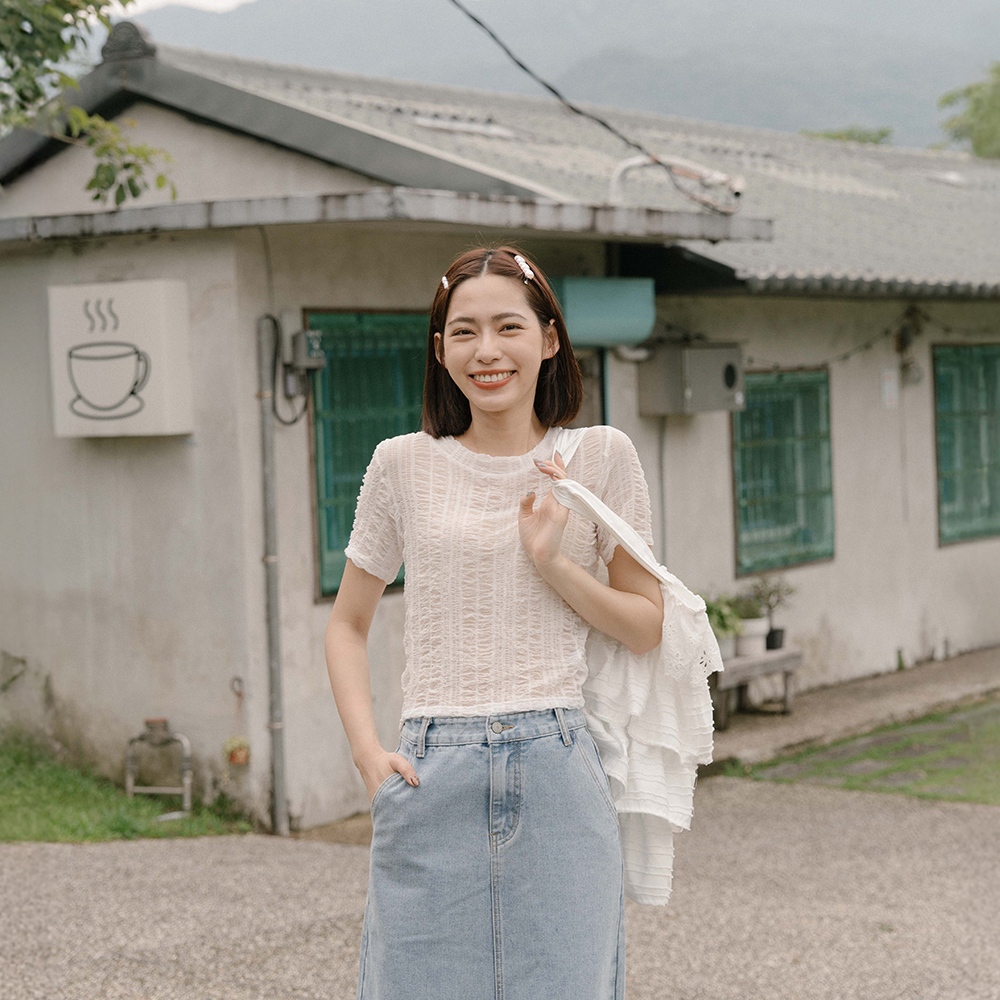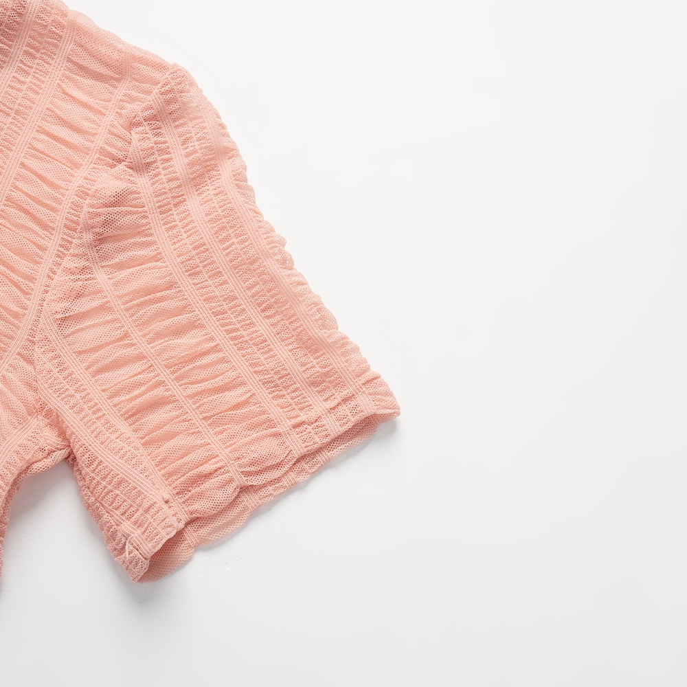 QUEENSHOP_ S 女裝 多色皺皺透膚網紗短袖上衣 六色售 現+預 【01098782】