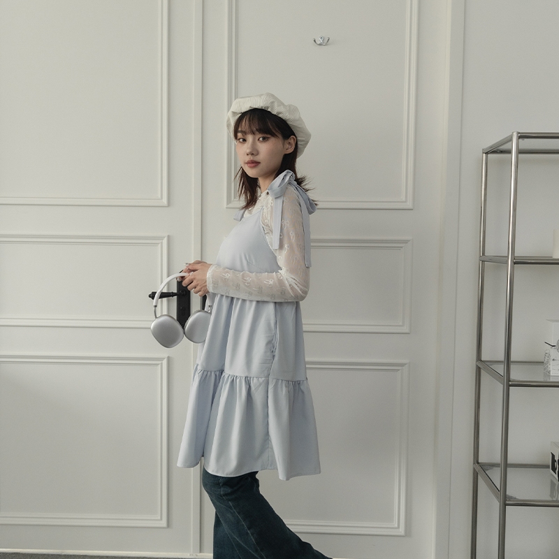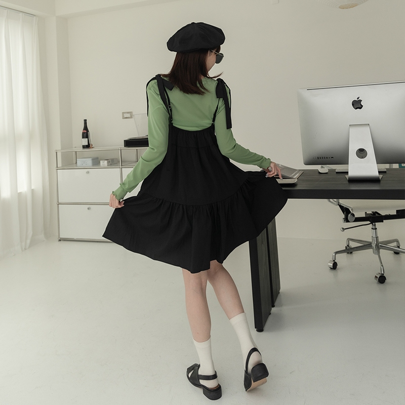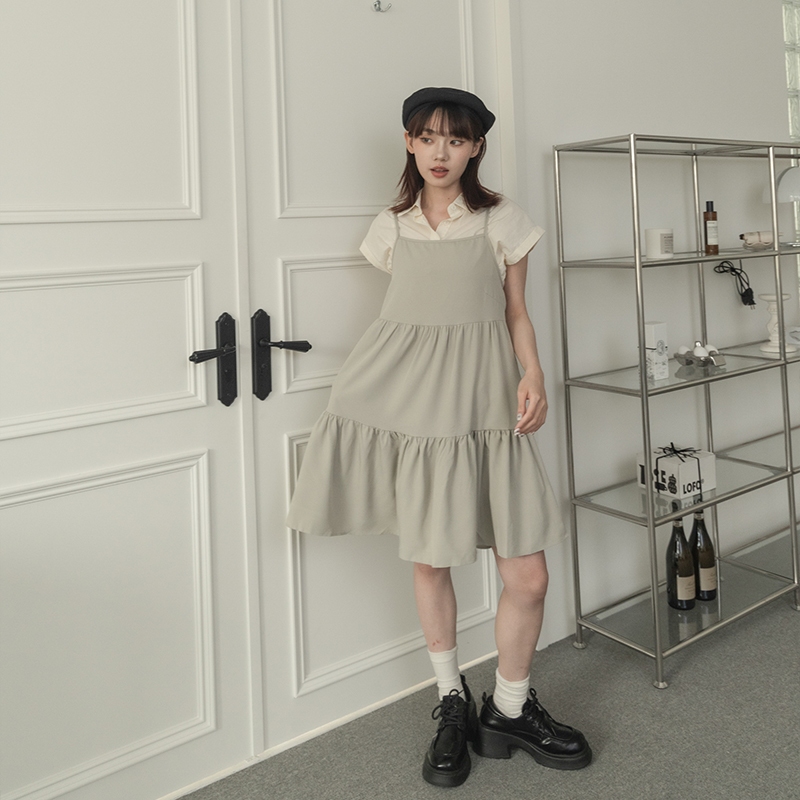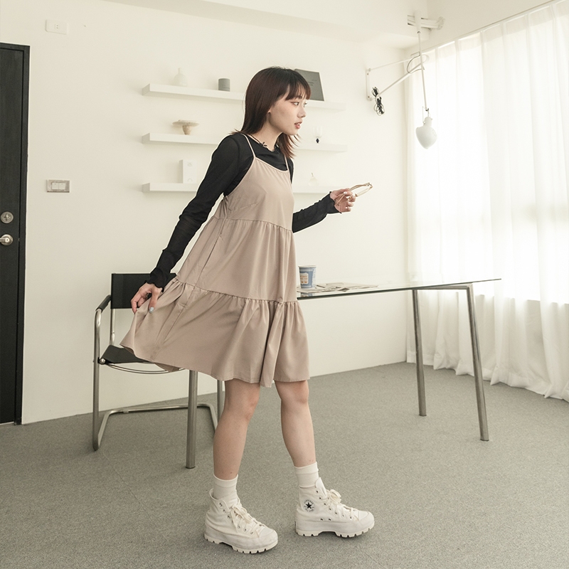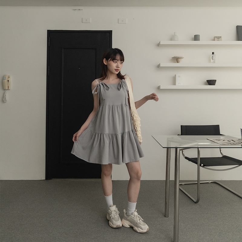 Space Picnic|細肩蛋糕短洋裝-5色【C24041063】黑|淺灰|奶茶|淺藍|奶綠Space Picnic