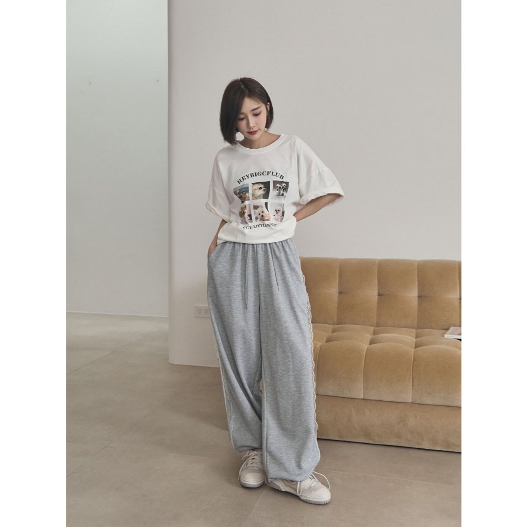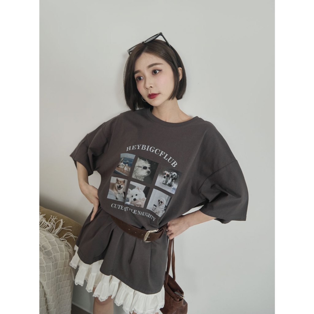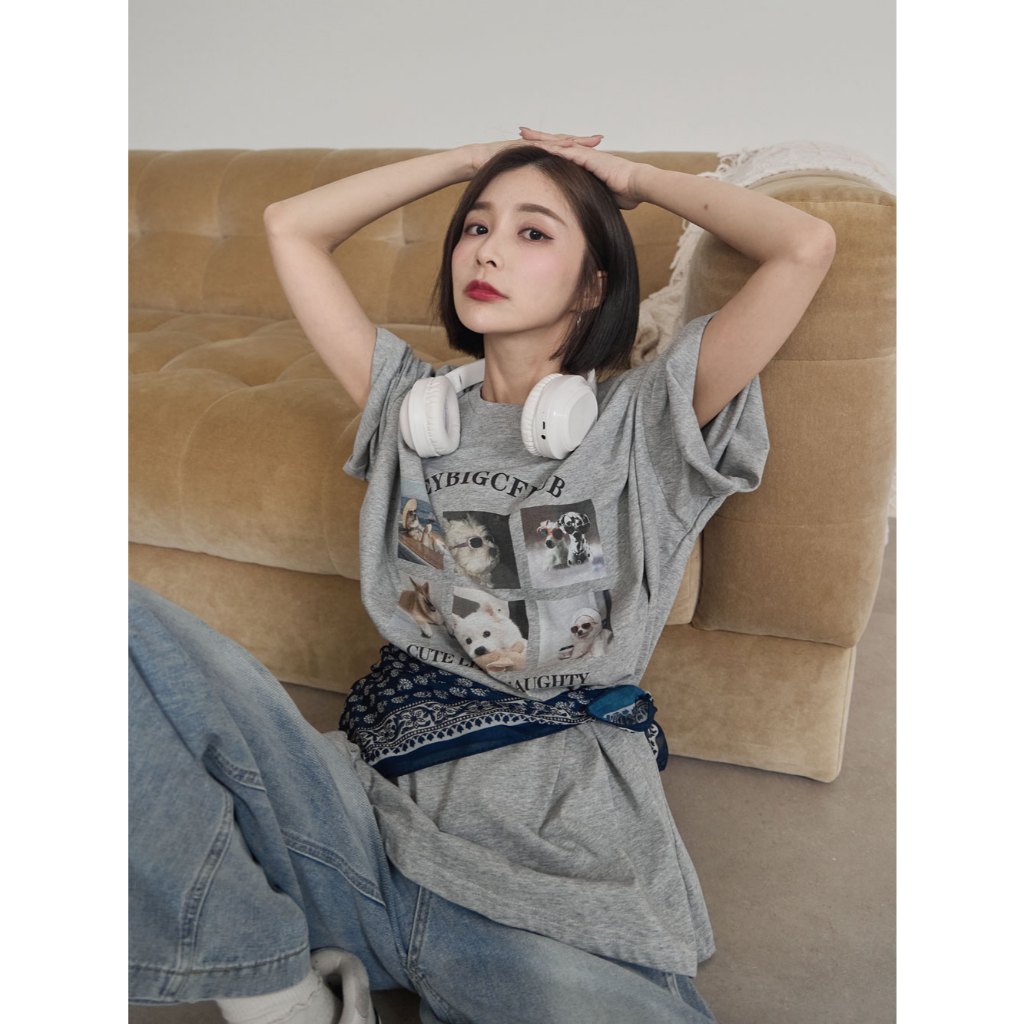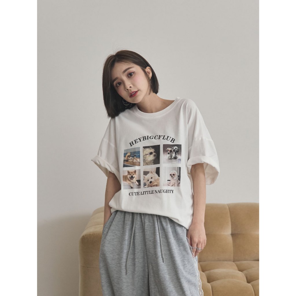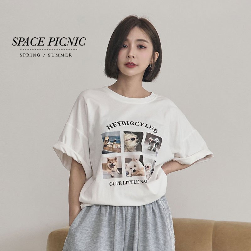 Space Picnic|可愛狗狗印圖寬鬆Tee-3色【2506335】白|深灰|花灰T-shirtsSpace Picnic