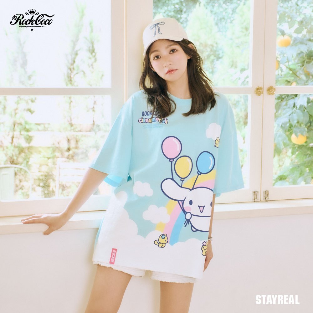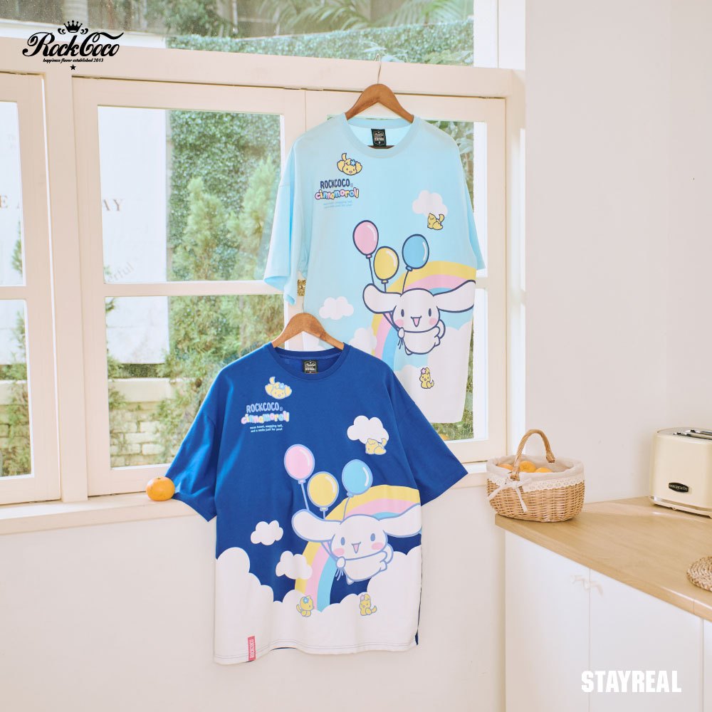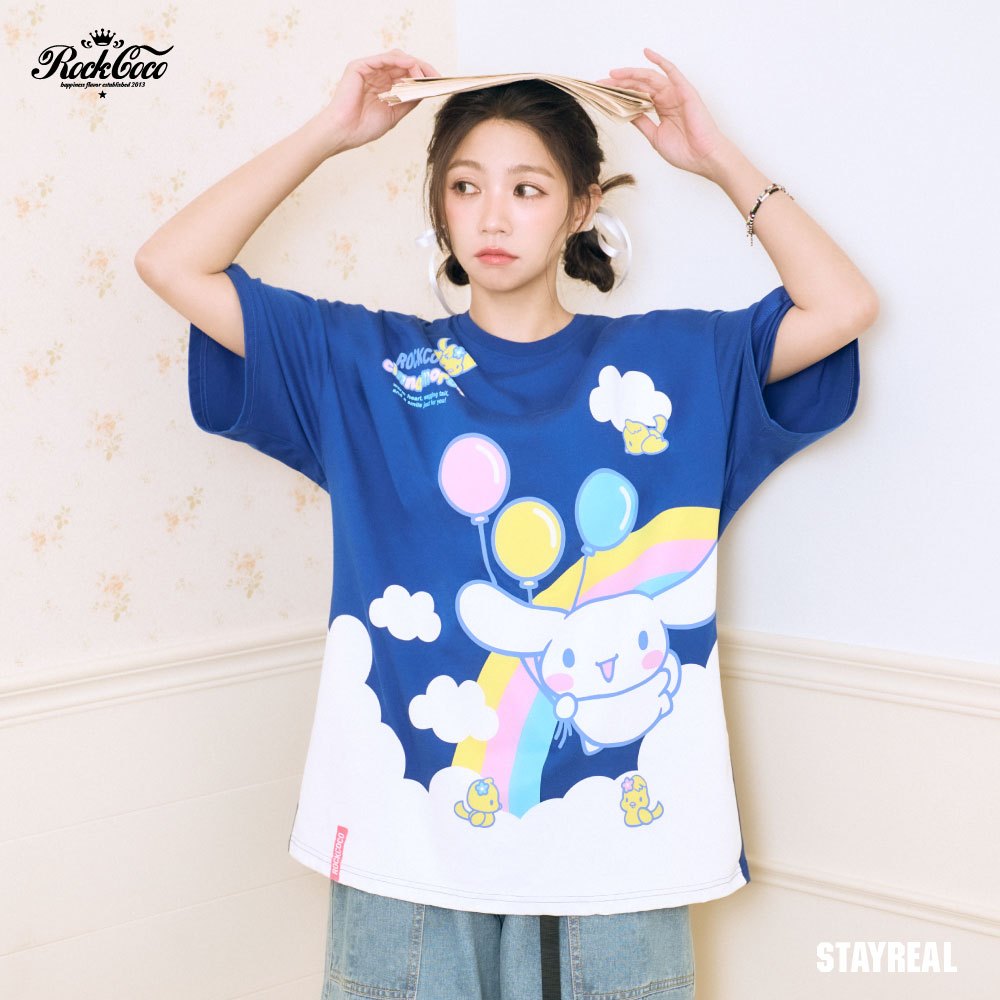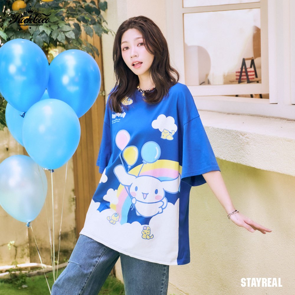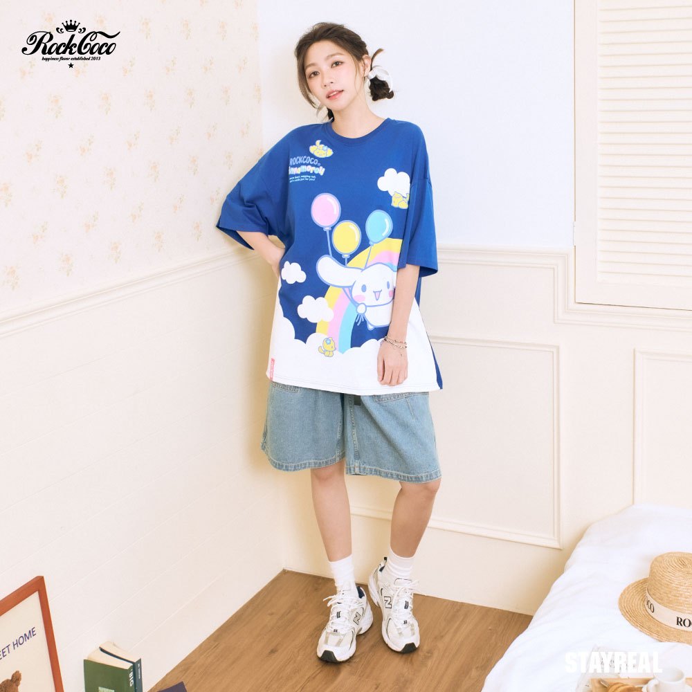 ROCKCOCO x Cinnamoroll 大耳狗喜拿寬版T淺藍|寶藍T-shirtsSTAYREAL官方直營