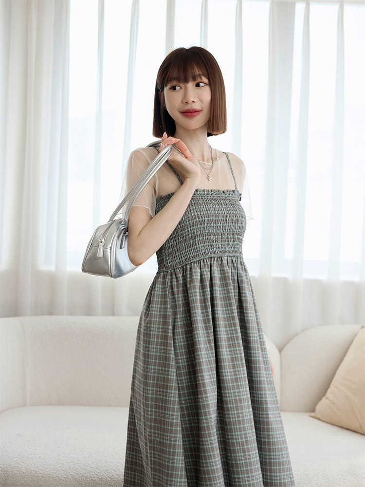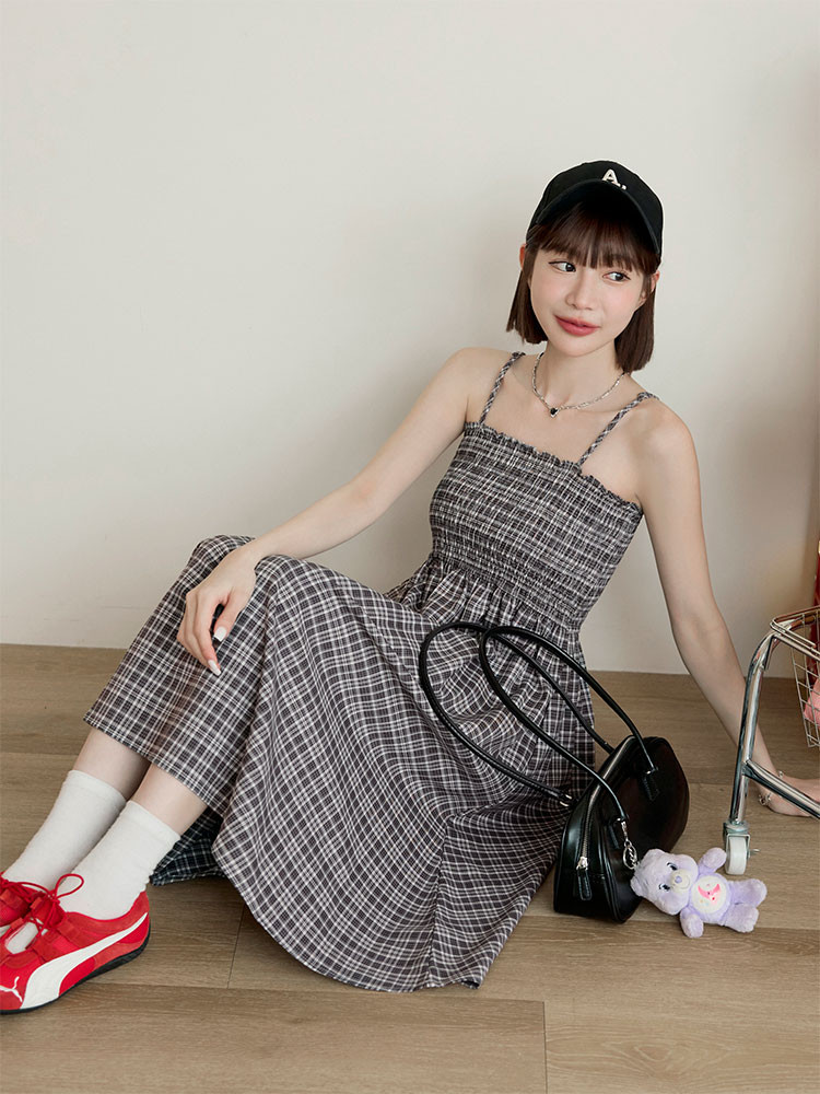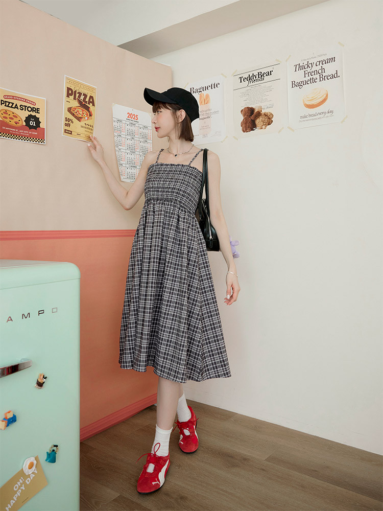 OB嚴選 簡約格紋鬆緊細肩帶連身洋裝 《DA10473》咖啡,M|咖啡,L|咖啡,XL|咖啡,2L|咖啡,3L|黑,M|黑,L|黑,XL|黑,2L|黑,3LOB嚴選官方旗艦店