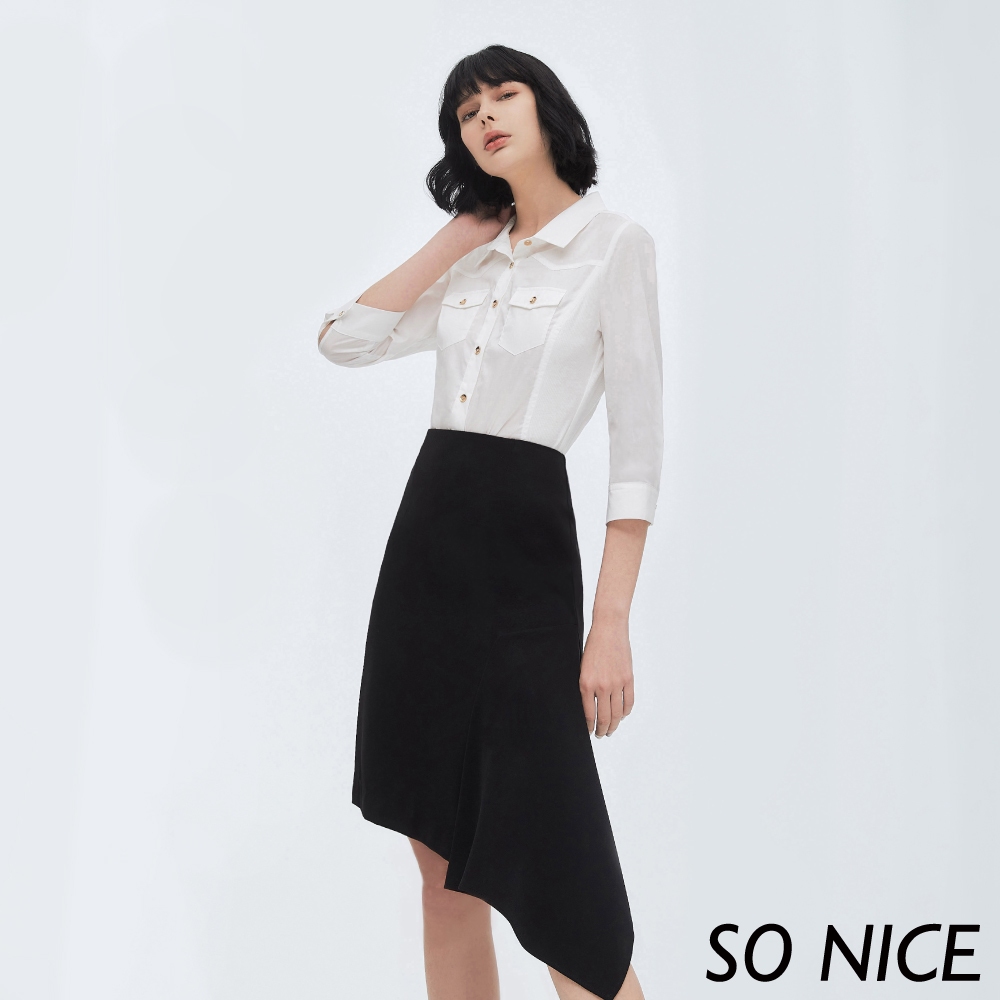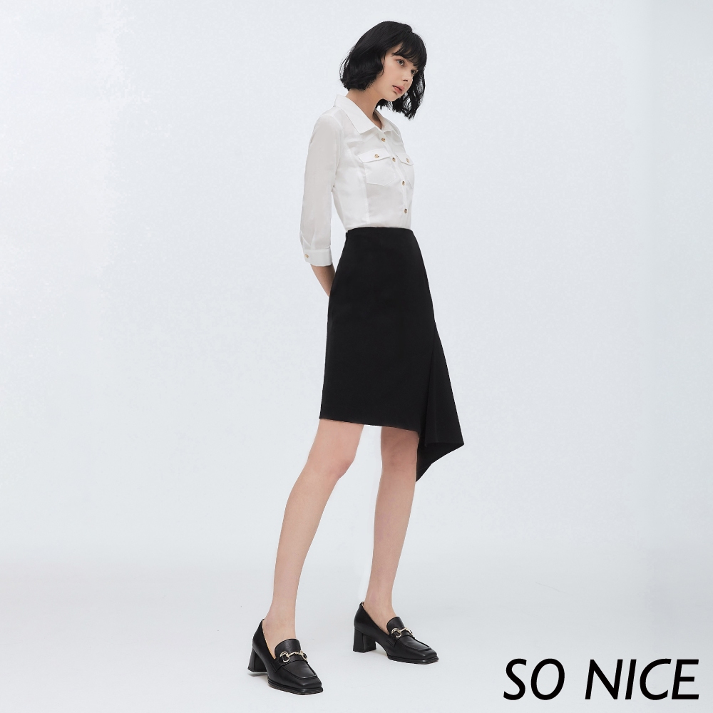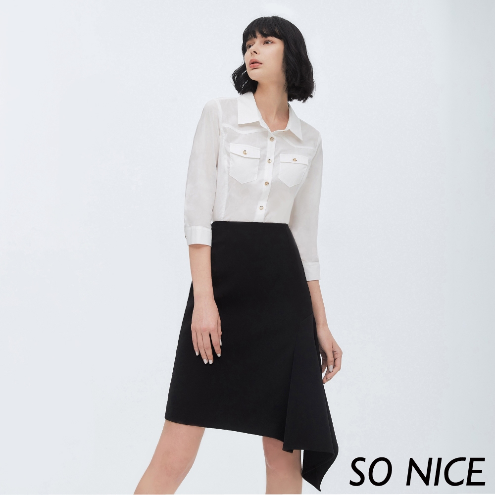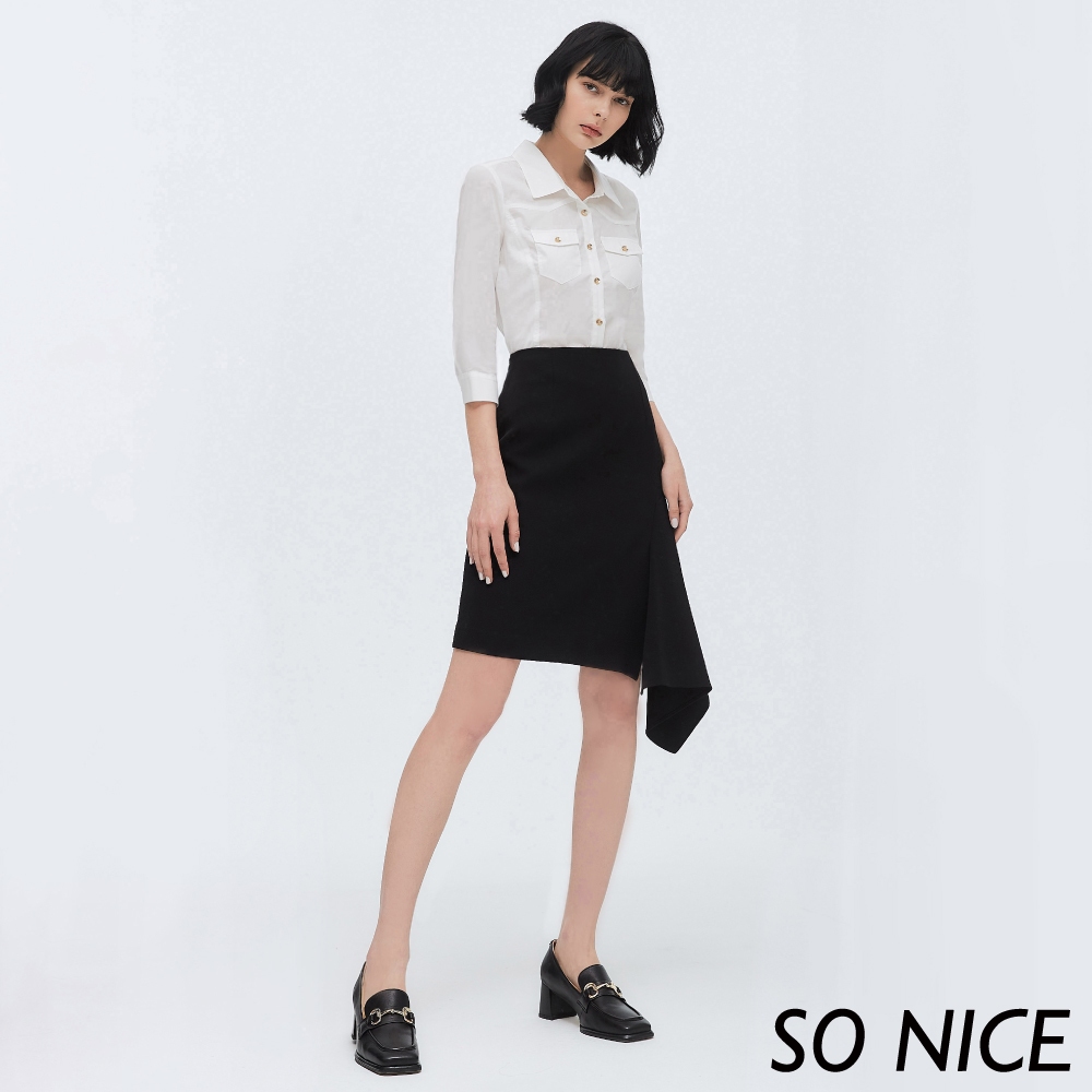 SO NICE【特惠】不對稱剪接荷葉窄裙|都會時尚女裝【29333005】黑,38(M)|黑,40(L)|黑,34(XS)|黑,36(S)SO NICE 官方旗艦店