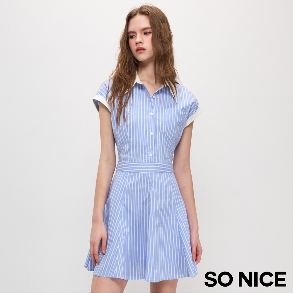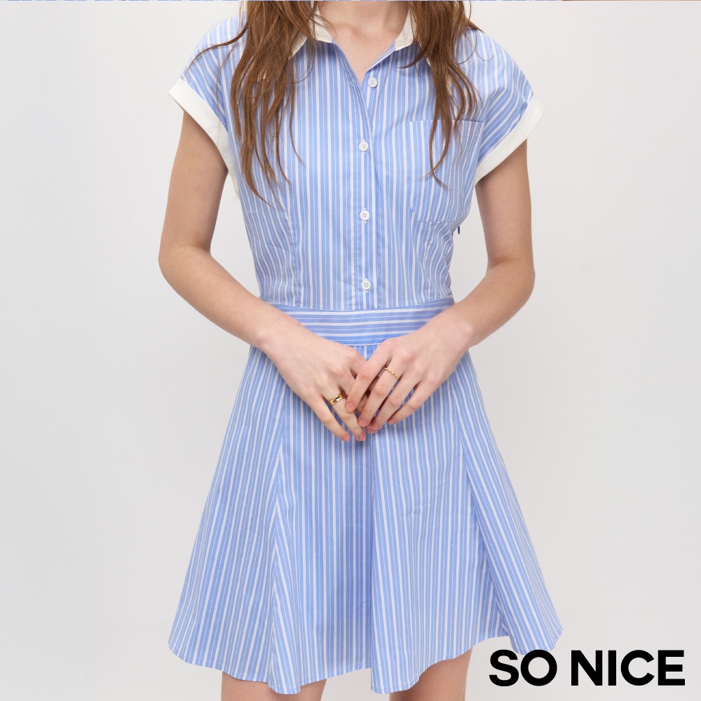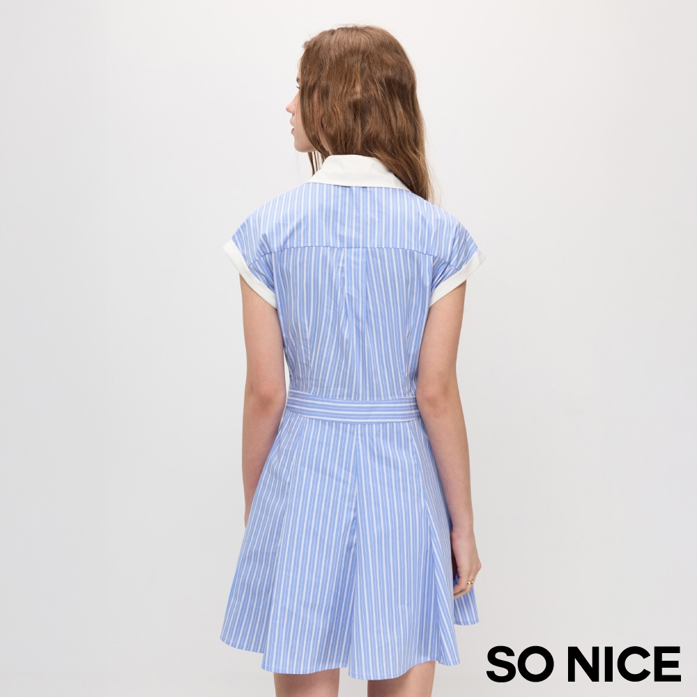 SO NICE 撞色襯衫領小蓋袖收腰八片切線傘裙|STAR|都會時尚女裝【5853F016】條紋,36(S)|條紋,38(M)|條紋,40(L)|條紋,42(XL)|條紋,34(XS)SO NICE 官方旗艦店