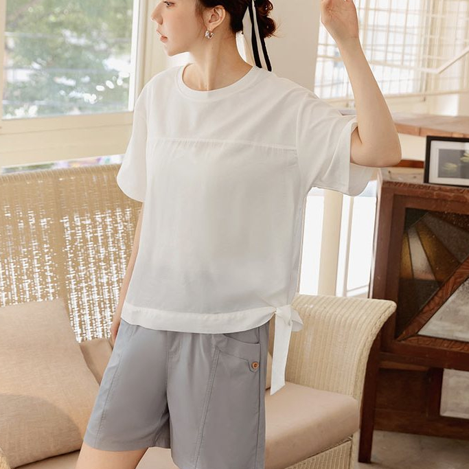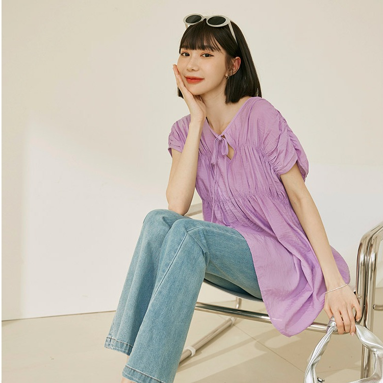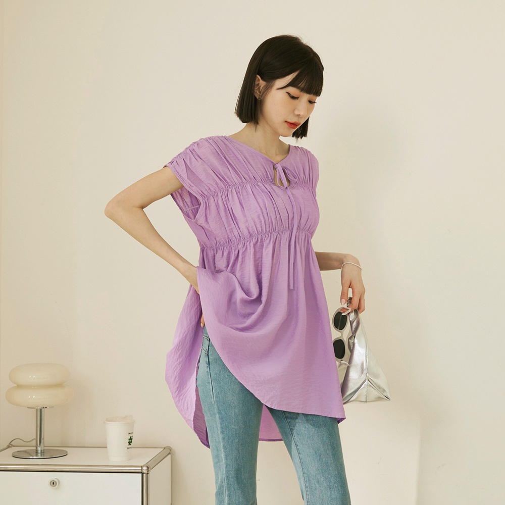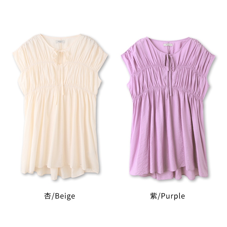 OB嚴選 層次抓皺綁帶連袖長版上衣 《AB18640》女裝/現貨/時髦紫,3L|杏,L|杏,XL|紫,L|紫,XL|紫,2L|杏,M|杏,2L|杏,3L|紫,MT-shirtsOB嚴選官方旗艦店