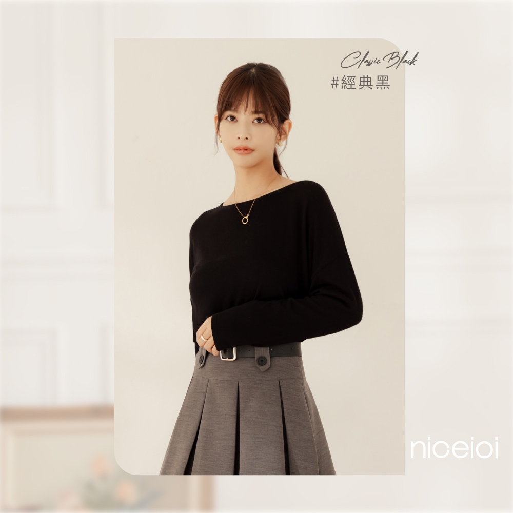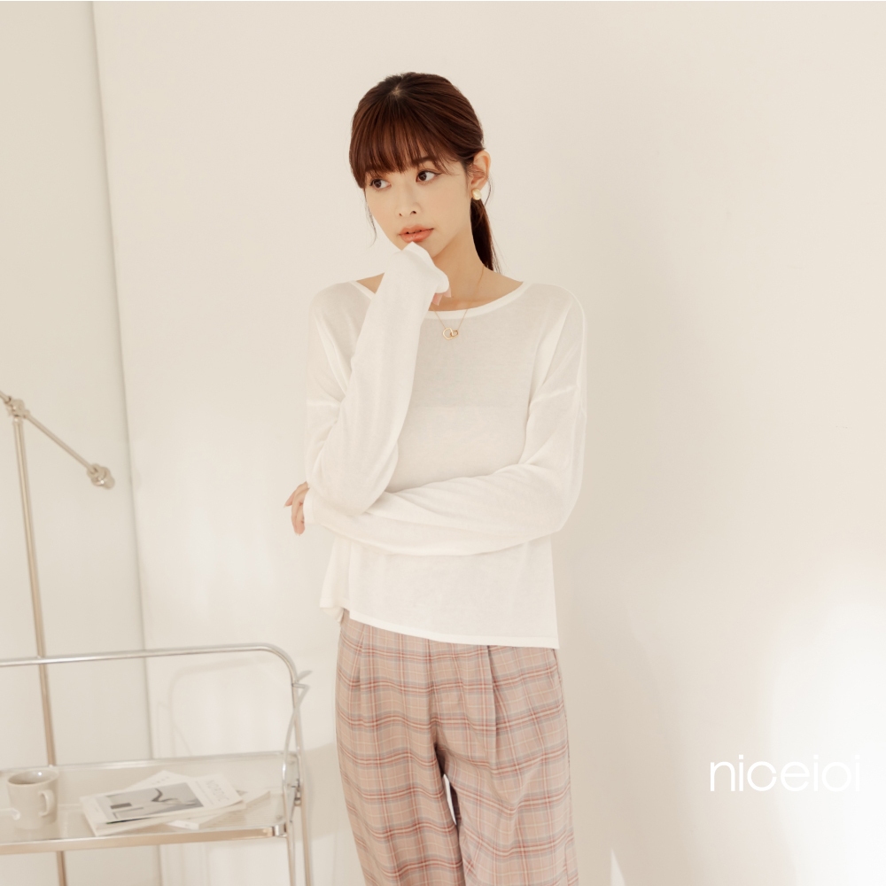niceioi【特惠】微落肩慵懶感針織上衣 (白/黑/藍) 圓領 長袖 短毛針織 落肩上衣 女裝白,S|黑,S|黑,L|藍,M|藍,L|白,M|白,L|黑,M|藍,Sniceioi 官方旗艦店