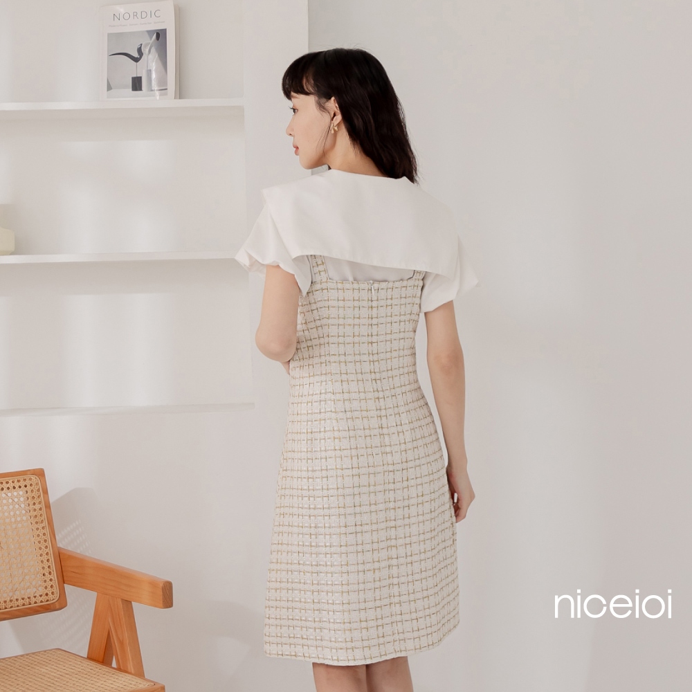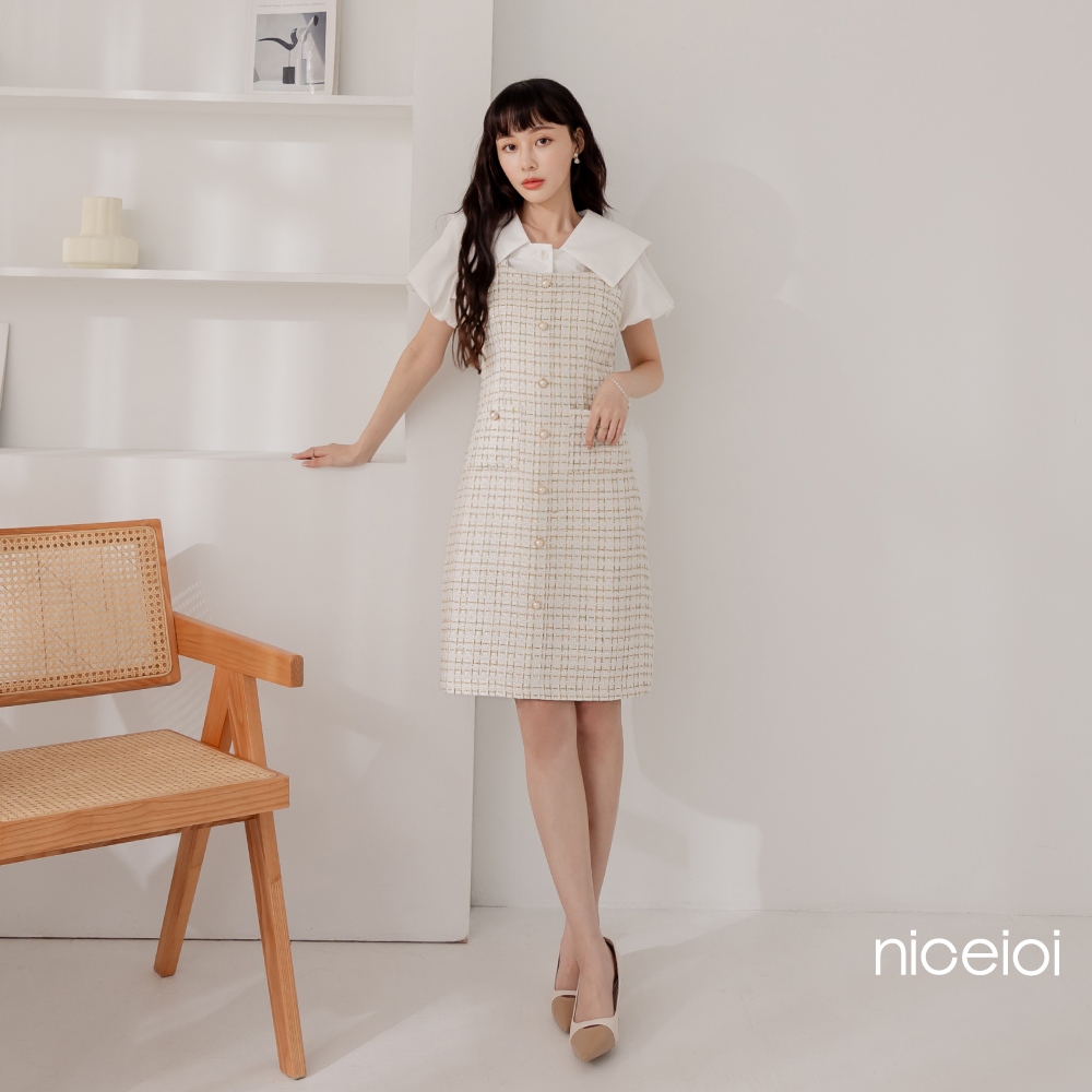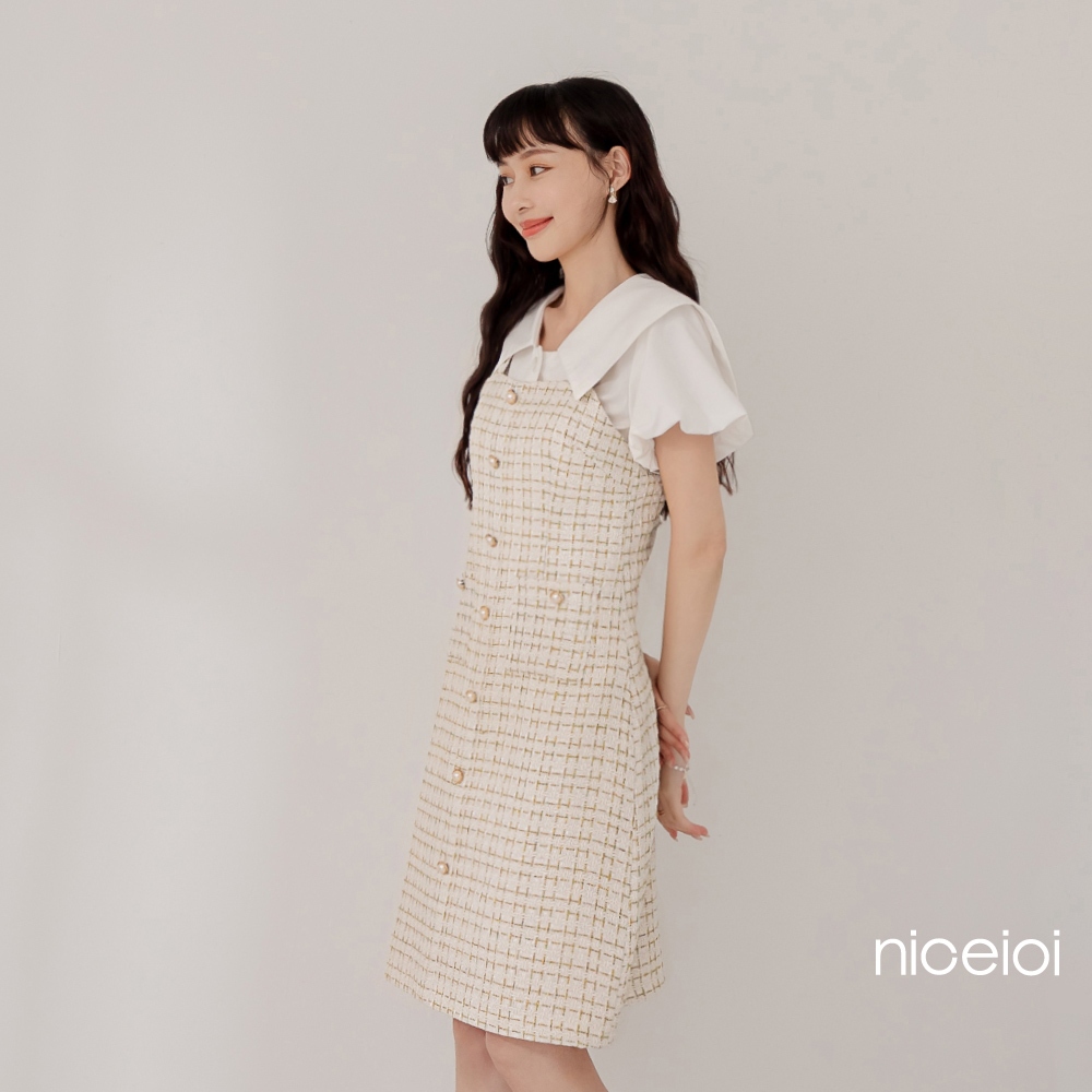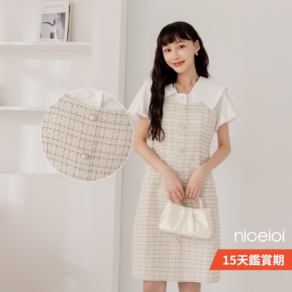 niceioi【特惠】奢華金絲小香排釦洋裝 大尺碼洋裝 女裝米,S|米,M|米,L|米,XLniceioi 官方旗艦店