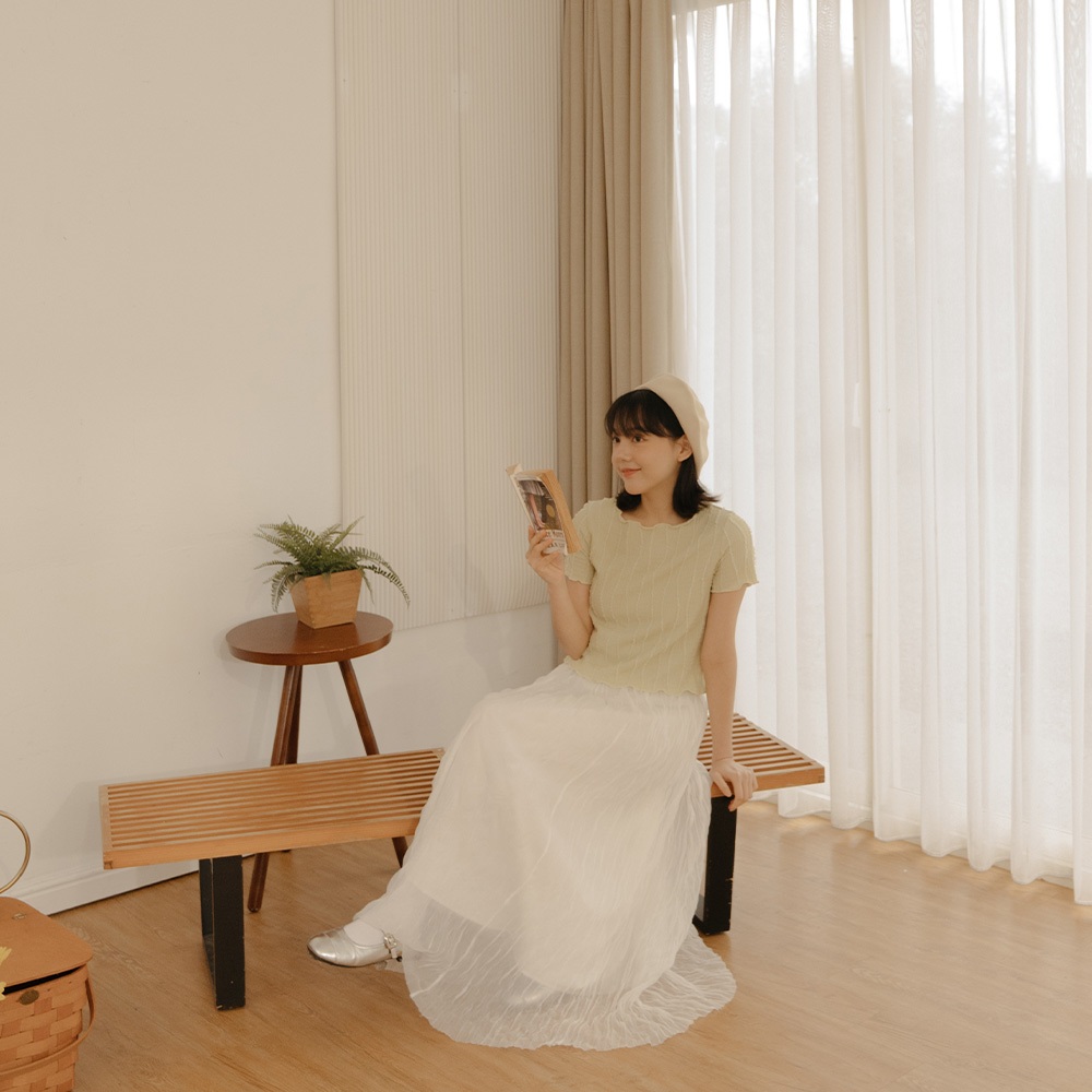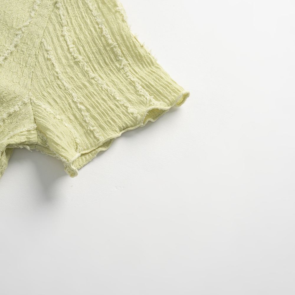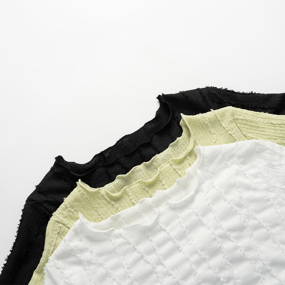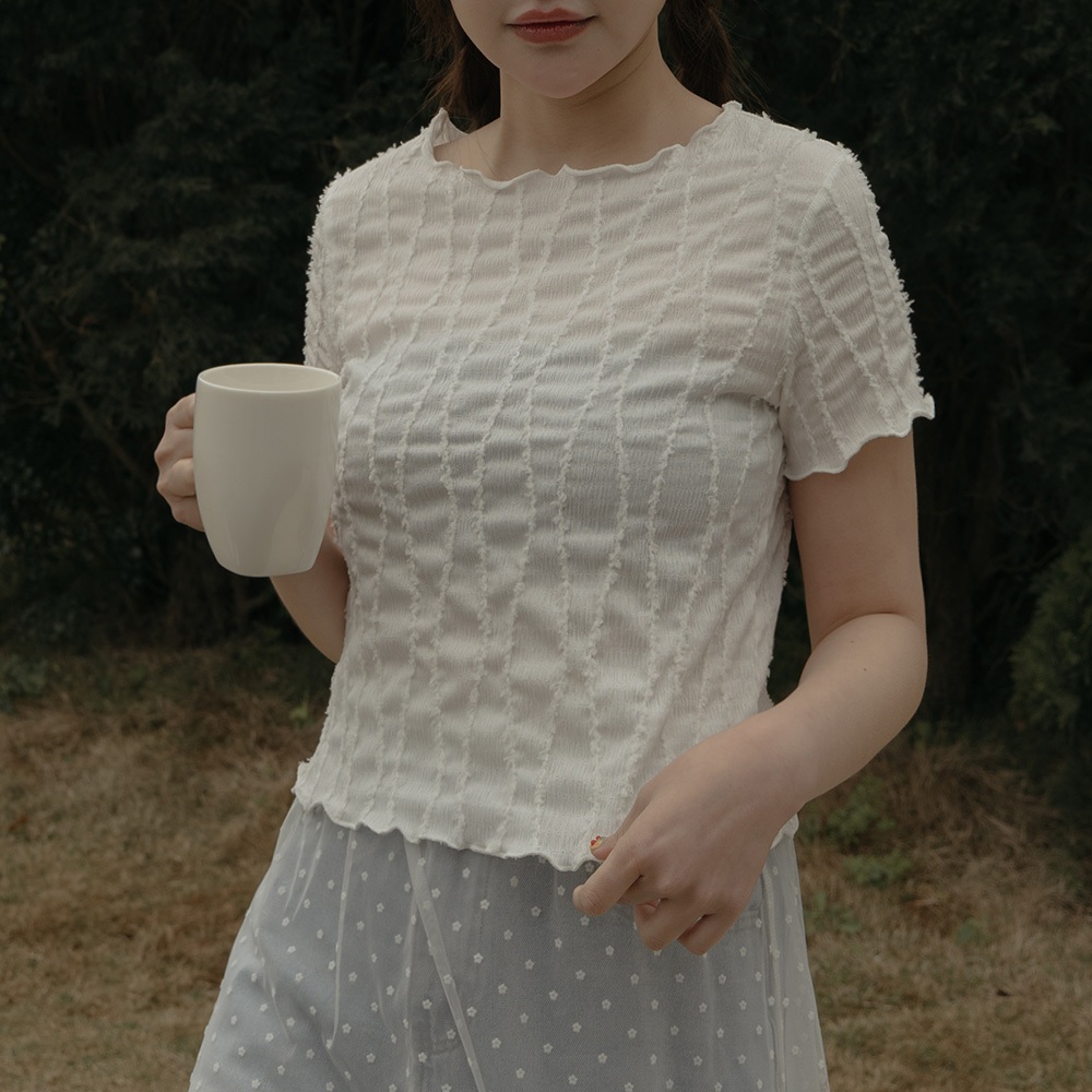 QUEENSHOP_ S 女裝 短袖 波浪羽毛緹花木耳上衣 三色售 現+預 【01098886】綠|米白OthersQUEENSHOP