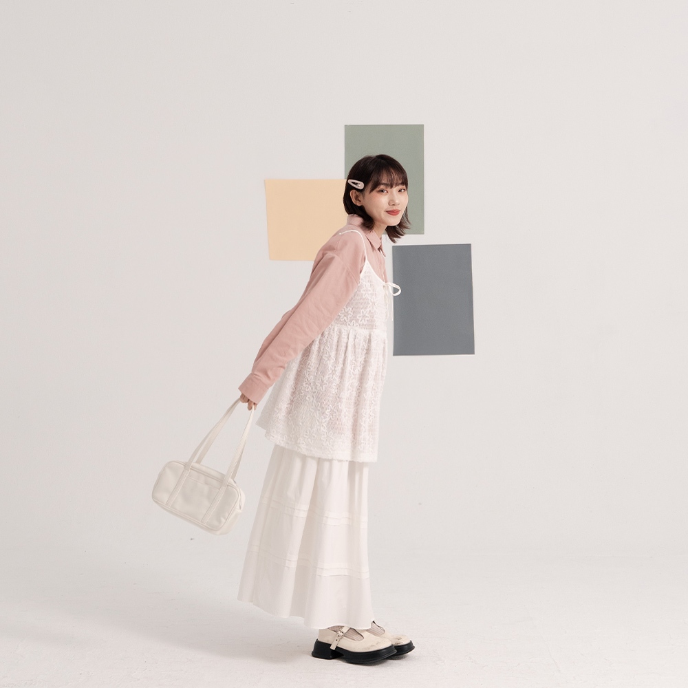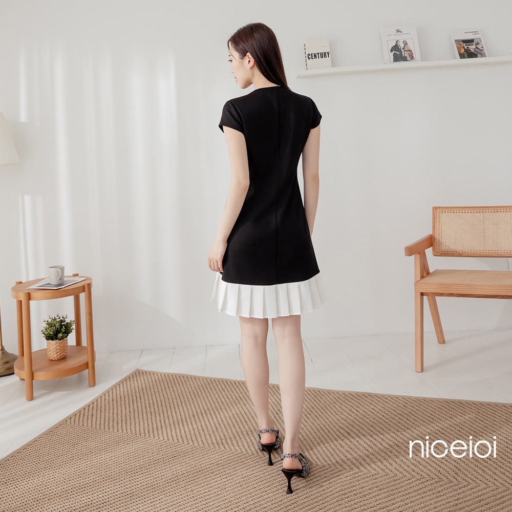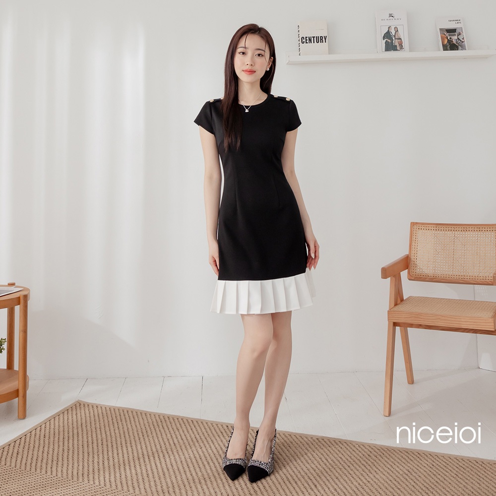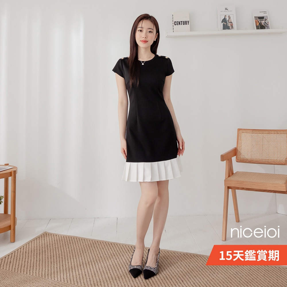 niceioi 酷甜女伶肩排釦撞色下百褶空氣棉魚尾短洋裝 女裝黑,L|黑,XL|黑,S|黑,Mniceioi 官方旗艦店