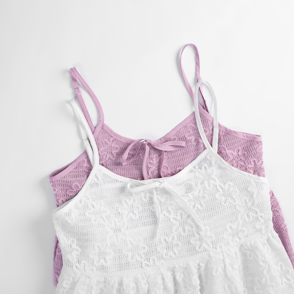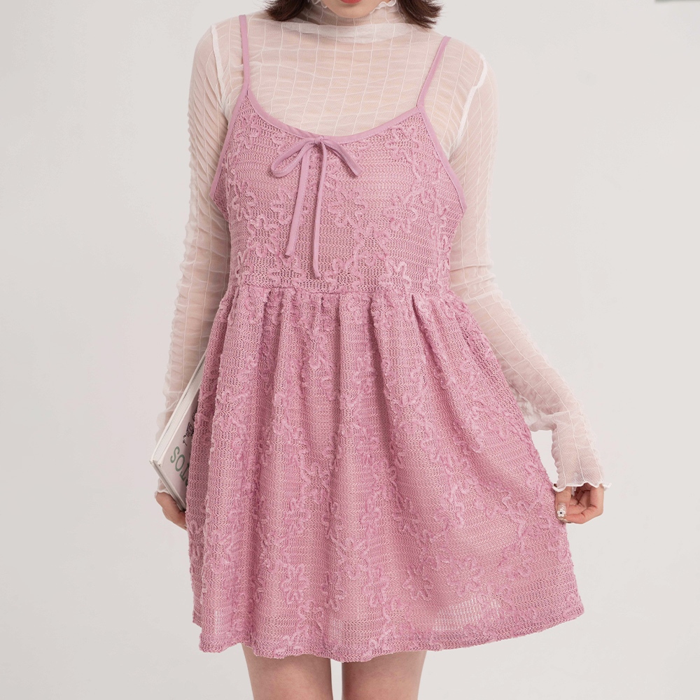 QUEENSHOP_ S 女裝 立體花花針織細肩短洋裝罩衫 兩色售 現+預 【01098917】白|紫QUEENSHOP