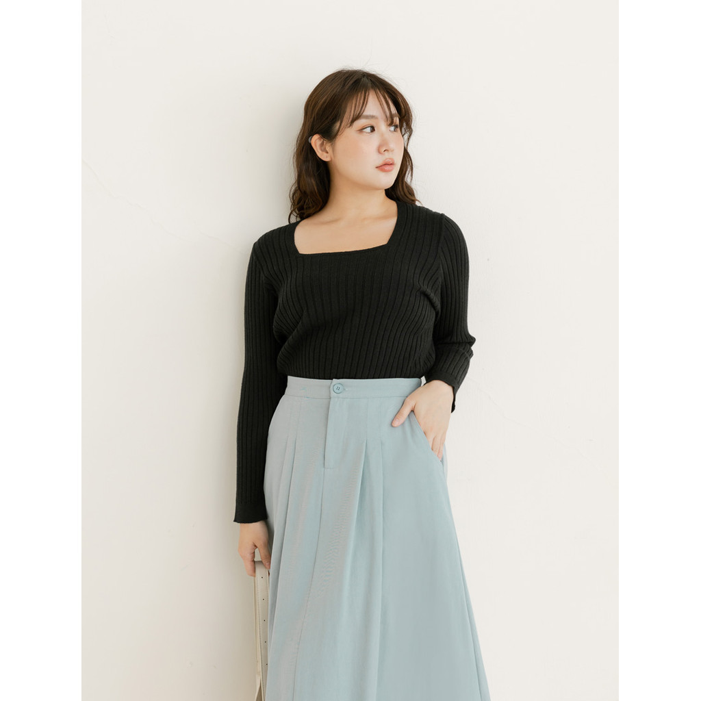 【PolyLulu】 百搭親膚舒適方領針織坑條長袖上衣 中大尺碼上衣黑色,XL|灰藍色,XL|灰藍色,3XL|白色,L|白色,XL|白色,3XL|黑色,3XL|灰藍色,L|灰藍色,2XL|白色,2XL|黑色,L|黑色,2XLPOLY LULU丨BEAUTY HAS NO SIZE 中大尺碼女裝