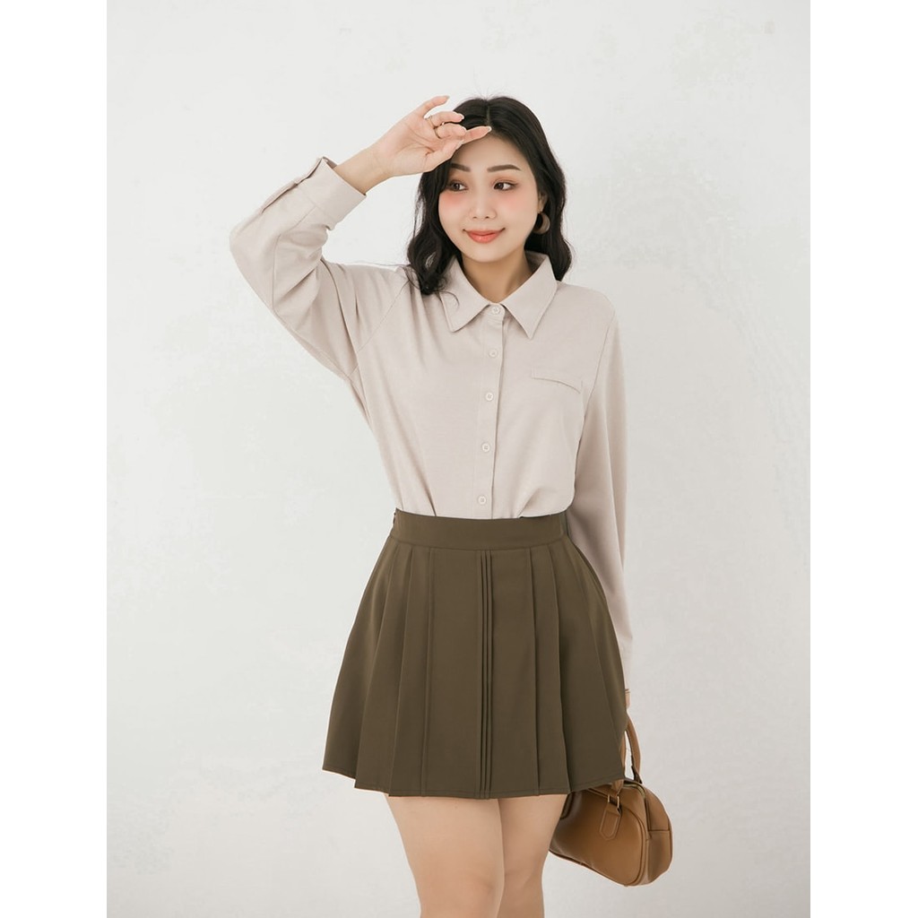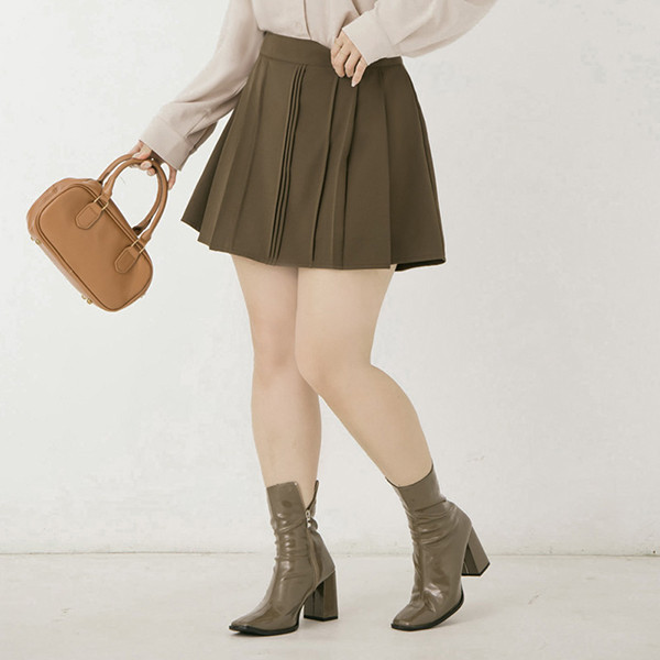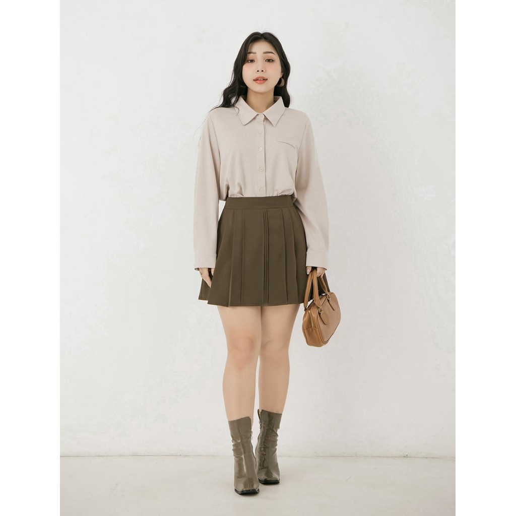 【PolyLulu】 MISS.都會抗皺後鬆緊打褶西裝短裙(附褲) 中大尺碼裙子 深棕色L|XL|2XL|3XLPOLY LULU丨BEAUTY HAS NO SIZE 中大尺碼女裝