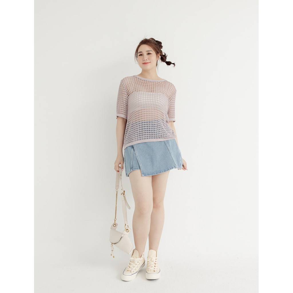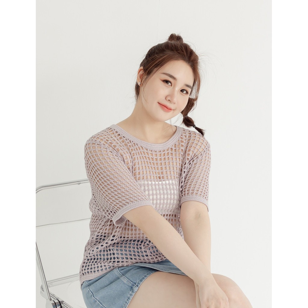 【PolyLulu】 甜酷葡萄汽水鏤空針織短袖上衣 中大尺碼上衣 杏/淺紫淺紫,XL|淺紫,2XL|淺紫,3XL|杏,L|杏,2XL|杏,3XL|淺紫,L|杏,XLPOLY LULU丨BEAUTY HAS NO SIZE 中大尺碼女裝