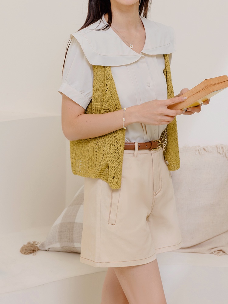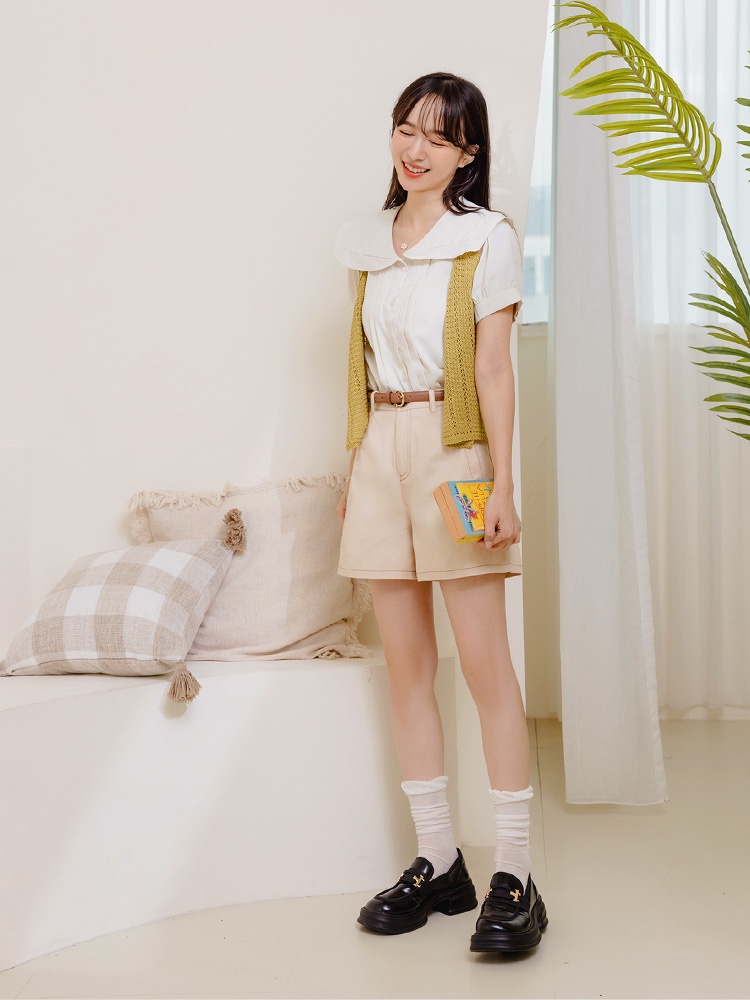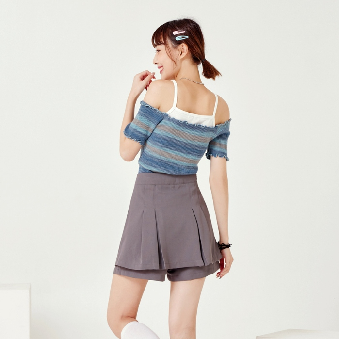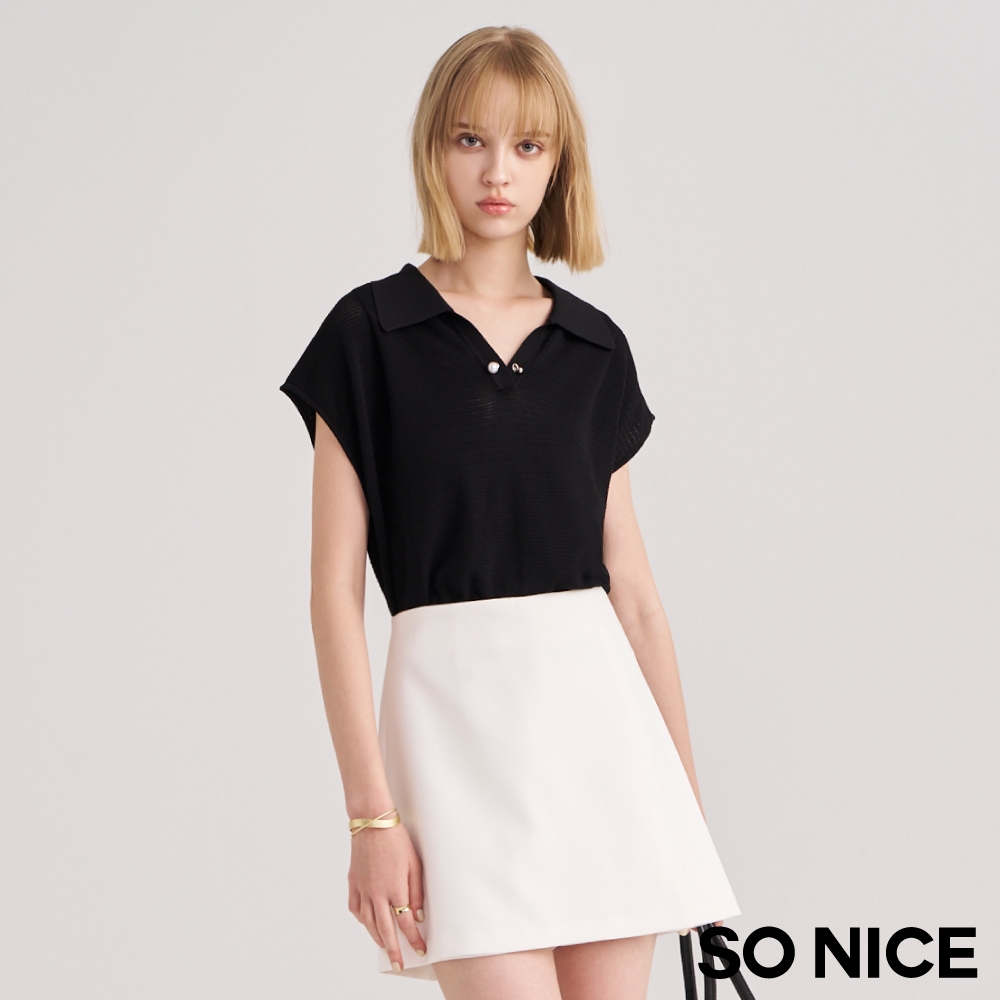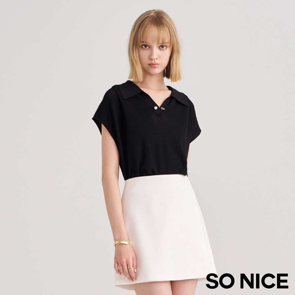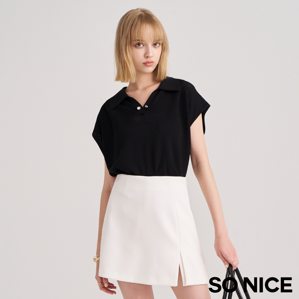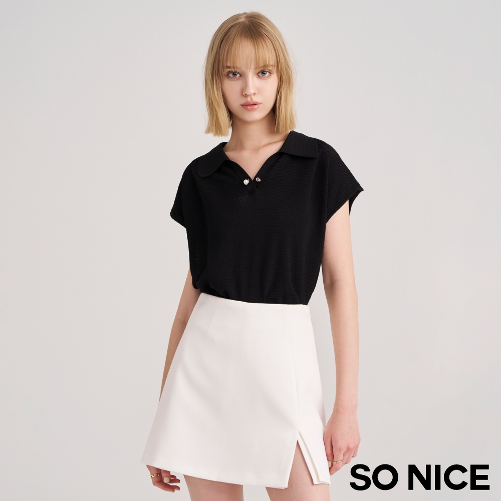 SO NICE【特惠】簡約百搭高腰開衩時裝布短褲裙|都會時尚女裝【65432003】