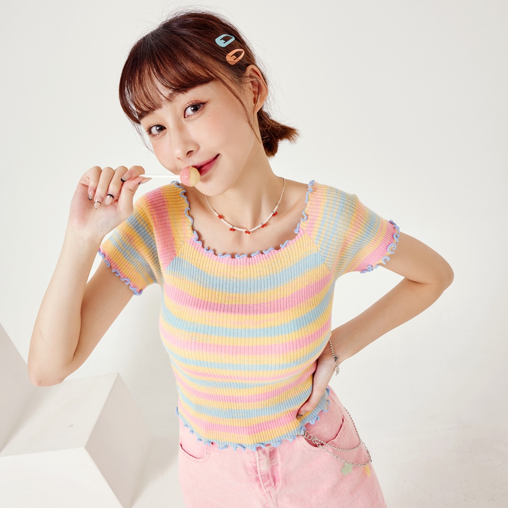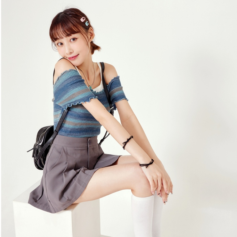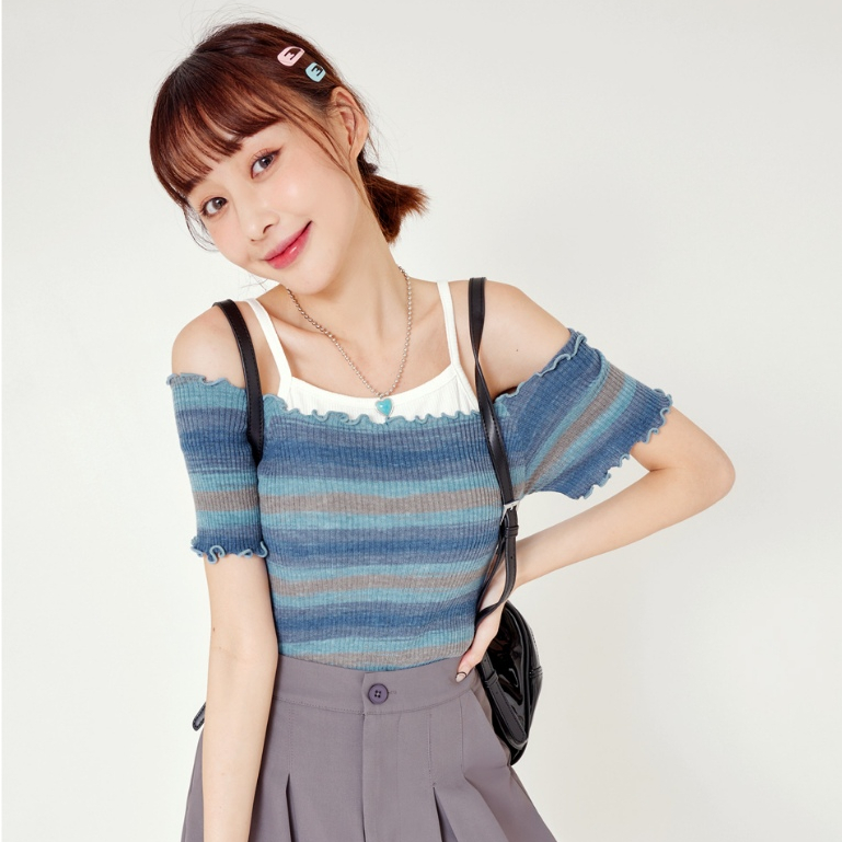 OB嚴選 2 WAY針織木耳邊短版上衣 《FA2728》大尺碼/現貨/女裝黃,L|黃,XL|灰藍,M|黃,M|灰藍,XL|黃,S|灰藍,S|灰藍,LOB嚴選官方旗艦店