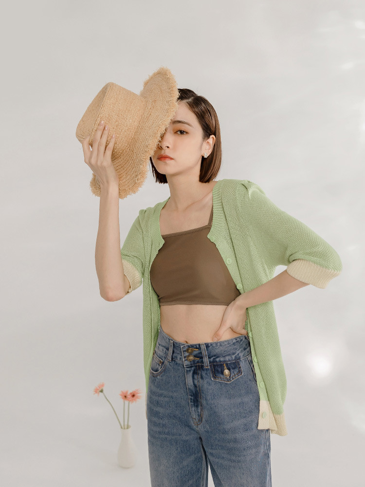 OB嚴選 針織撞色開襟圓領七分袖上衣/外套 《FA2726》卡其,S|卡其,M|卡其,L|卡其,XL|卡其,2L|霧藍,S|霧藍,M|霧藍,L|霧藍,XL|霧藍,2L|綠,S|綠,M|綠,L|綠,XL|綠,2LOB嚴選官方旗艦店