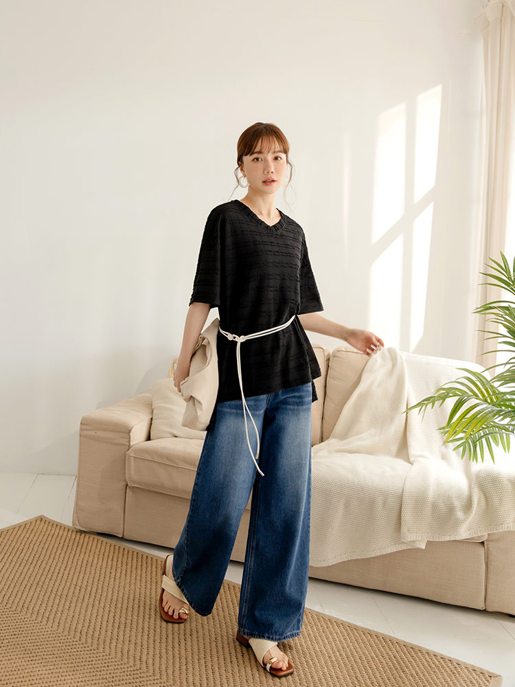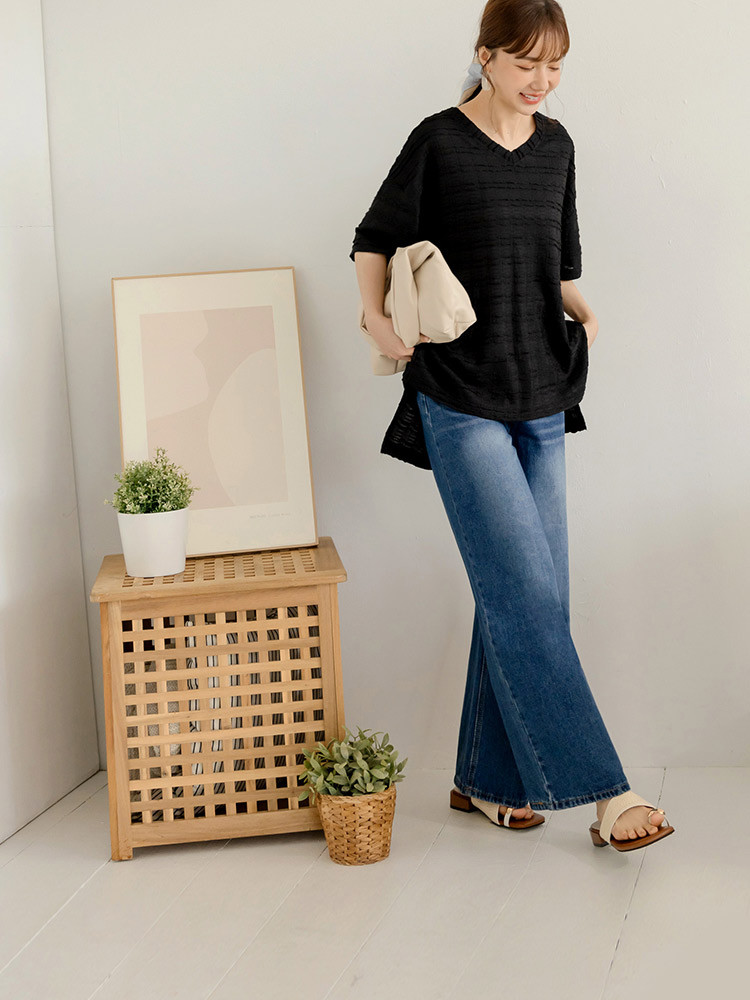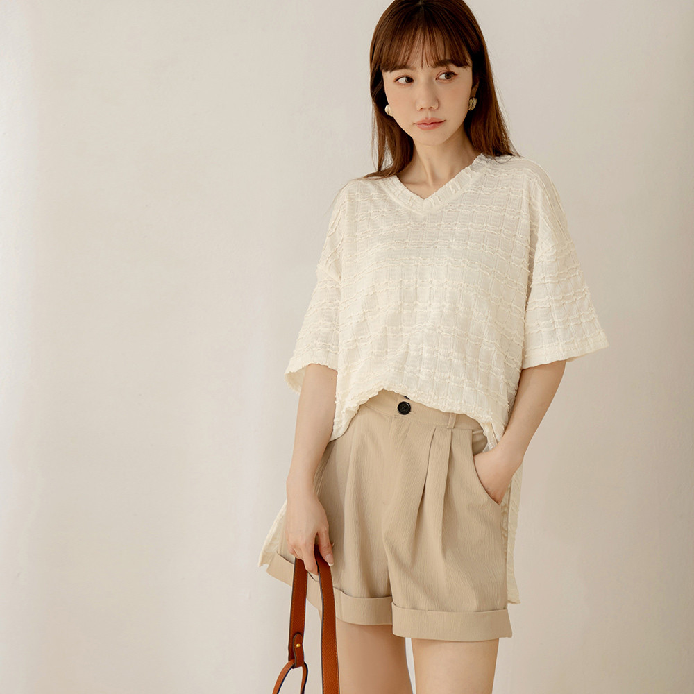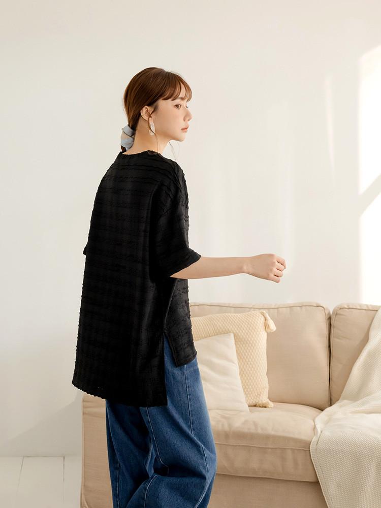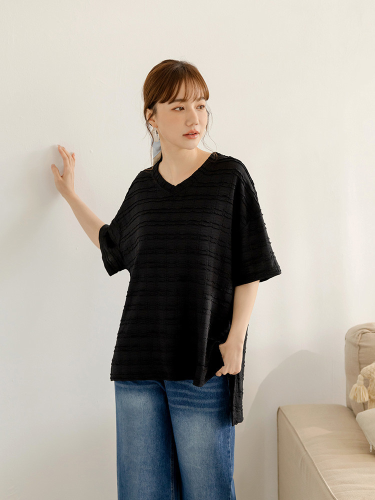 OB嚴選 立體紋理前短後長寬版上衣 《AB20421》象牙白,F|象牙白,XL|象牙白,2L|象牙白,3L|黑,F|黑,XL|黑,2L|黑,3LT-shirtsOB嚴選官方旗艦店