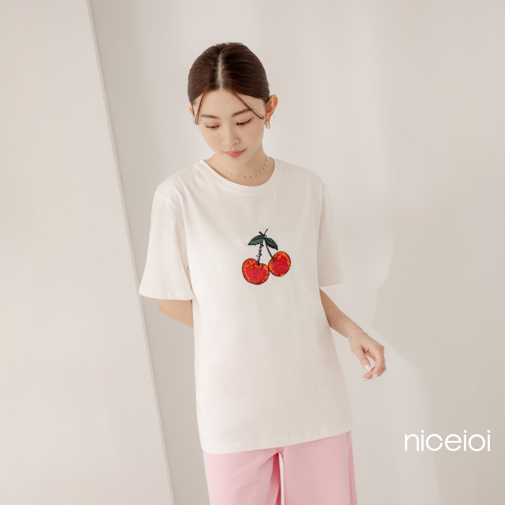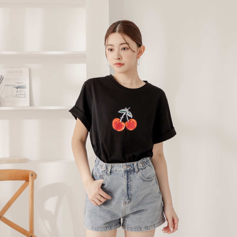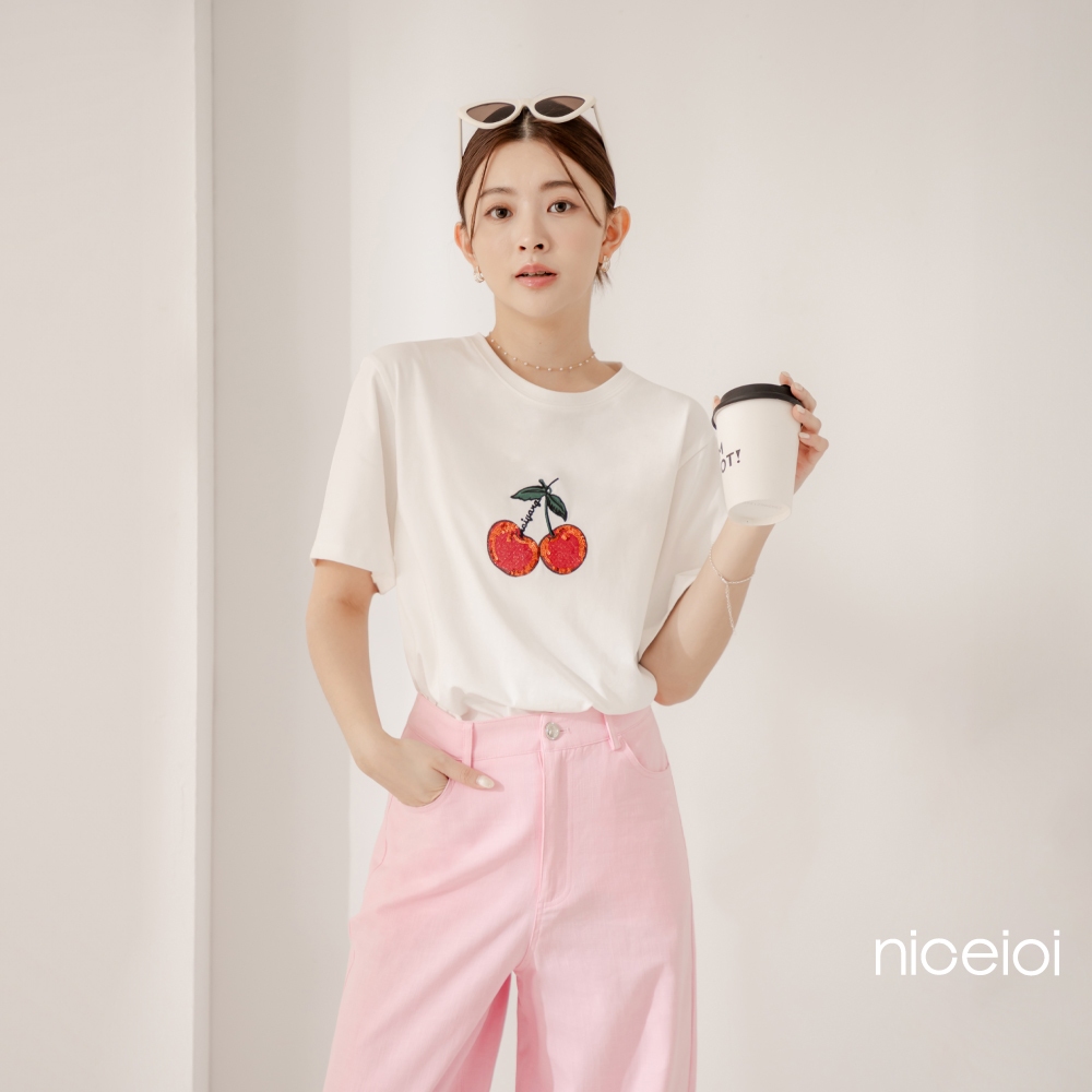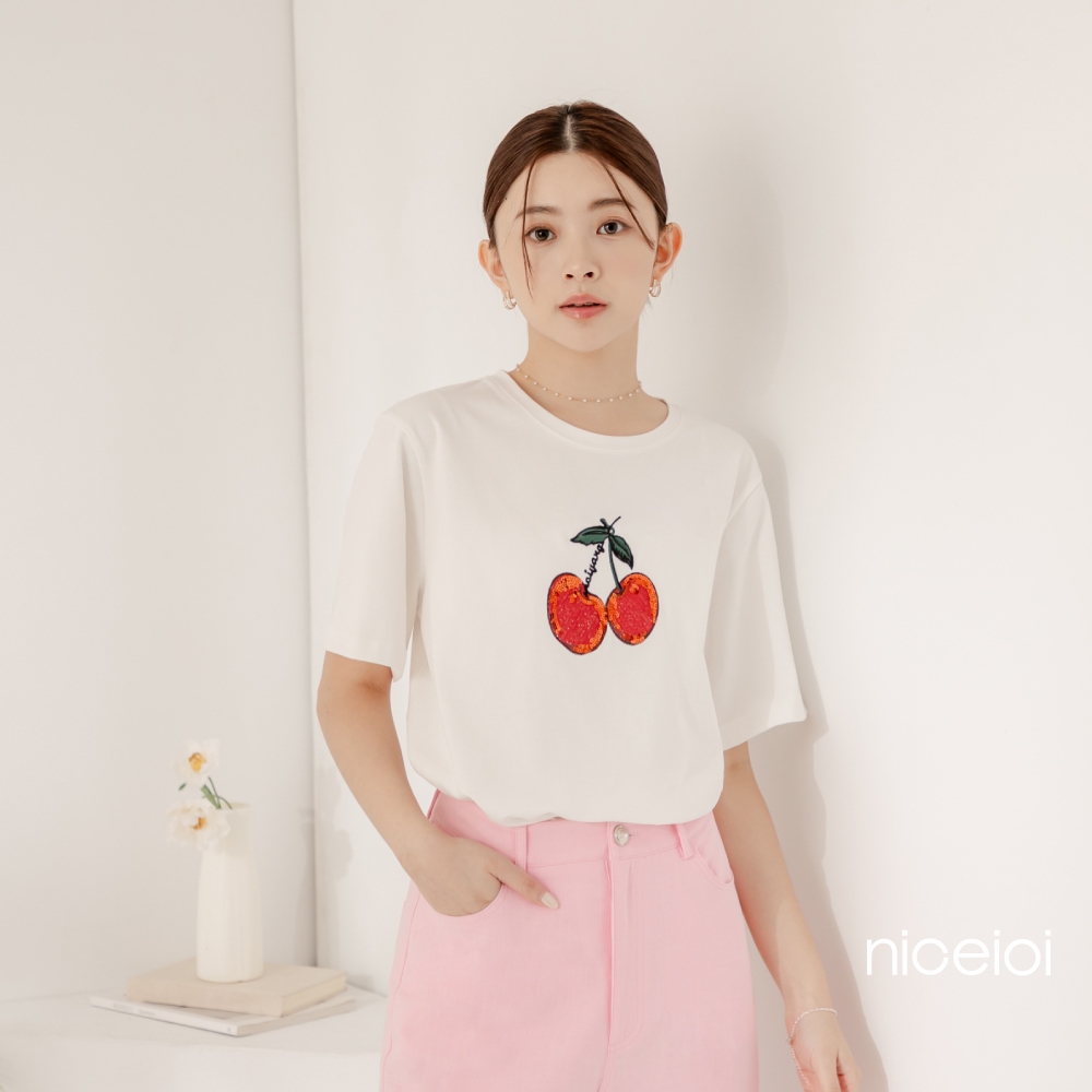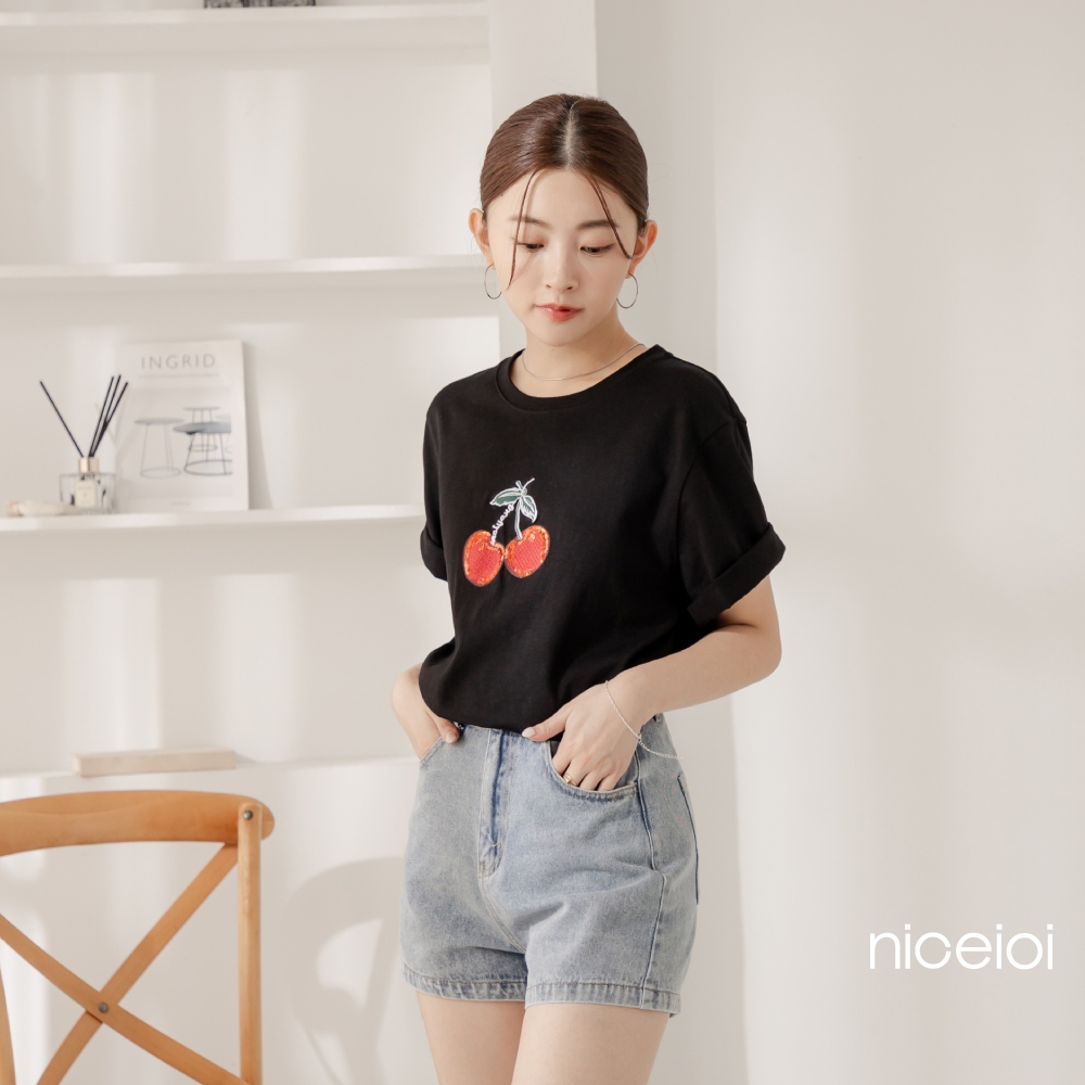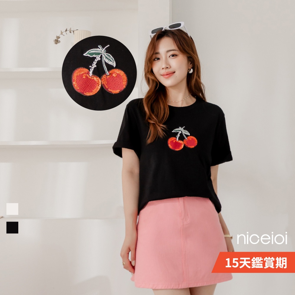niceioi【特惠】甜美少女繽紛櫻桃刺繡上衣 (共2色) 女裝白,S|白,M|白,L|黑,S|黑,M|黑,LT-shirtsniceioi 官方旗艦店